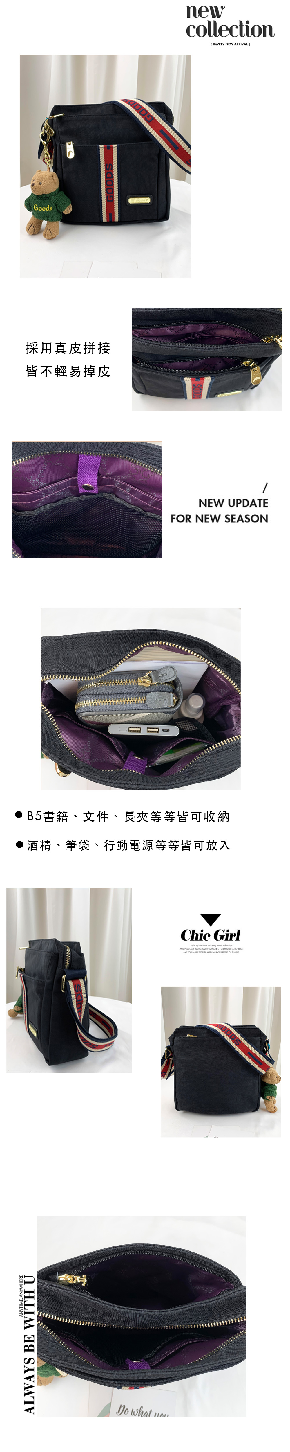 GOODS 織帶黑 水洗紋防潑水側背包 附小熊吊飾 #29301