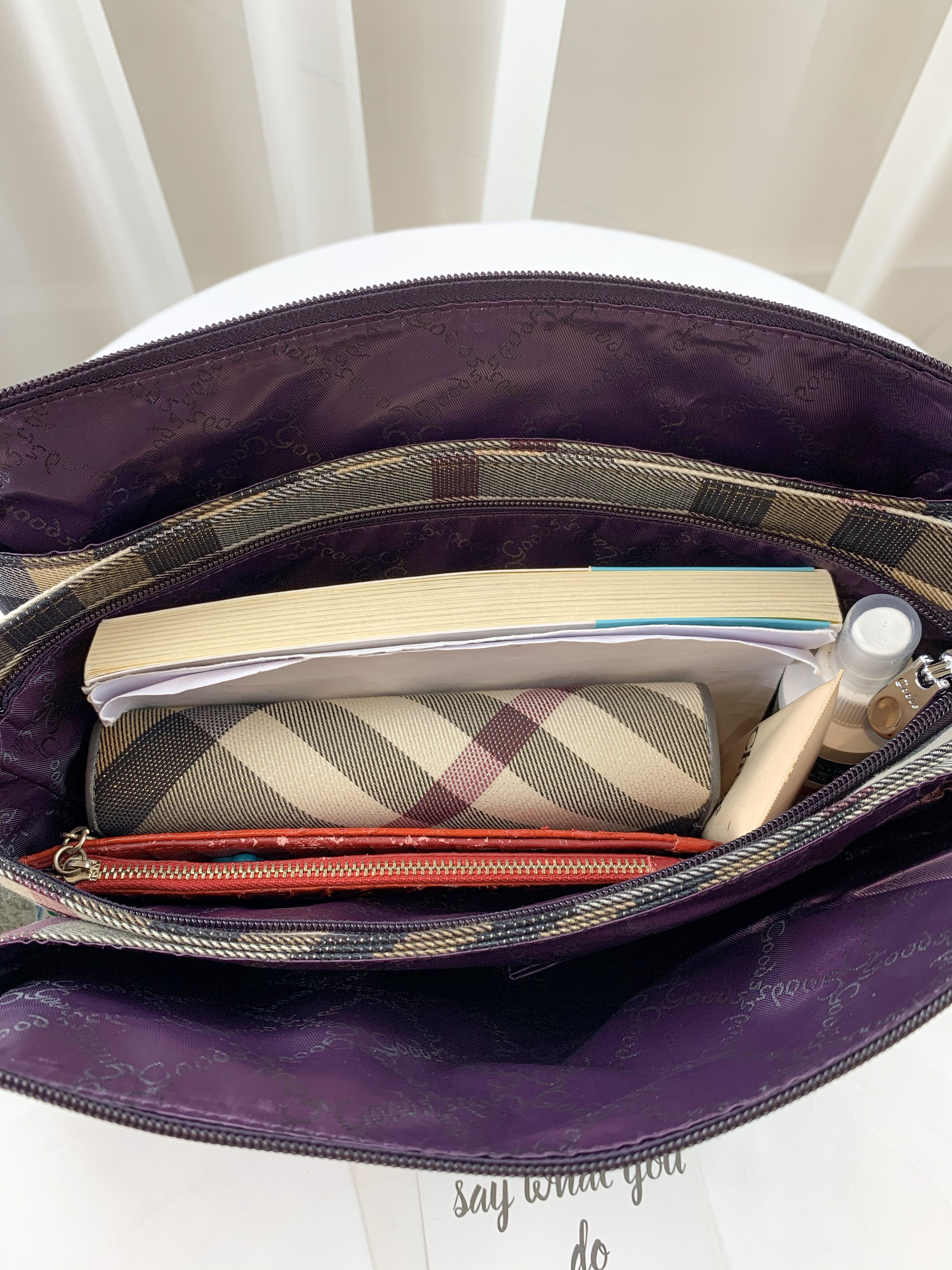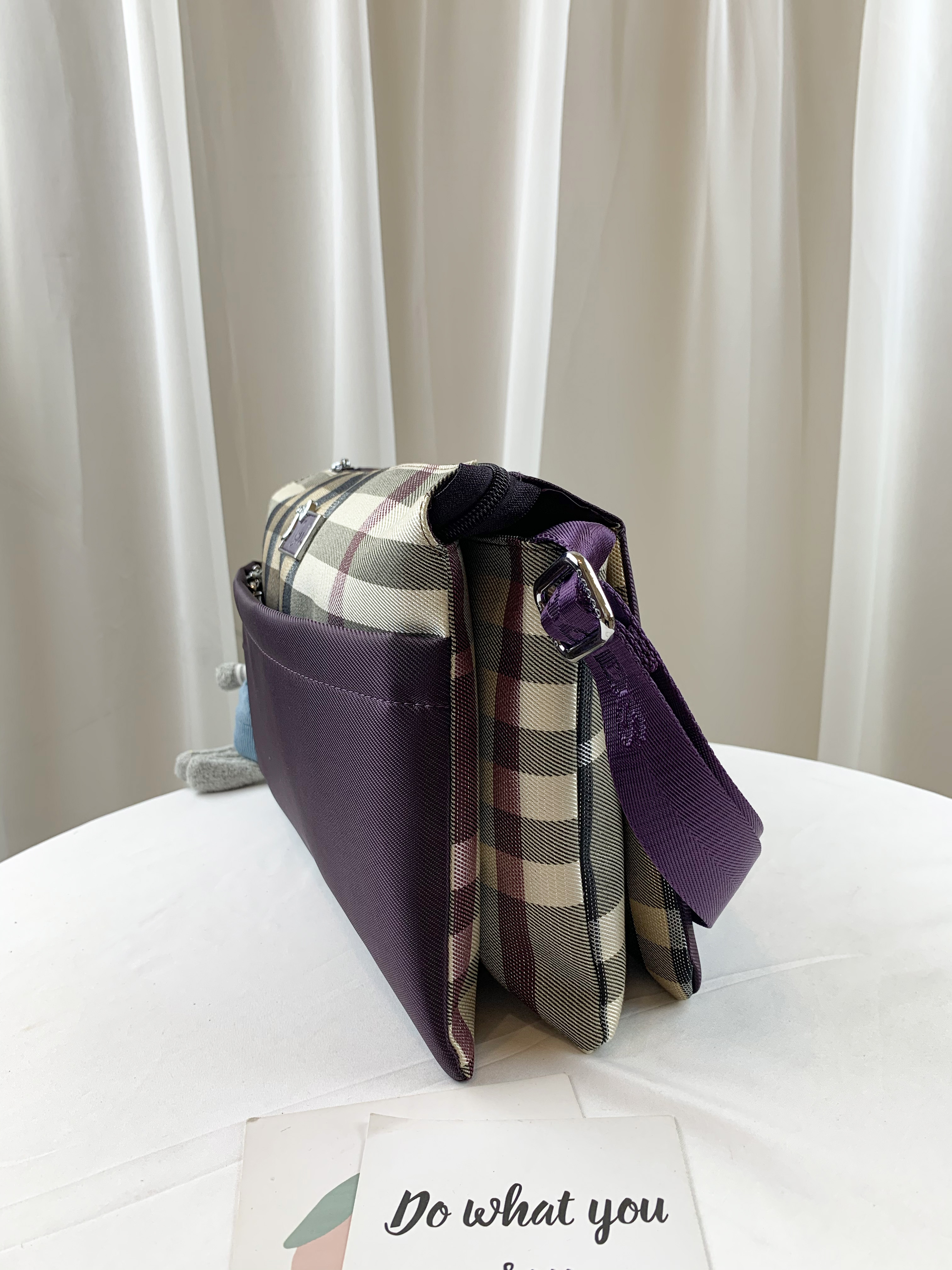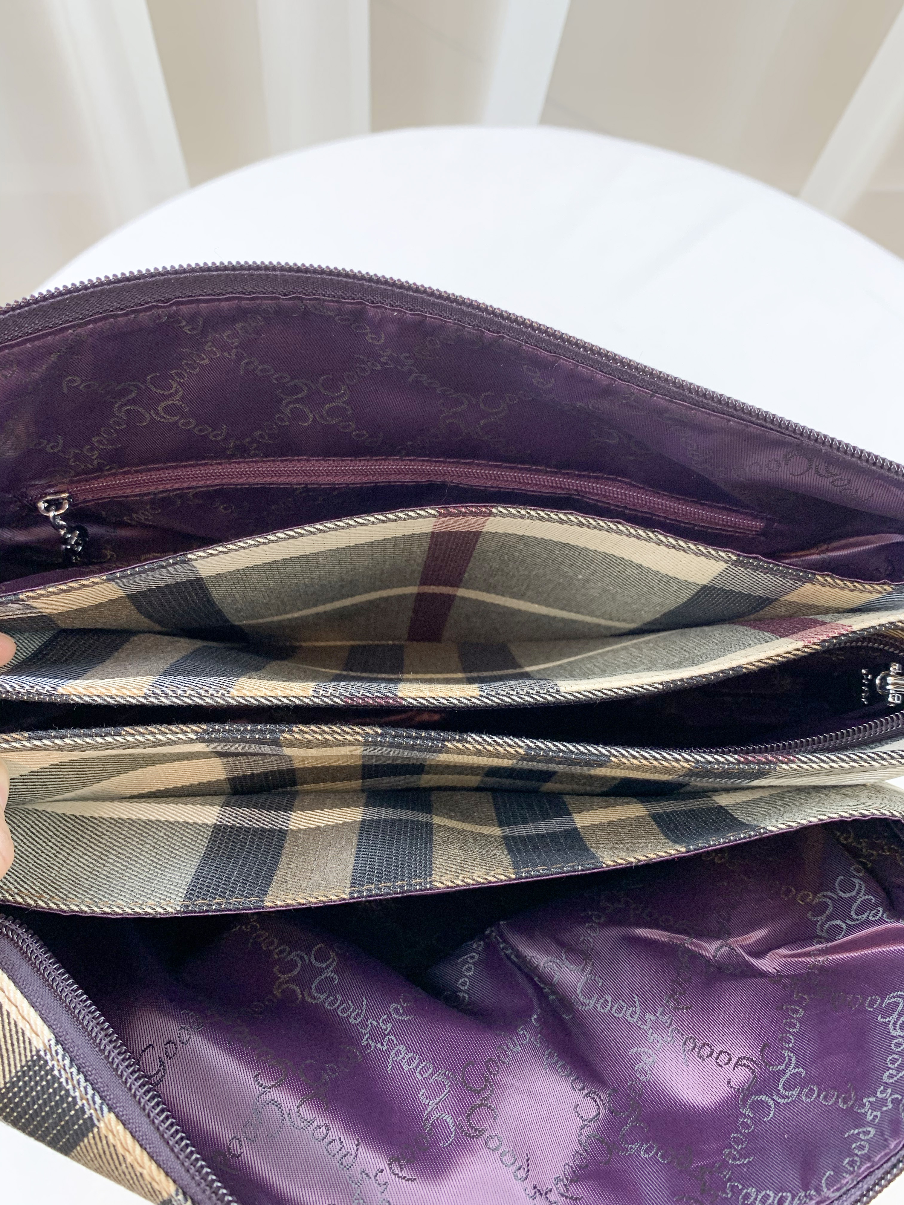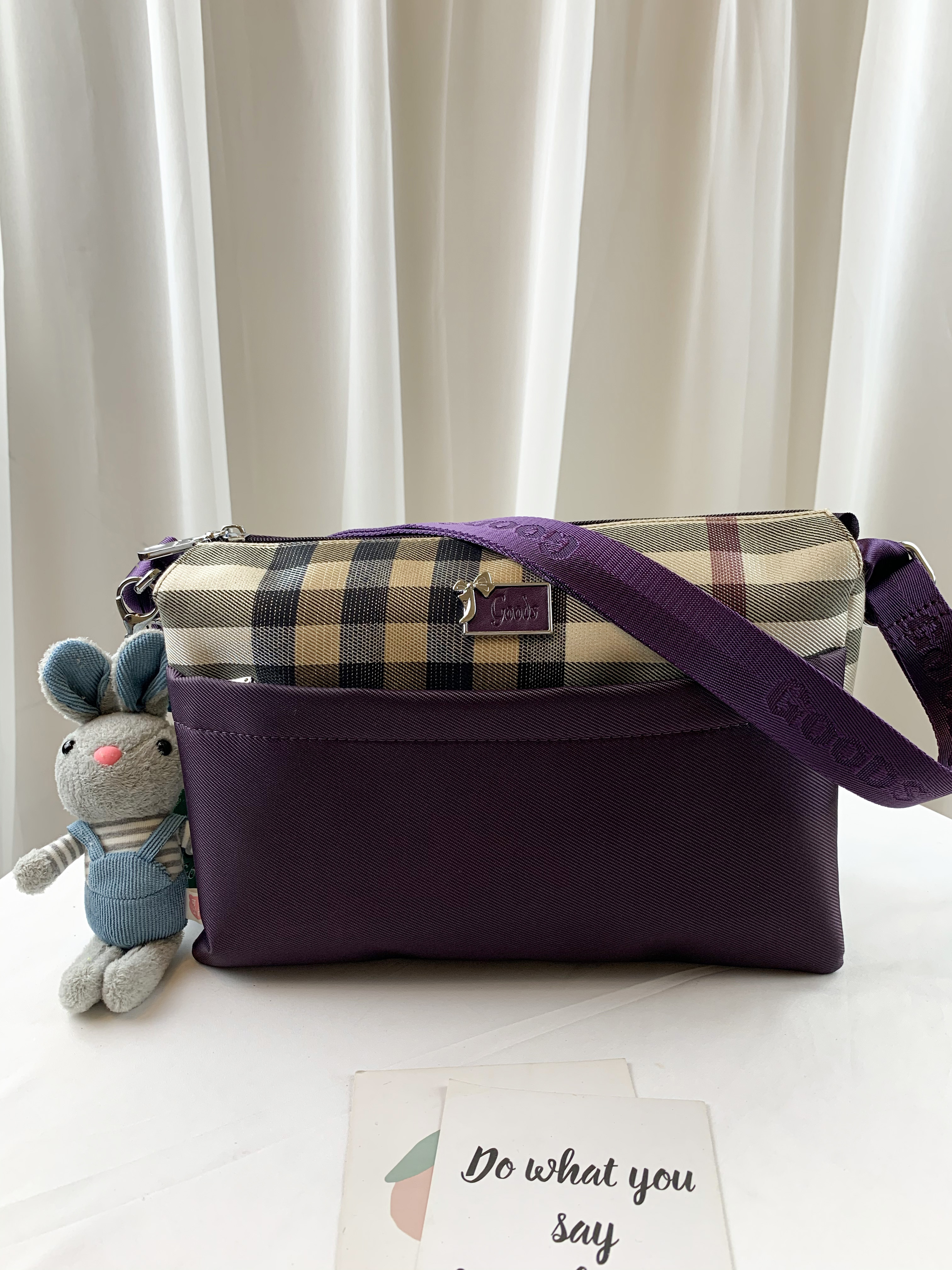 GOODS 紫格紋拼色防潑水側背包 #29503