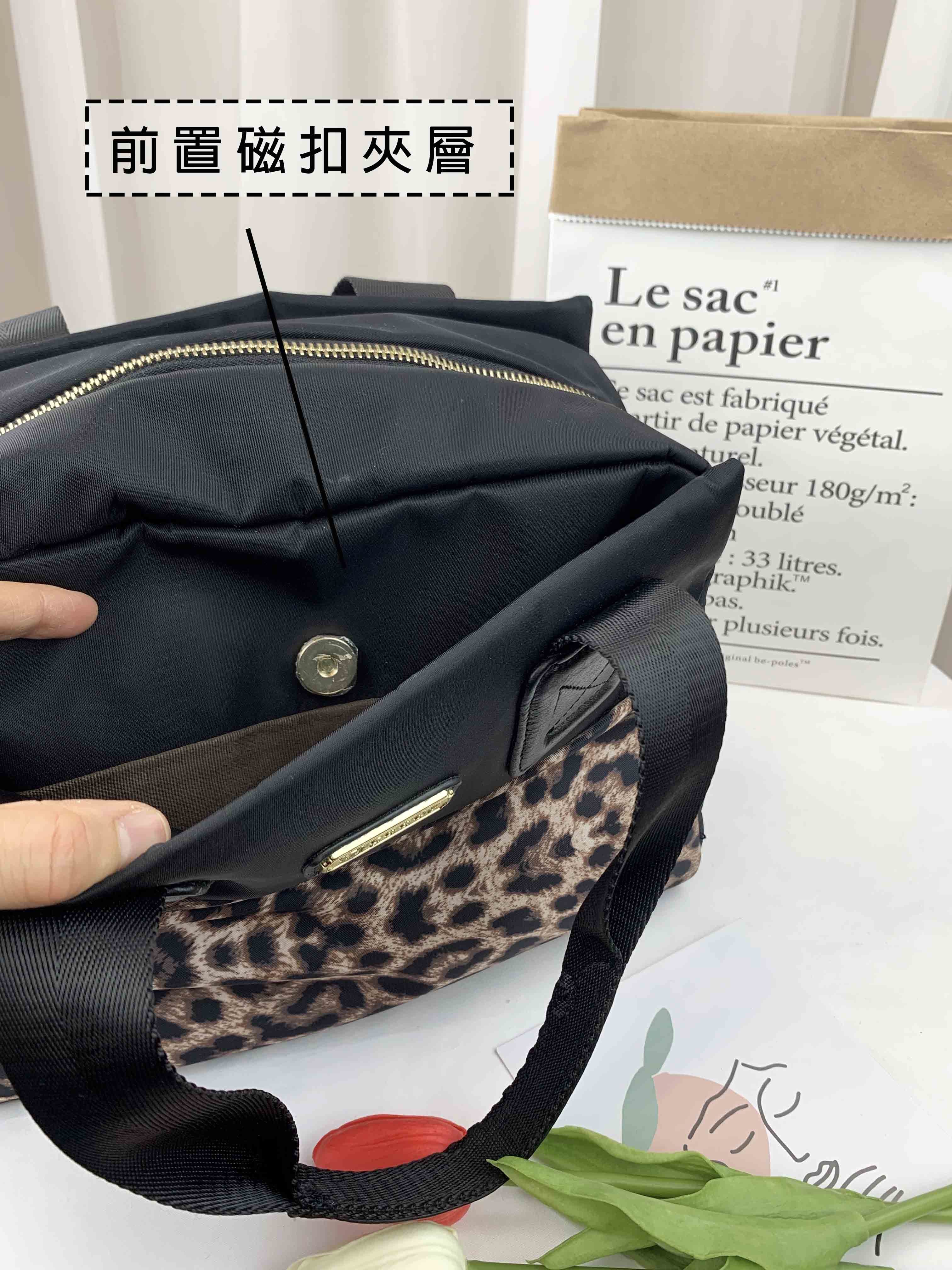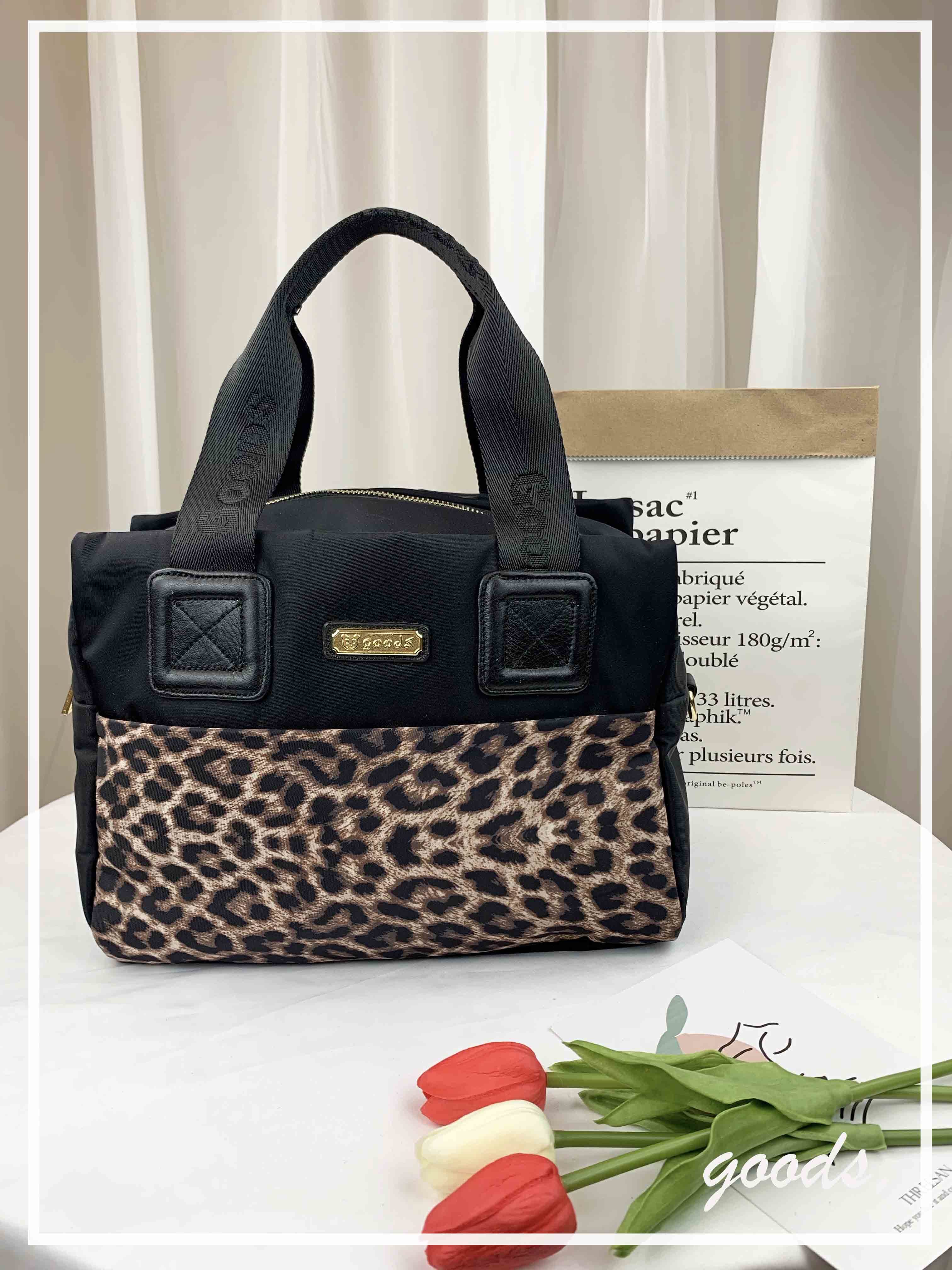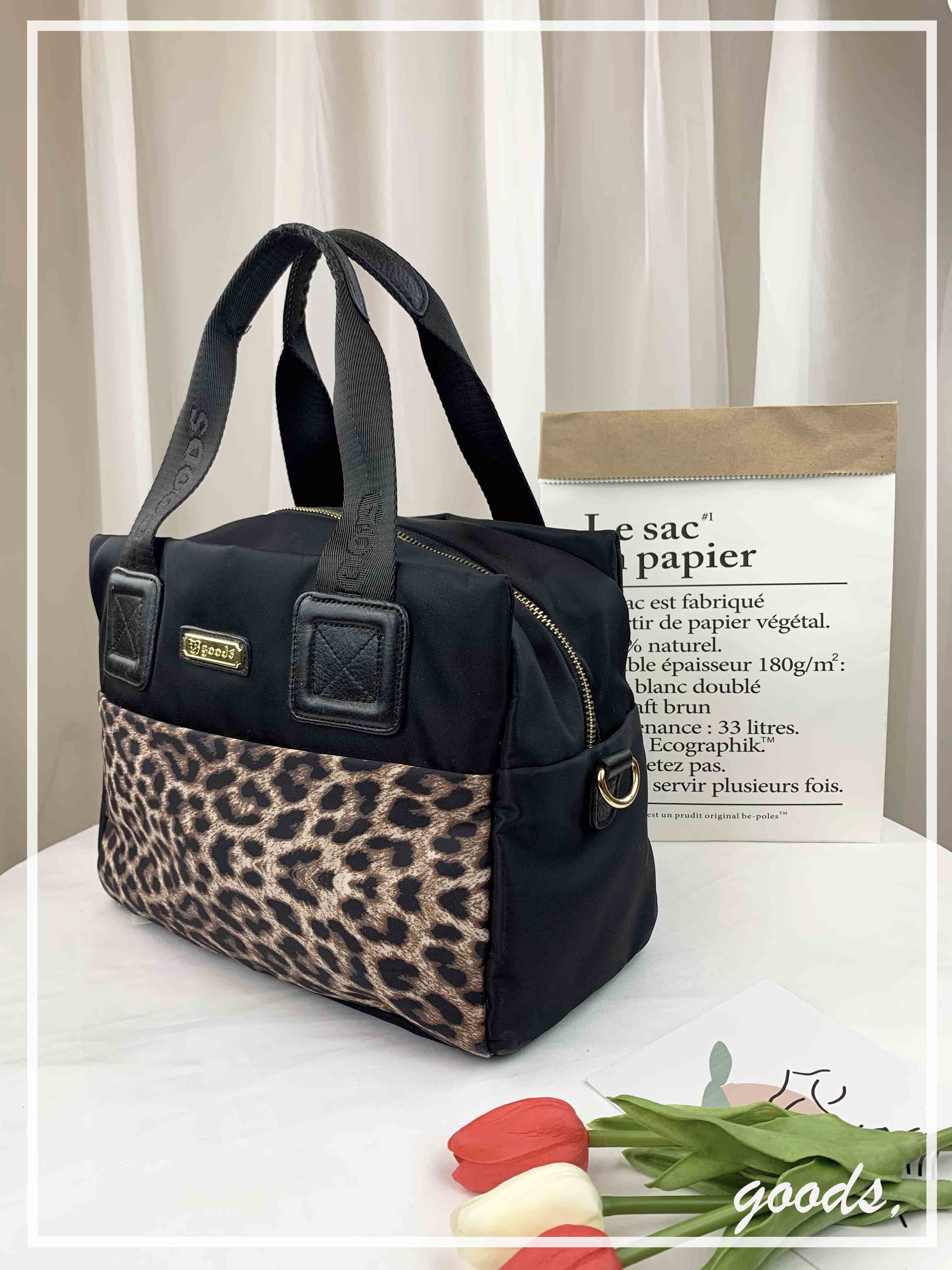 GOODS 豹紋黑尼龍手提包 / 側背包 #6129