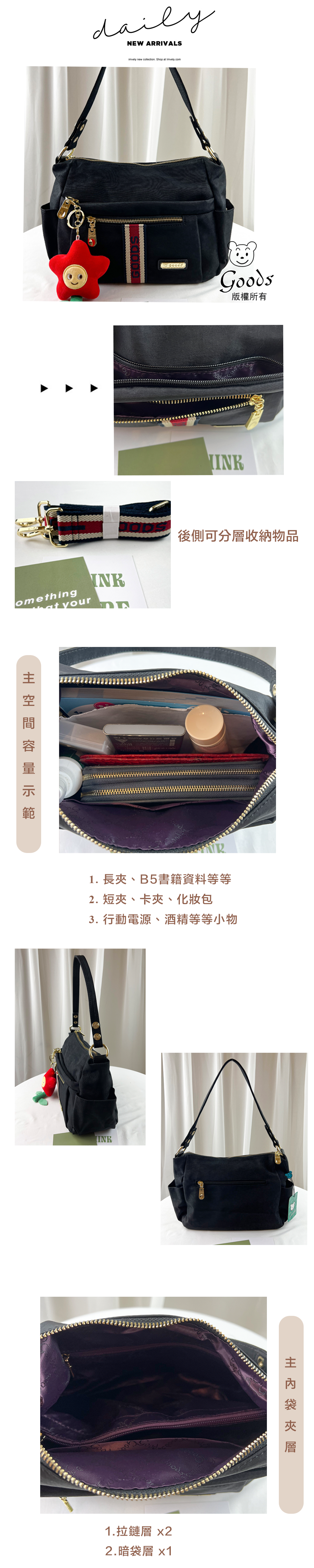 GOODS 卡其織帶防潑水肩背包 / 側背包 附小熊吊飾 #6139