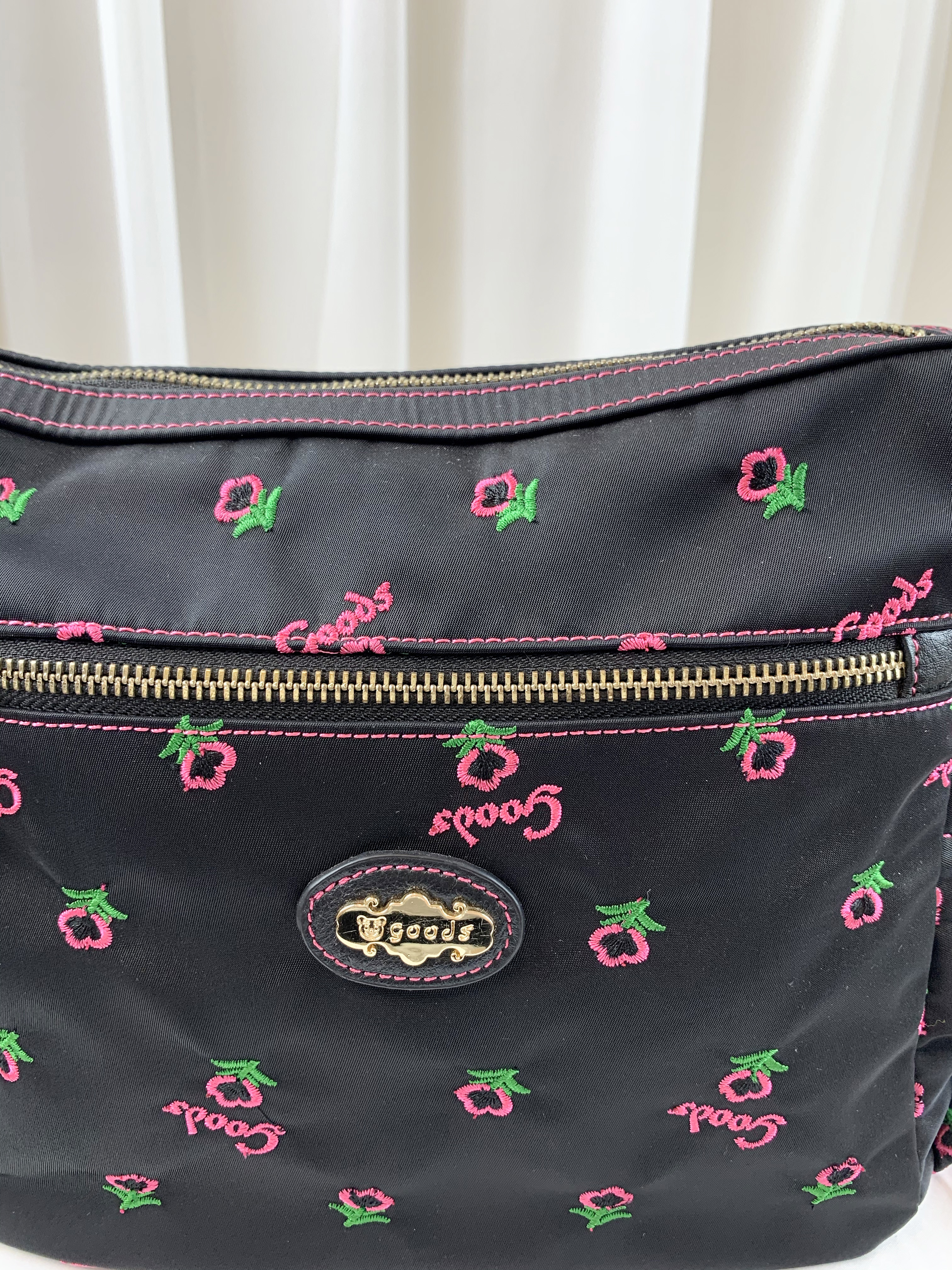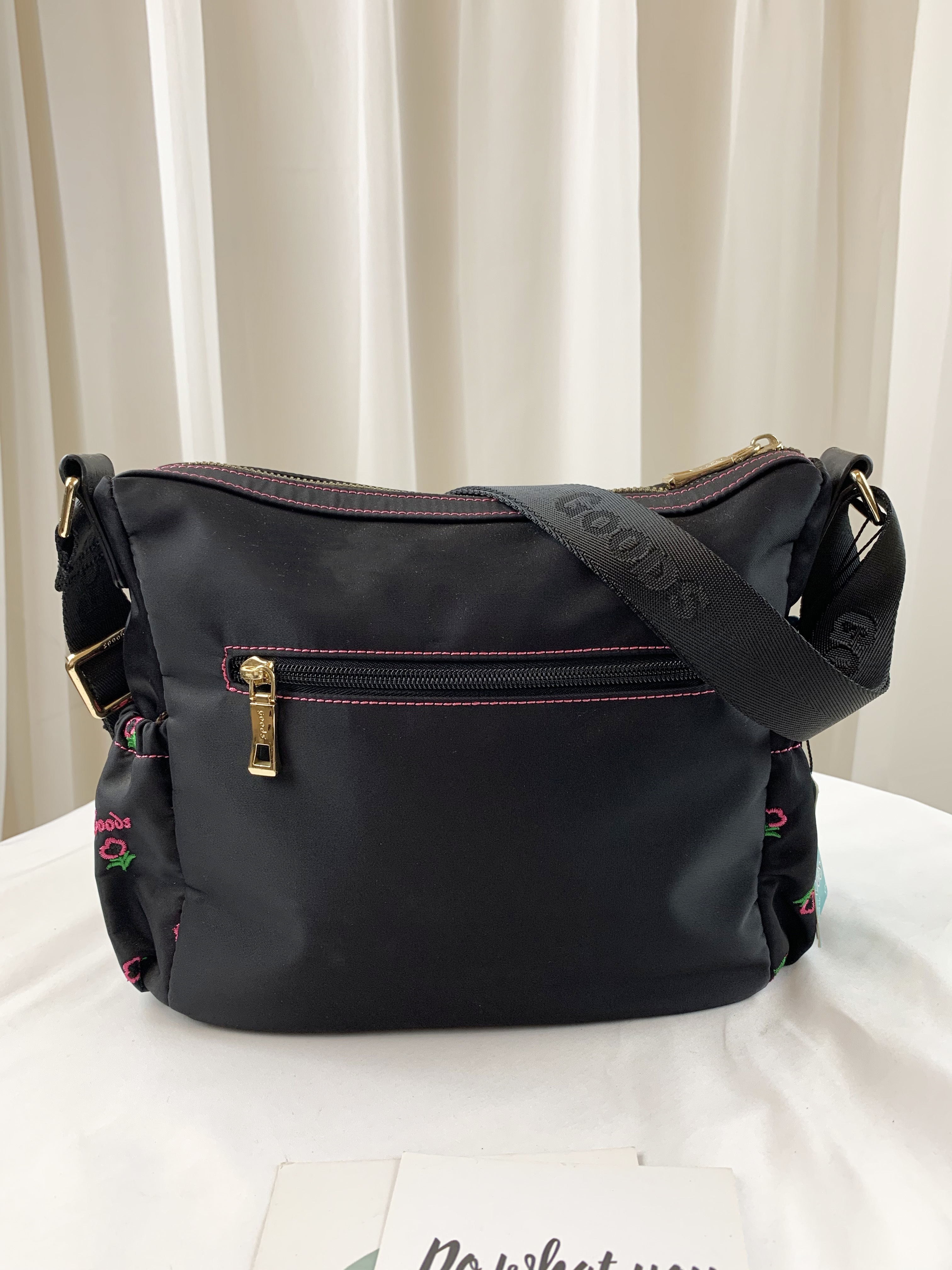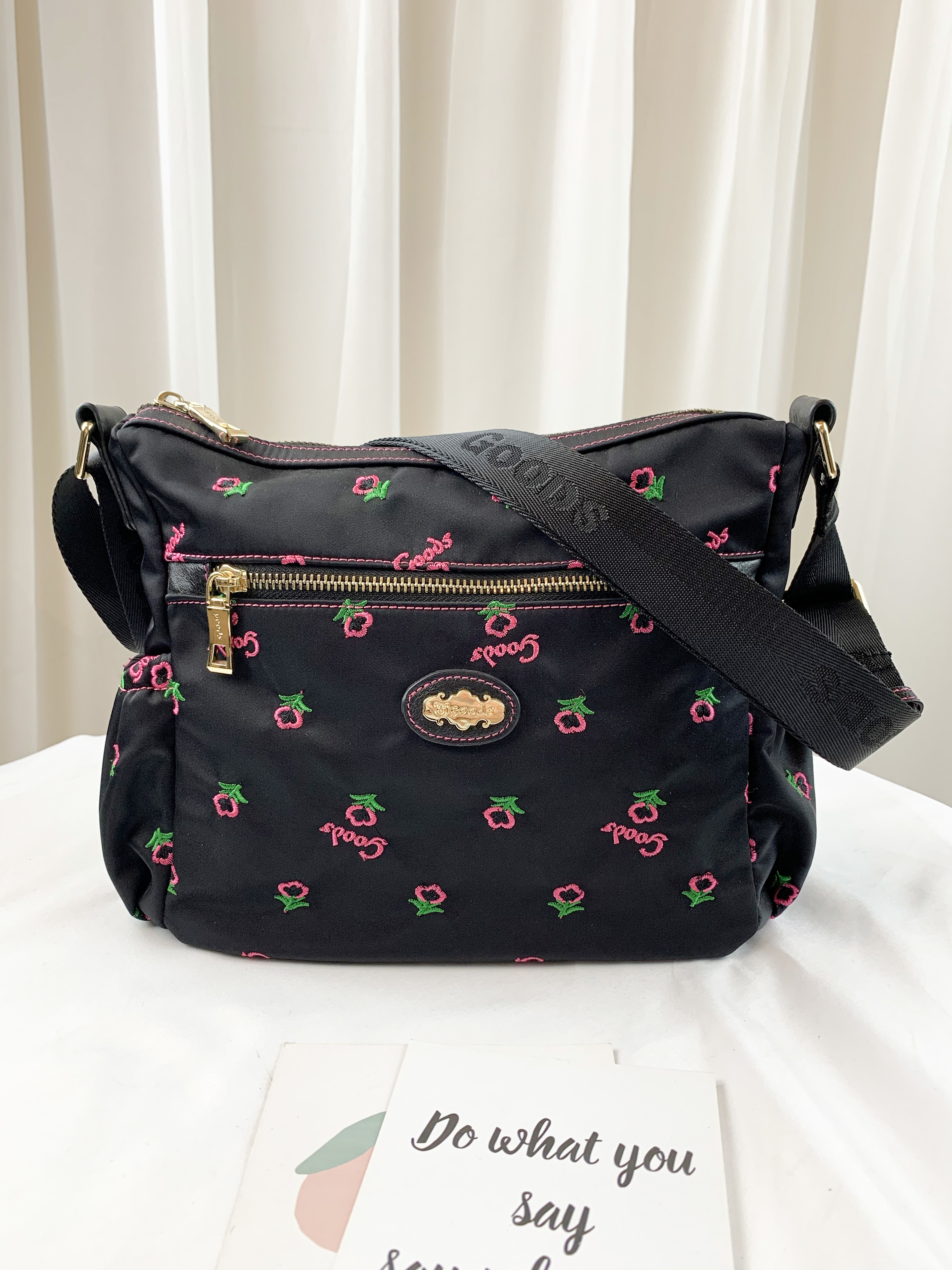 GOODS 黑粉花朵尼龍防潑水側背包 #6140