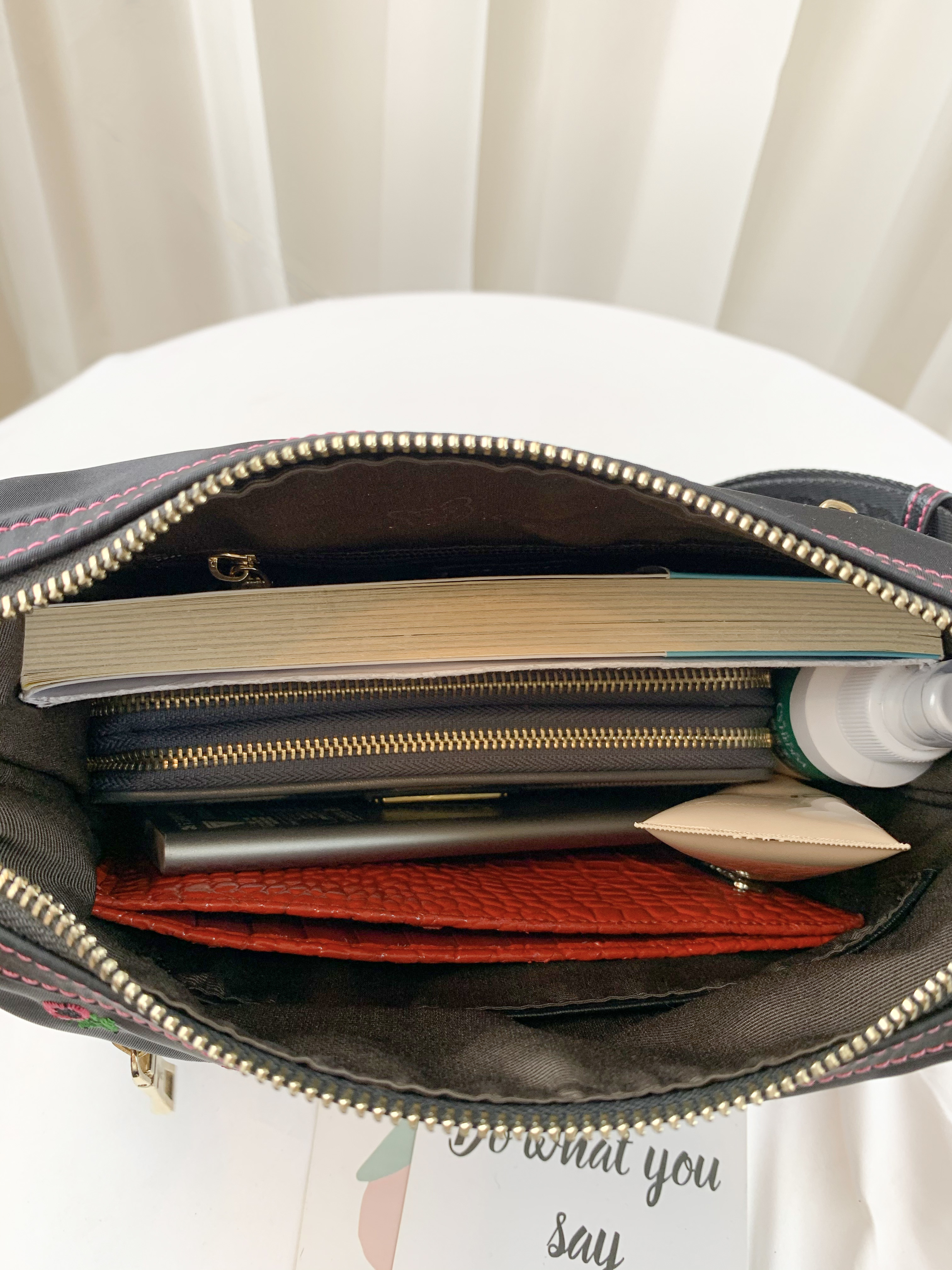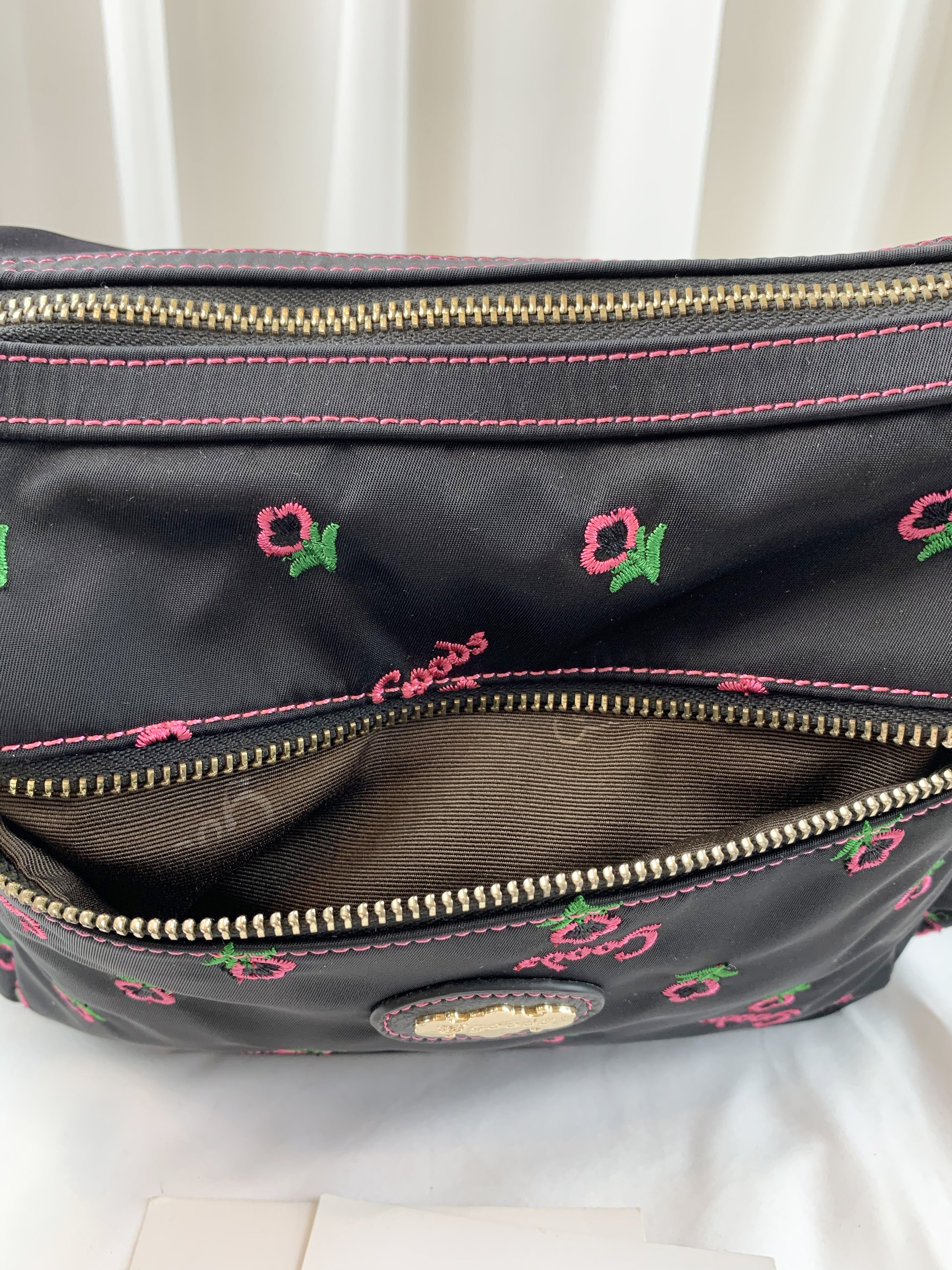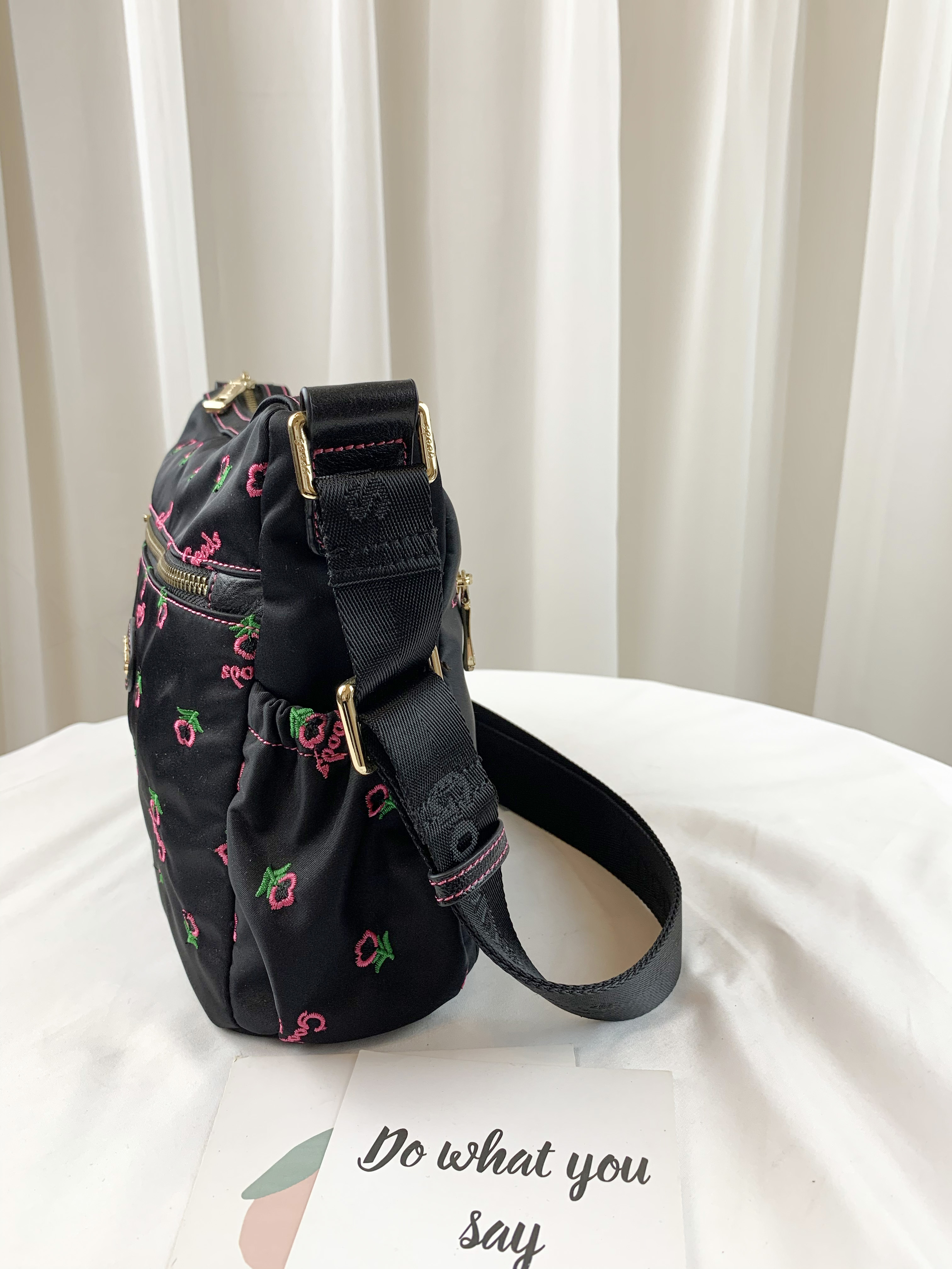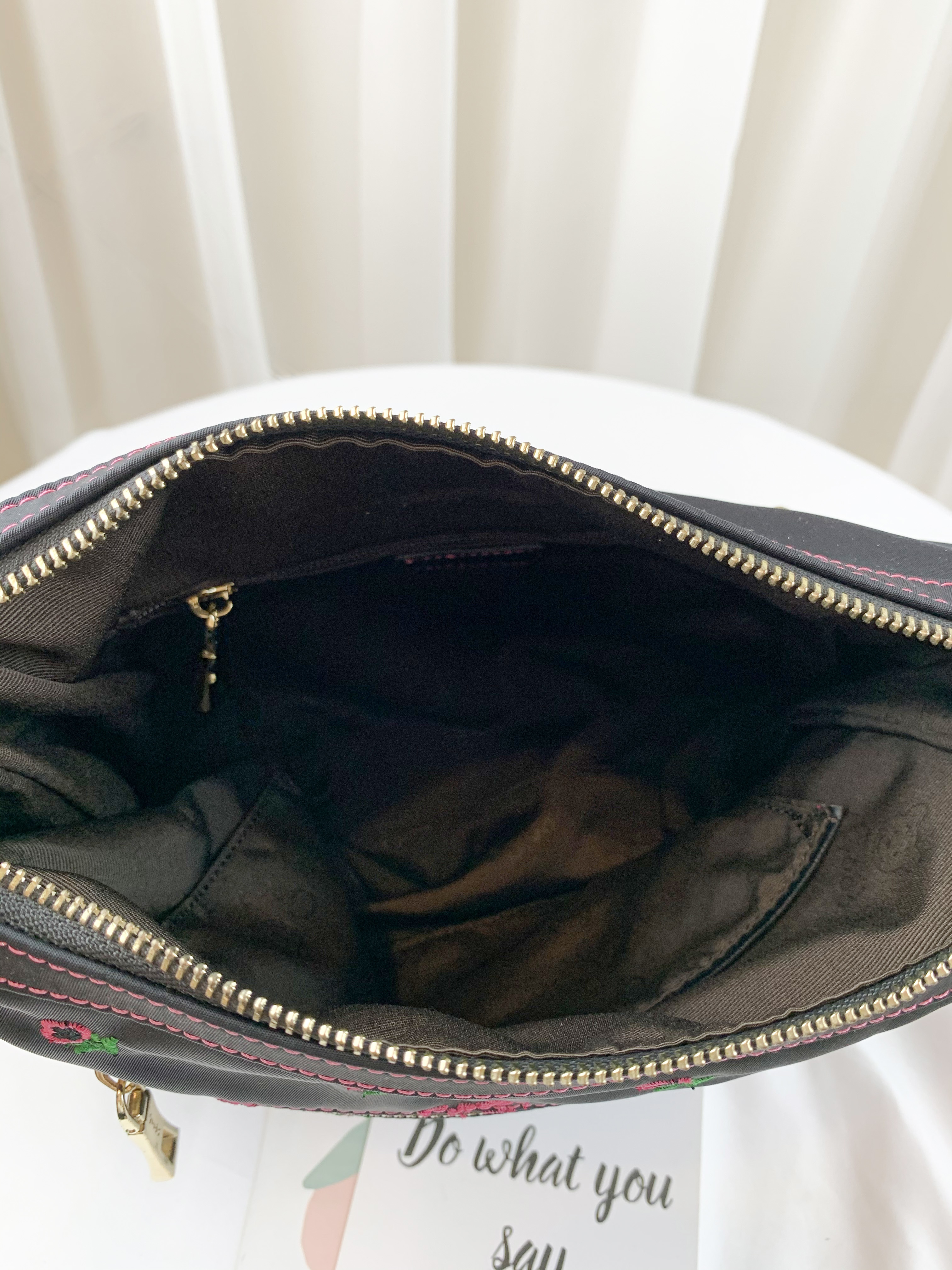 GOODS 黑粉花朵尼龍防潑水側背包 #6140