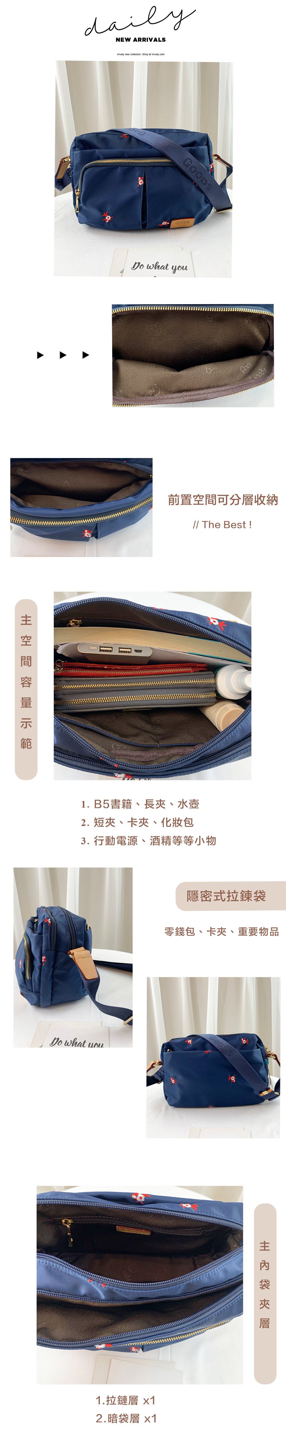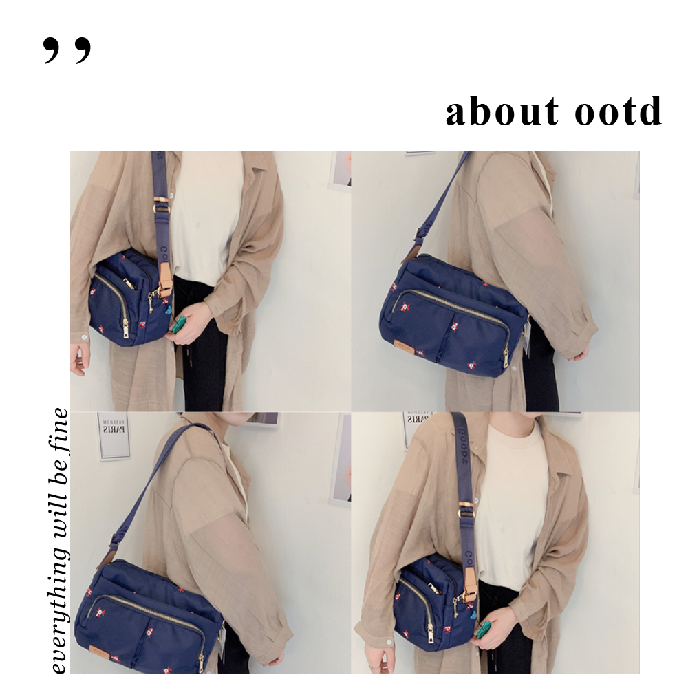 GOODS 復古繡花 寶藍尼龍防潑水側背包 #6152