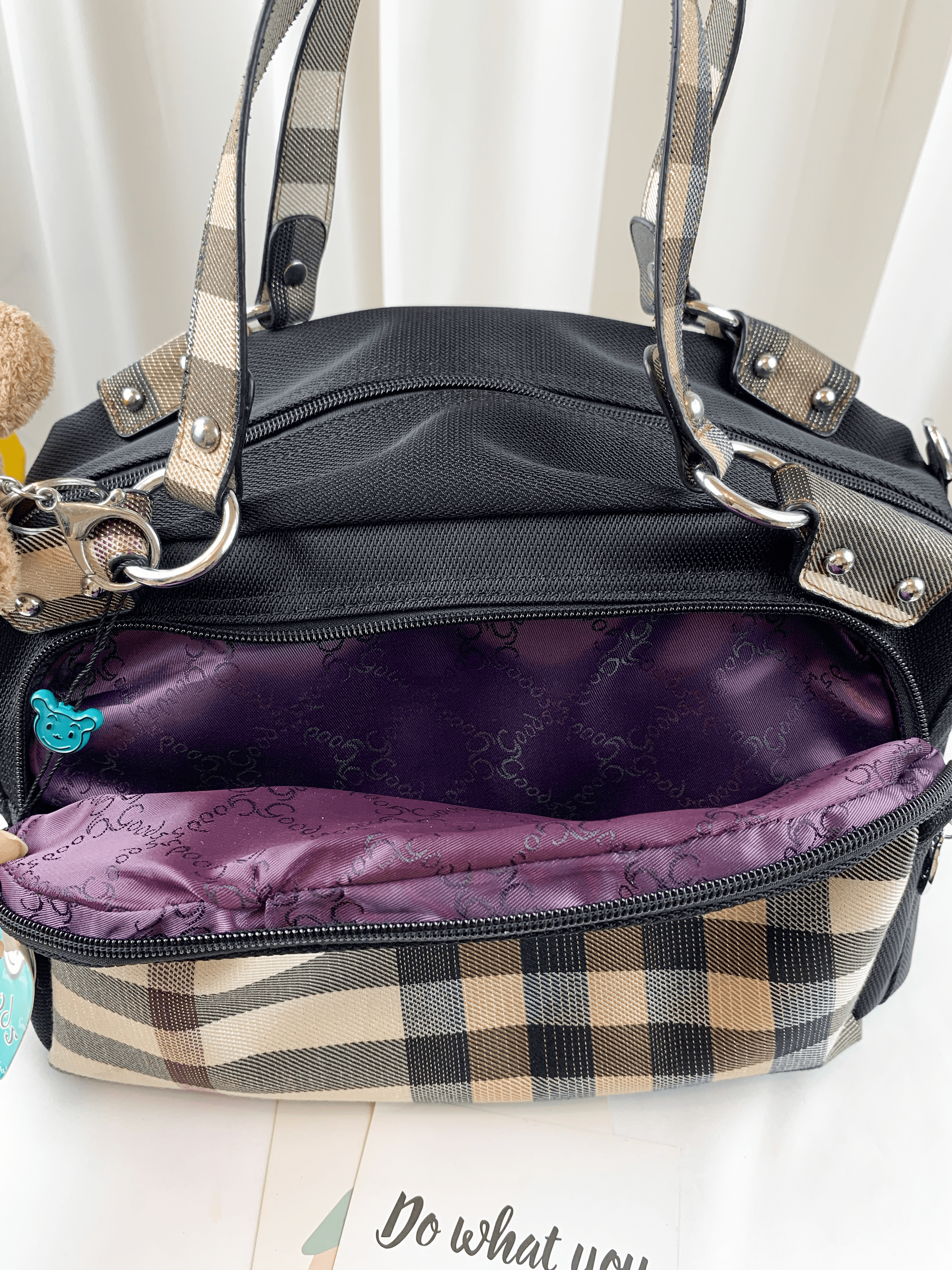 GOODS 黑格紋防潑水手提包 / 側背包 #2120
