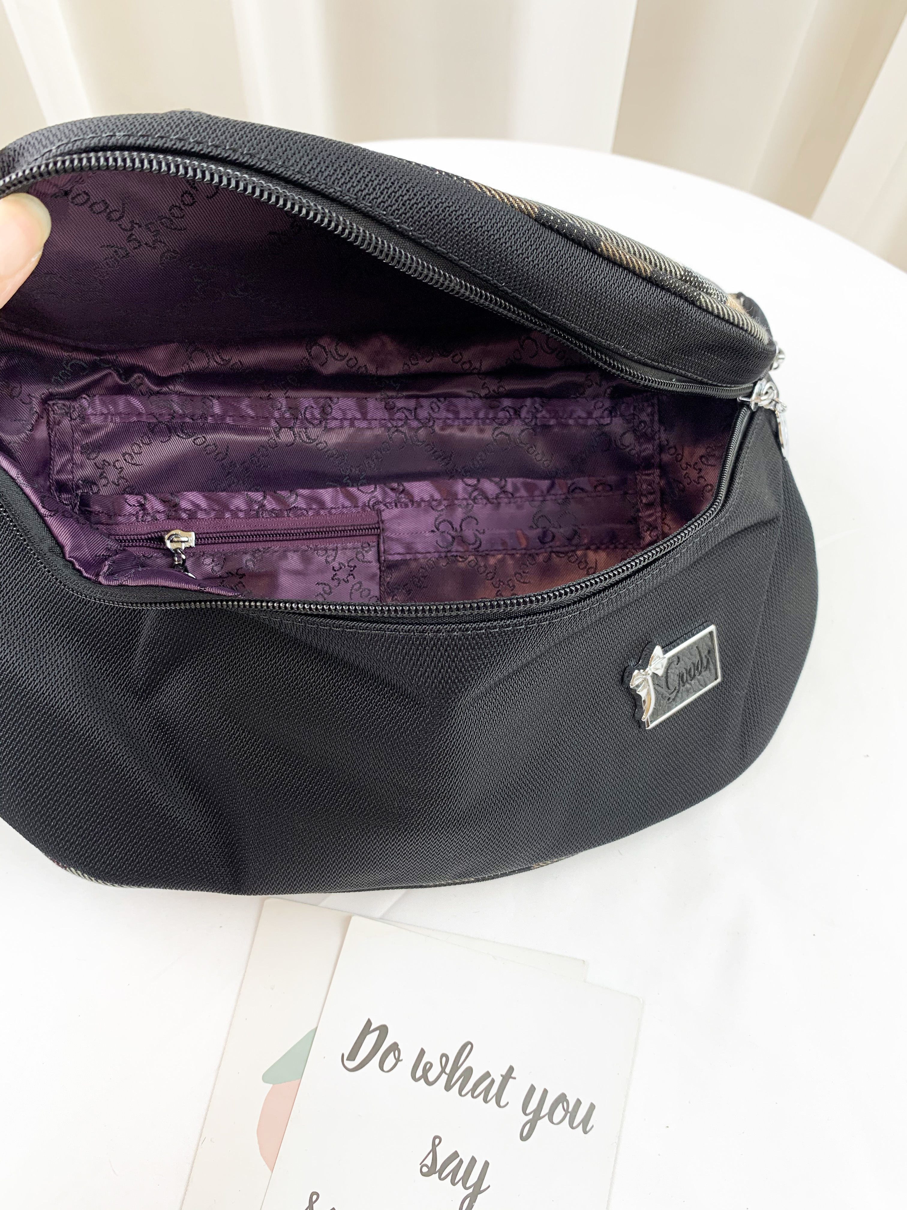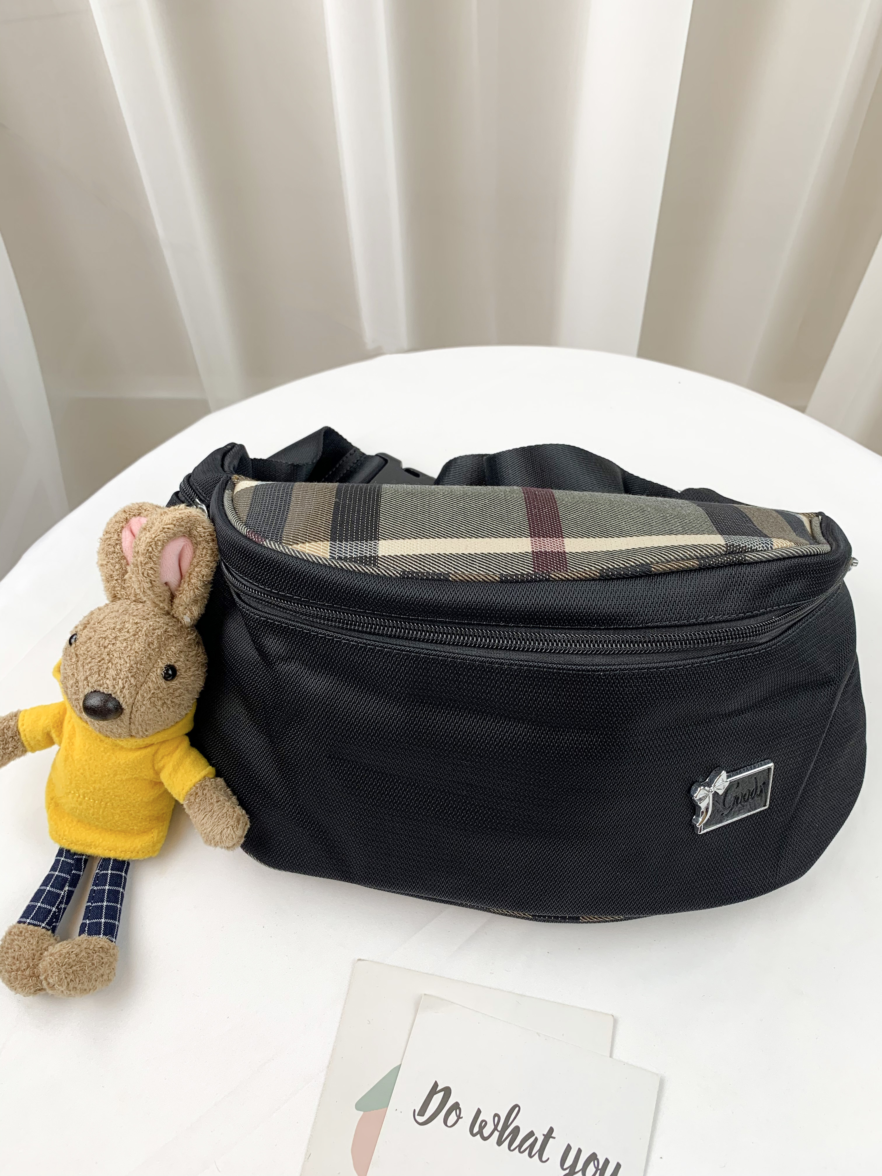 GOODS 黑格紋防潑水側背包 / 腰包 #2240