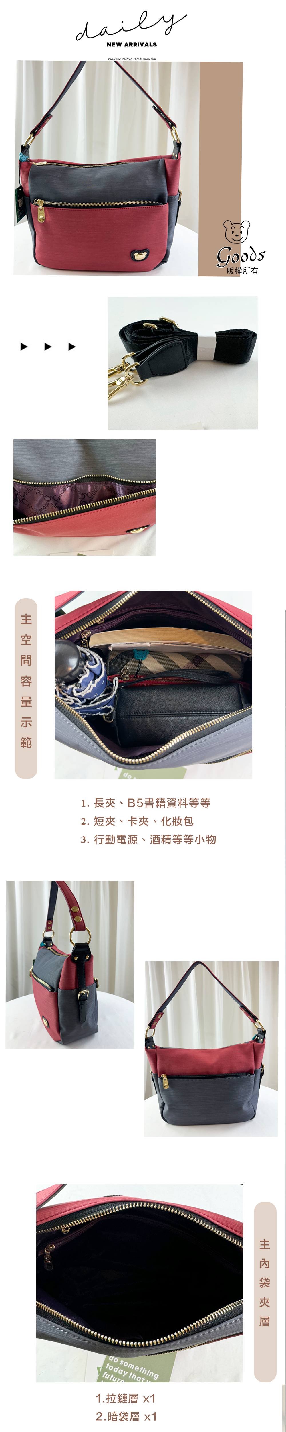 GOODS 紅灰拼色防潑水肩背包 / 側背包 #2245