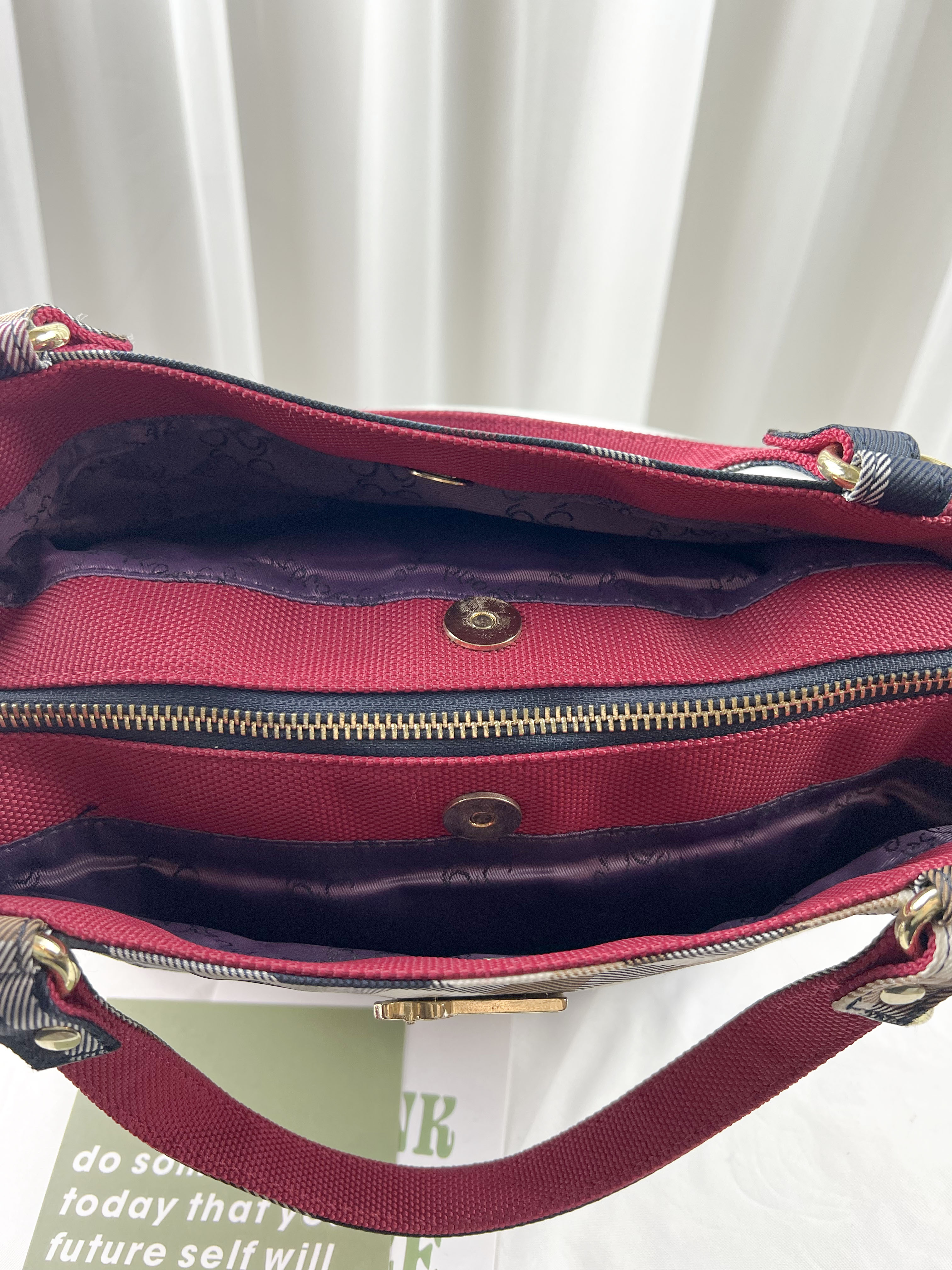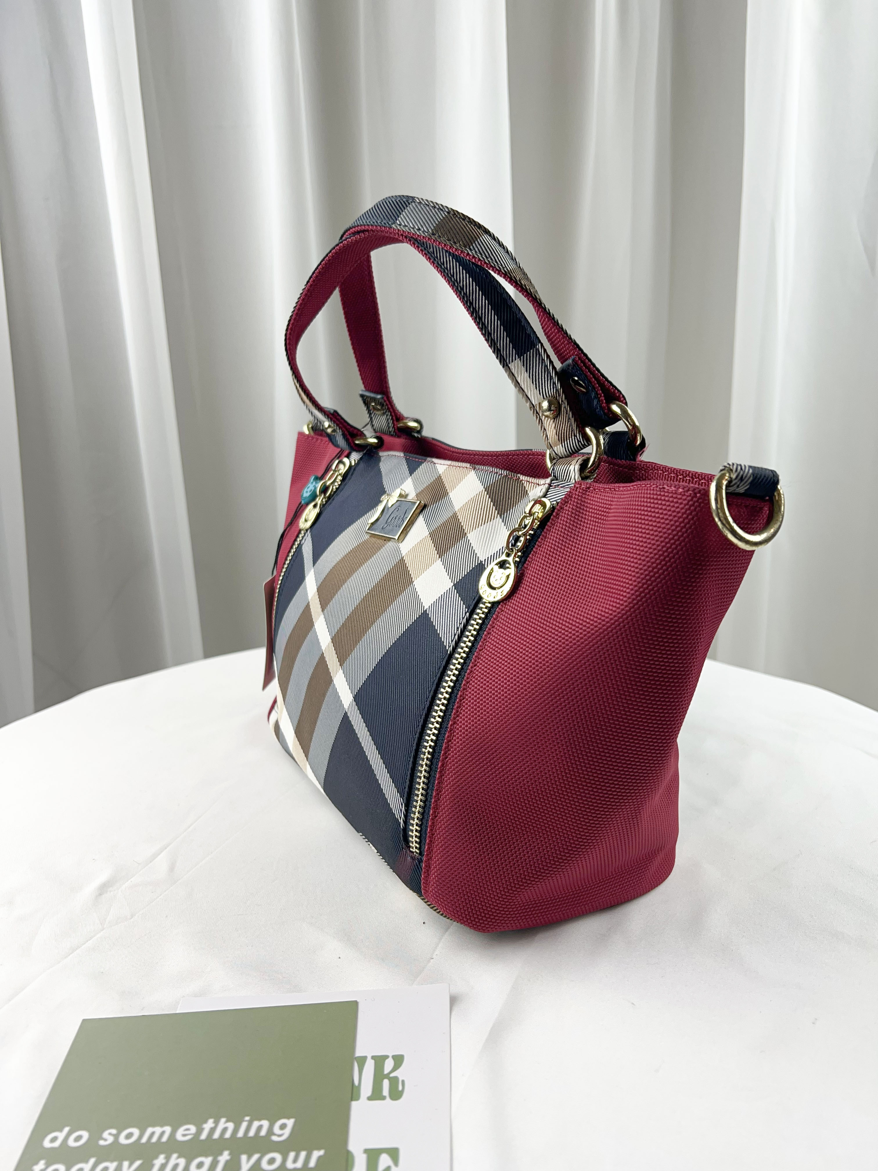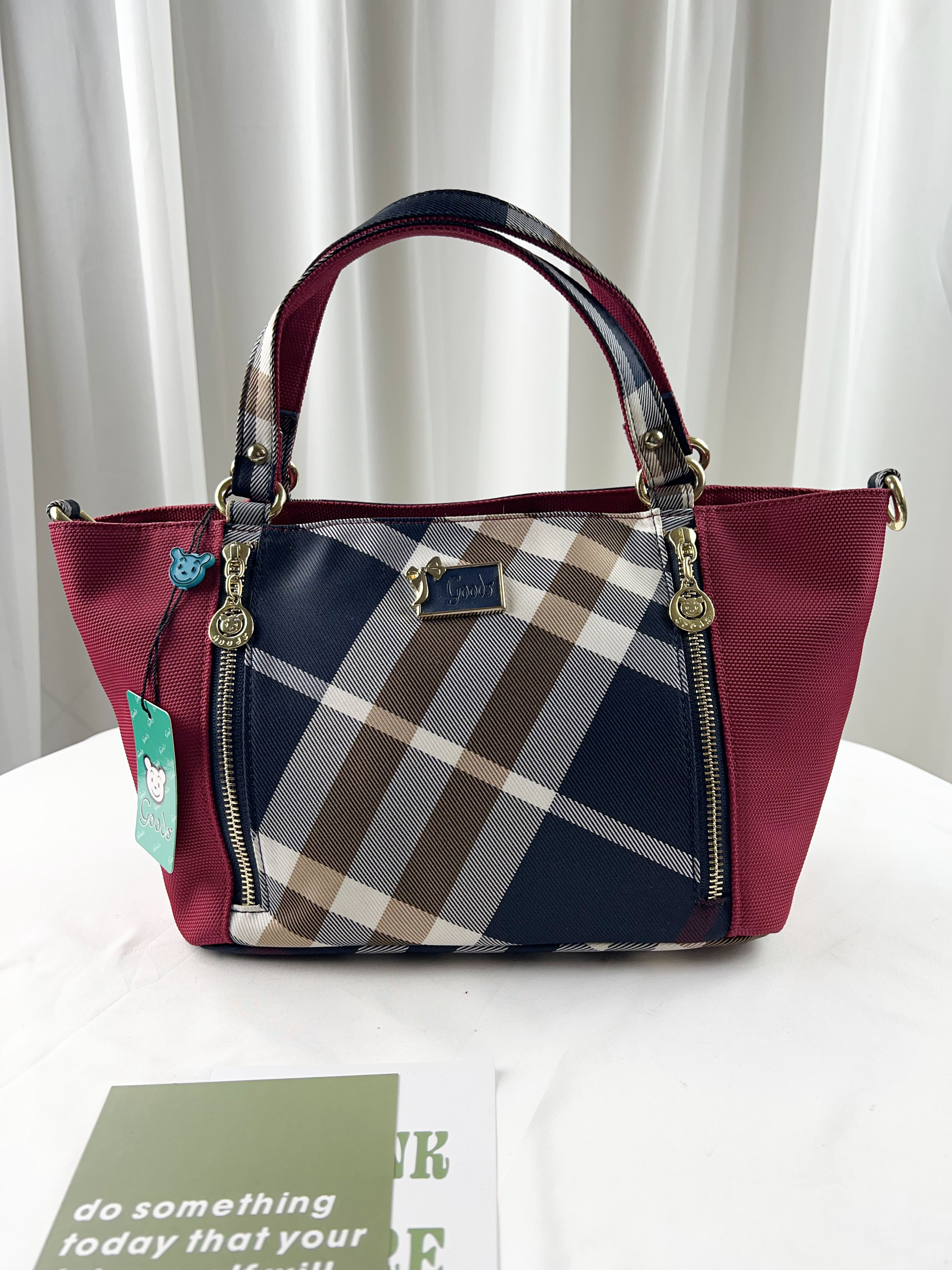 GOODS 紅格紋拼色防潑水手提包 / 側背包 #2615
