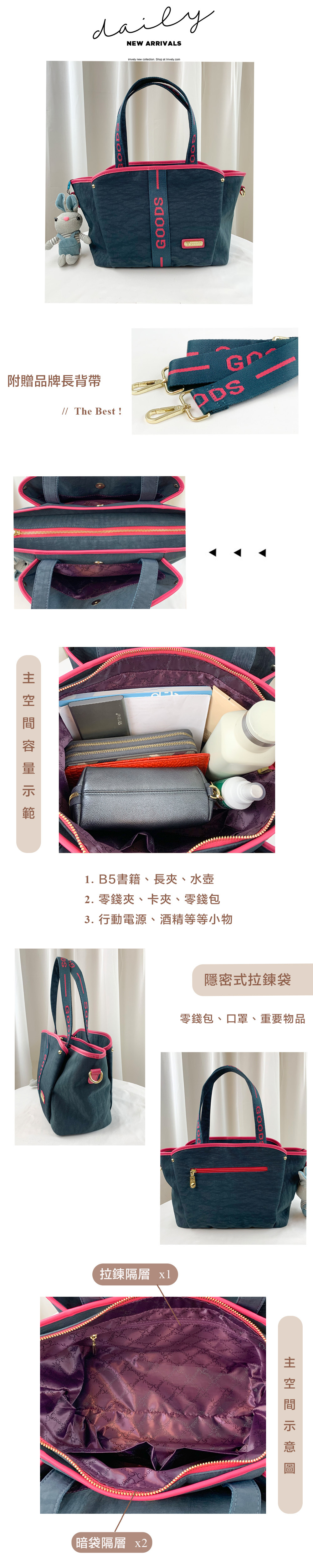 ✒︎附贈長背帶,可側揹。內裡加大容量,外出攜帶方便。