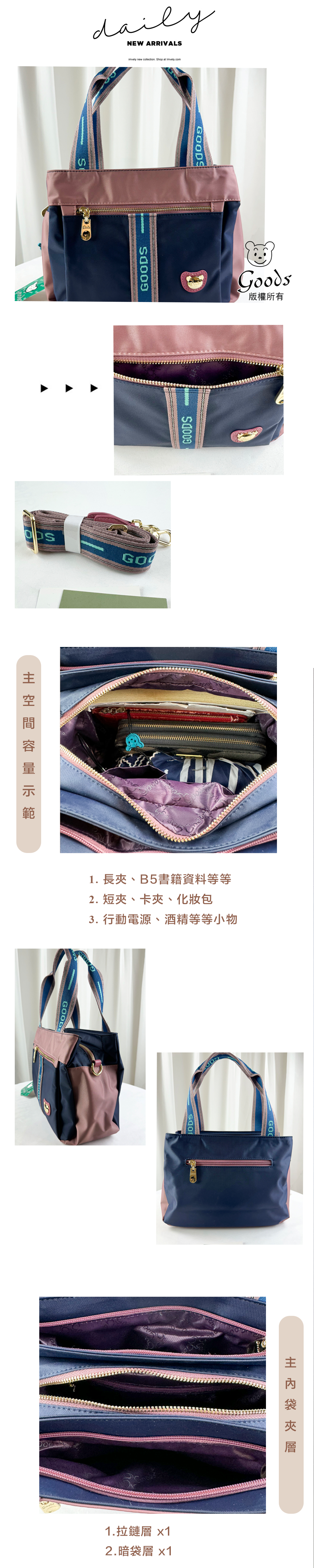GOODS 織帶藍粉防潑水手提包 / 側背包 #2757