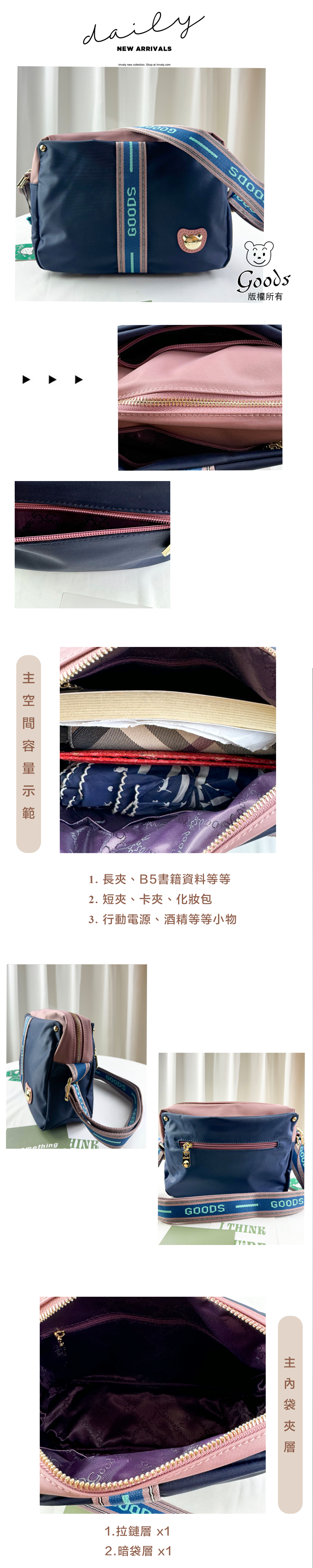 ●  規格:主空間x3  內拉鍊袋x1  暗格x1  後測拉鍊x1