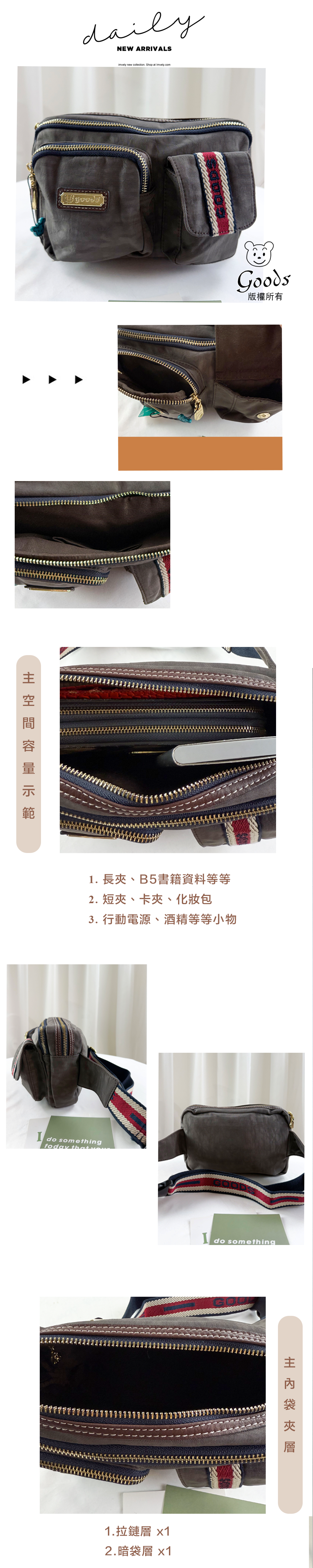 ✒︎採用防潑水布料,不怕下雨淋濕包包內裡重要物品。