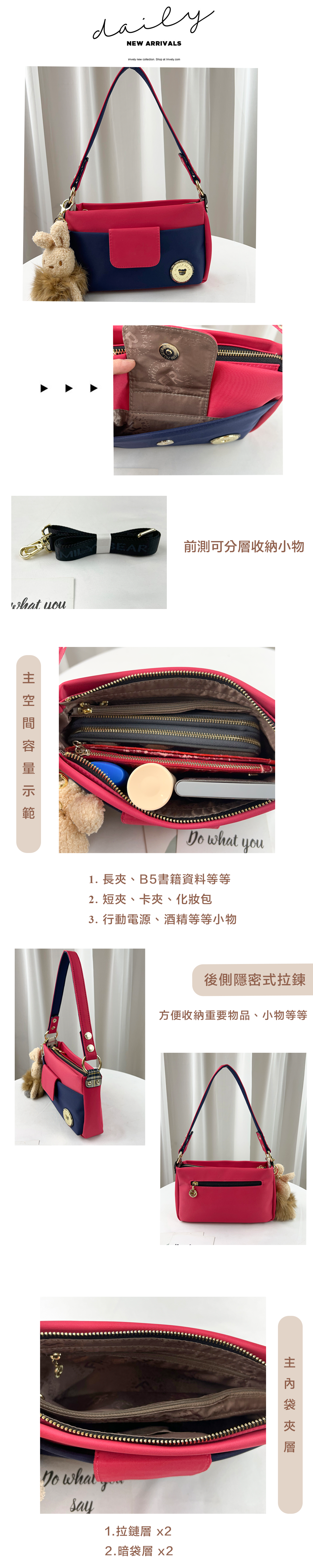 ●  規格:主空間x1  內拉鍊袋x2  暗格x1  前置拉鍊x1  後測拉鍊x1