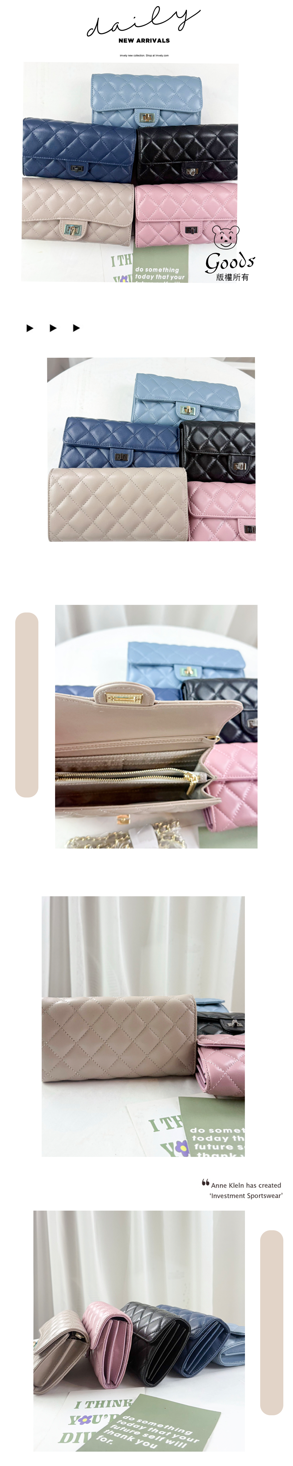 菱格紋真皮拉鍊長夾 #SM-1988