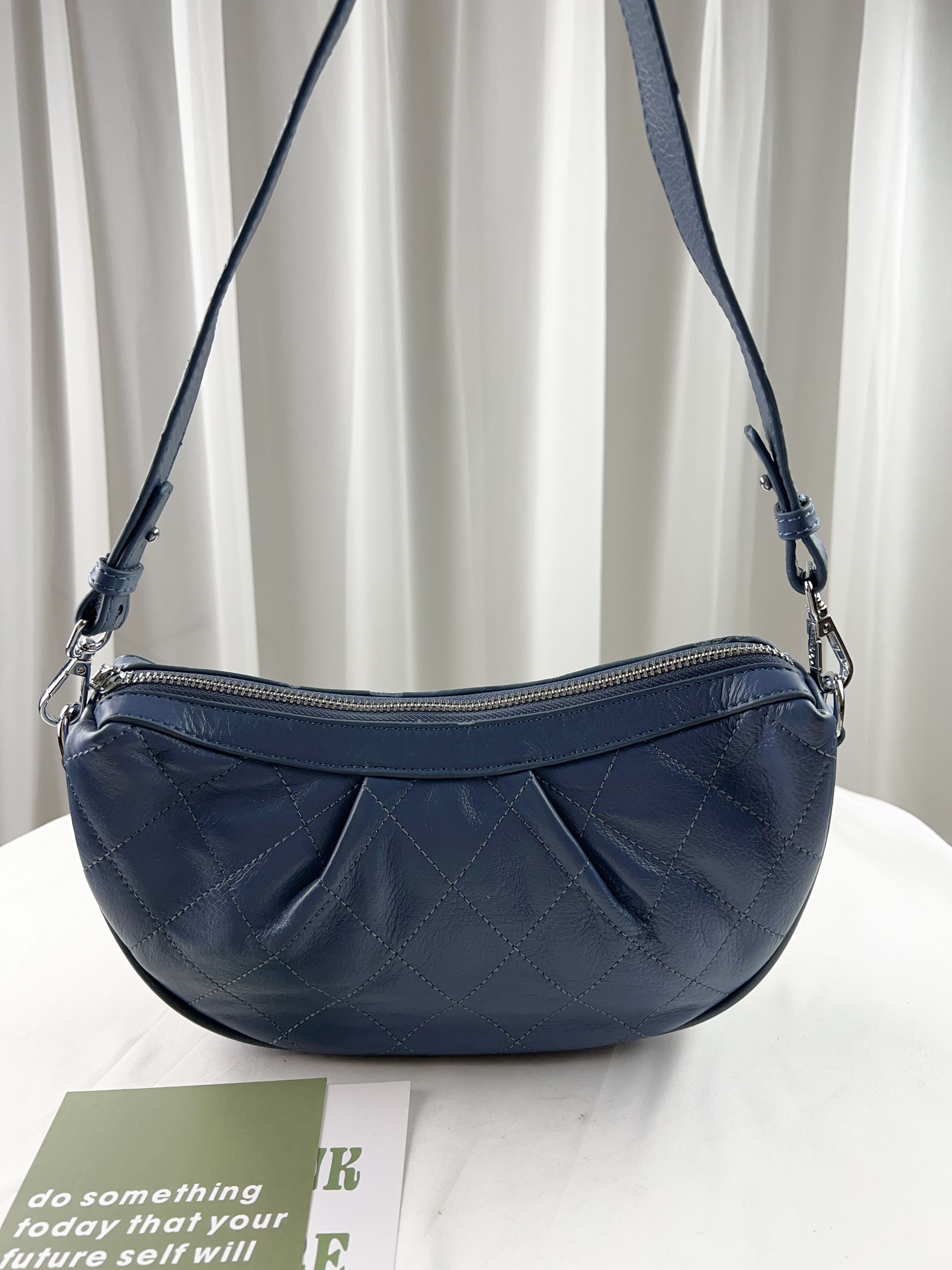 深藍 真皮牛皮肩背包 / 側背包 #SM-2046