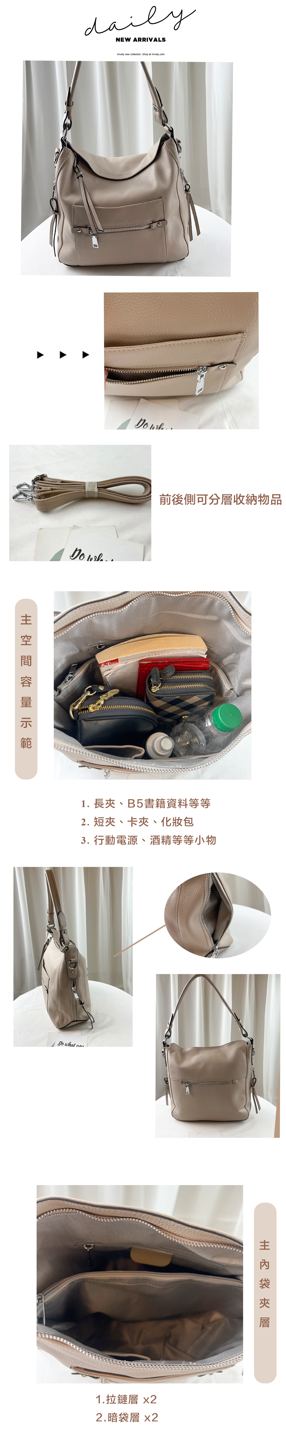 ●  規格:內裡拉鍊x2 內裡暗袋x1  前測拉鍊x1