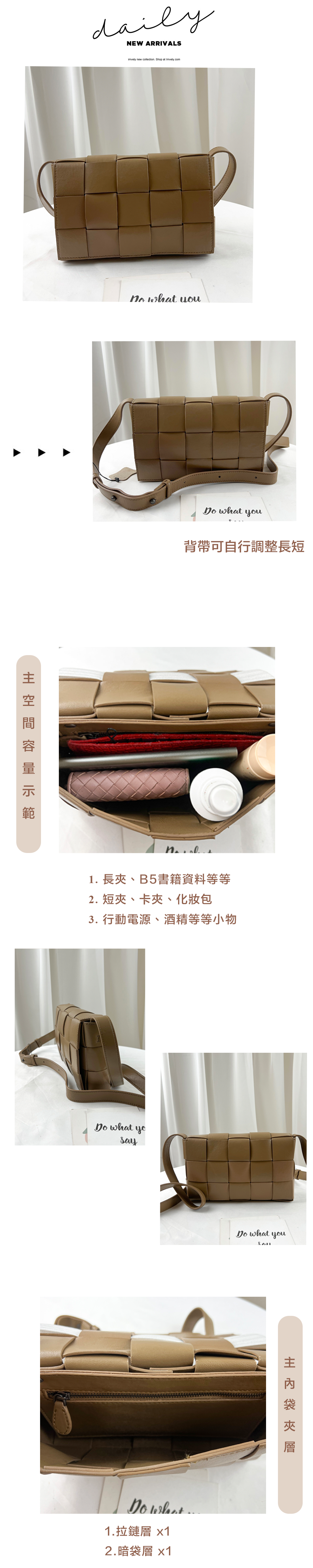 焦糖棕 寬編織真皮牛皮側背包 #SM-2975