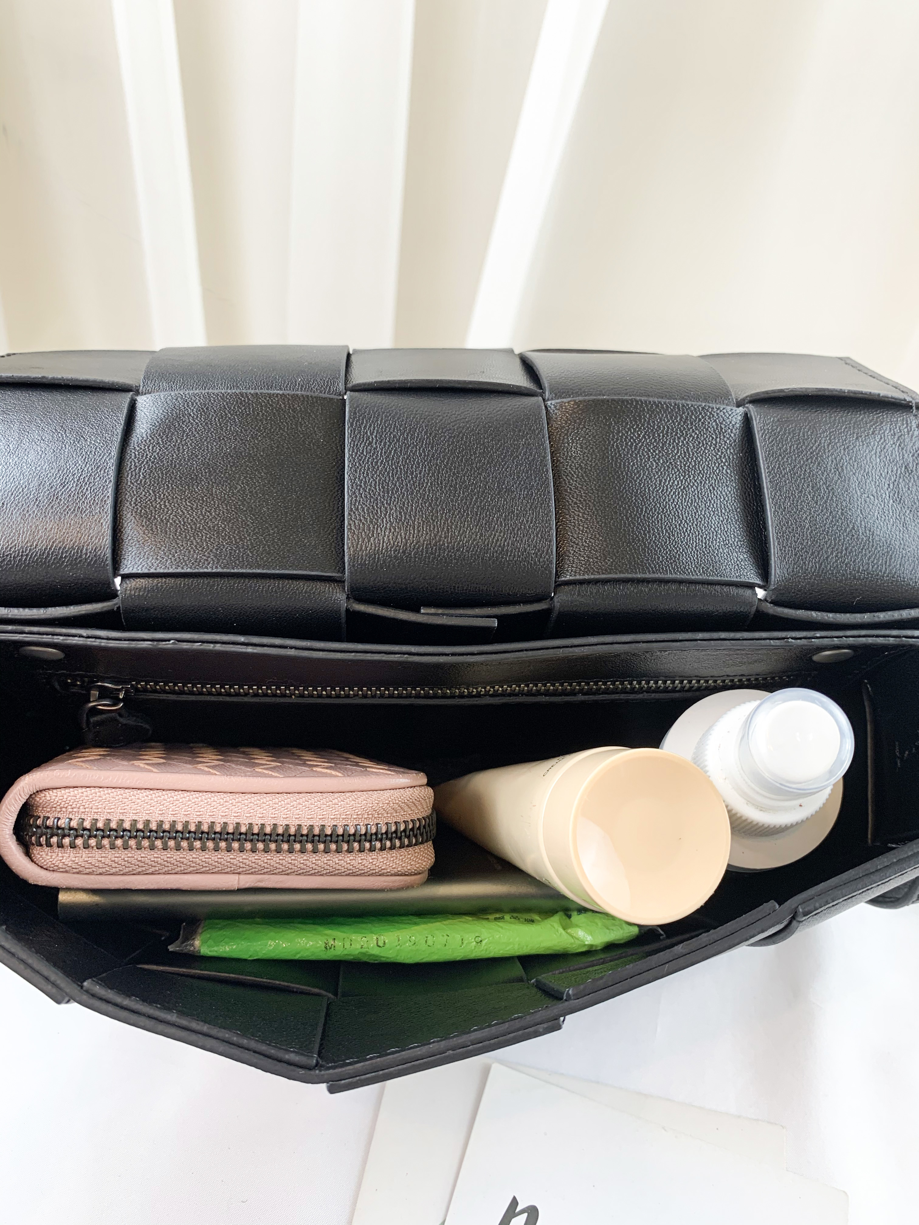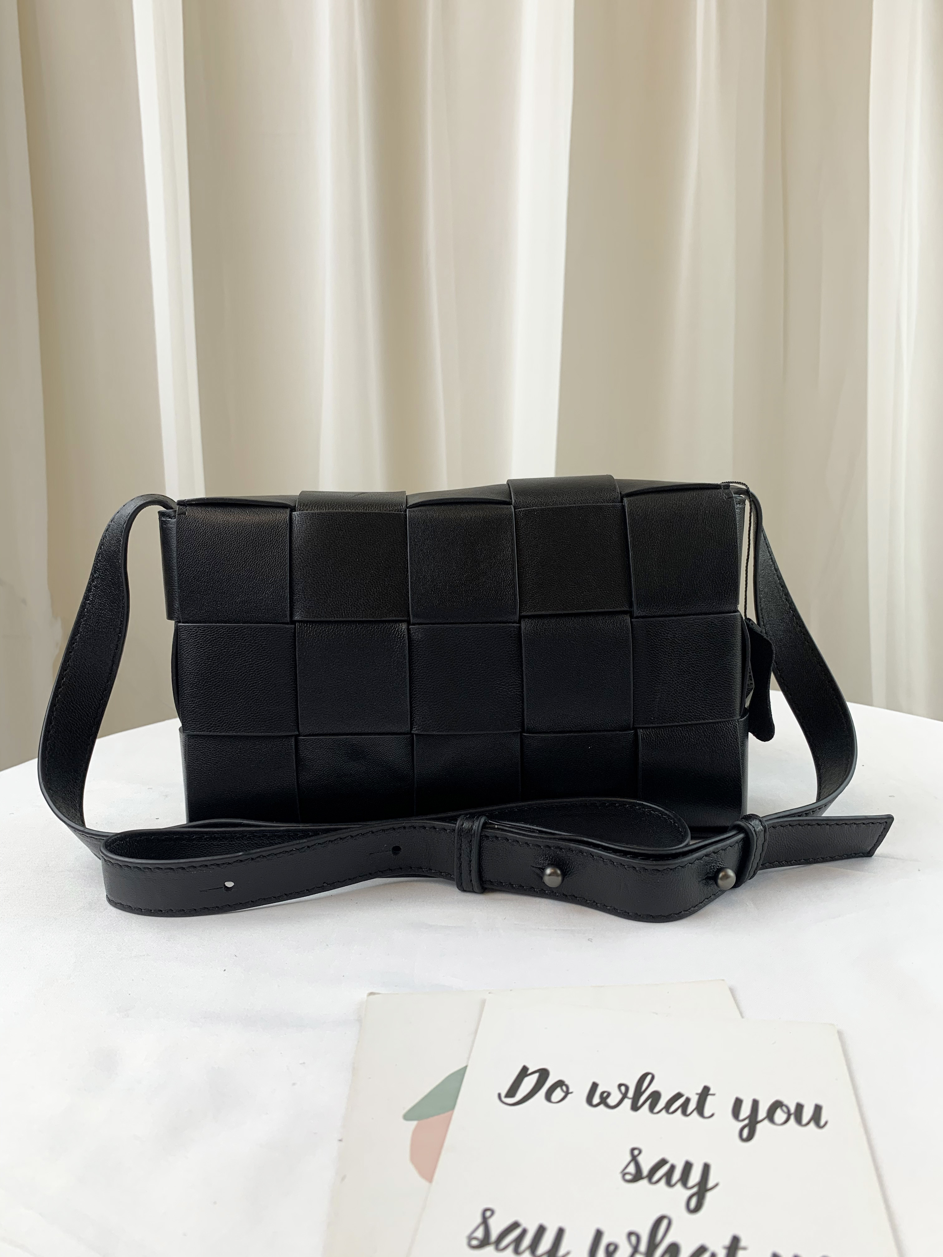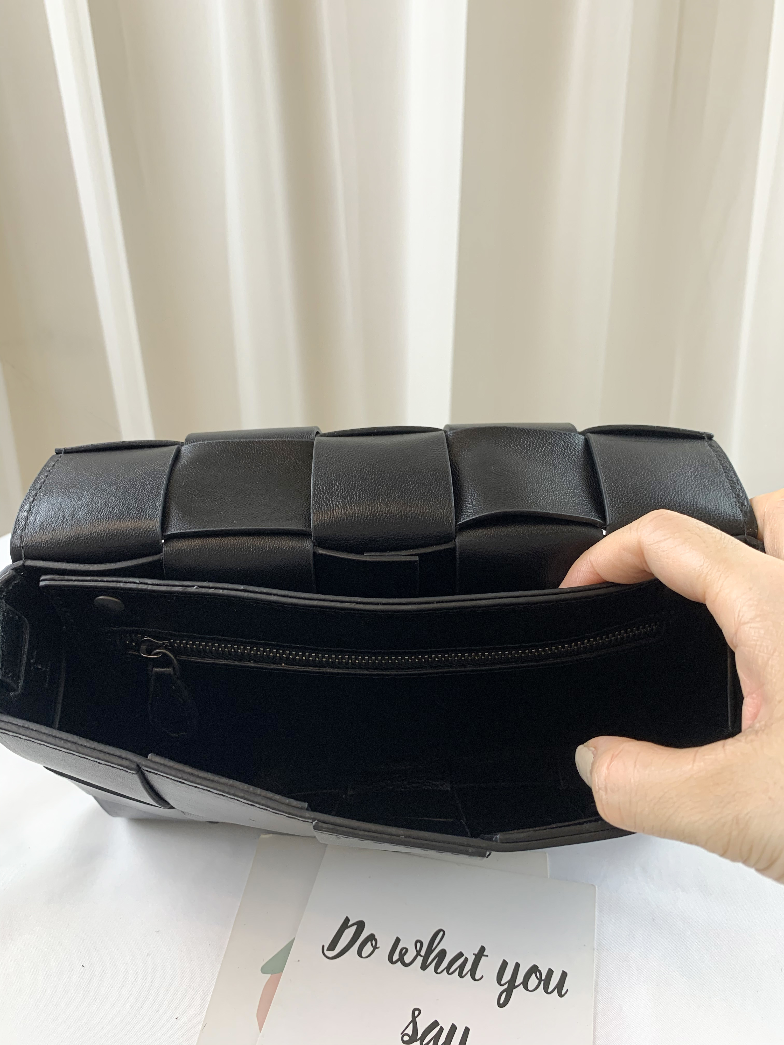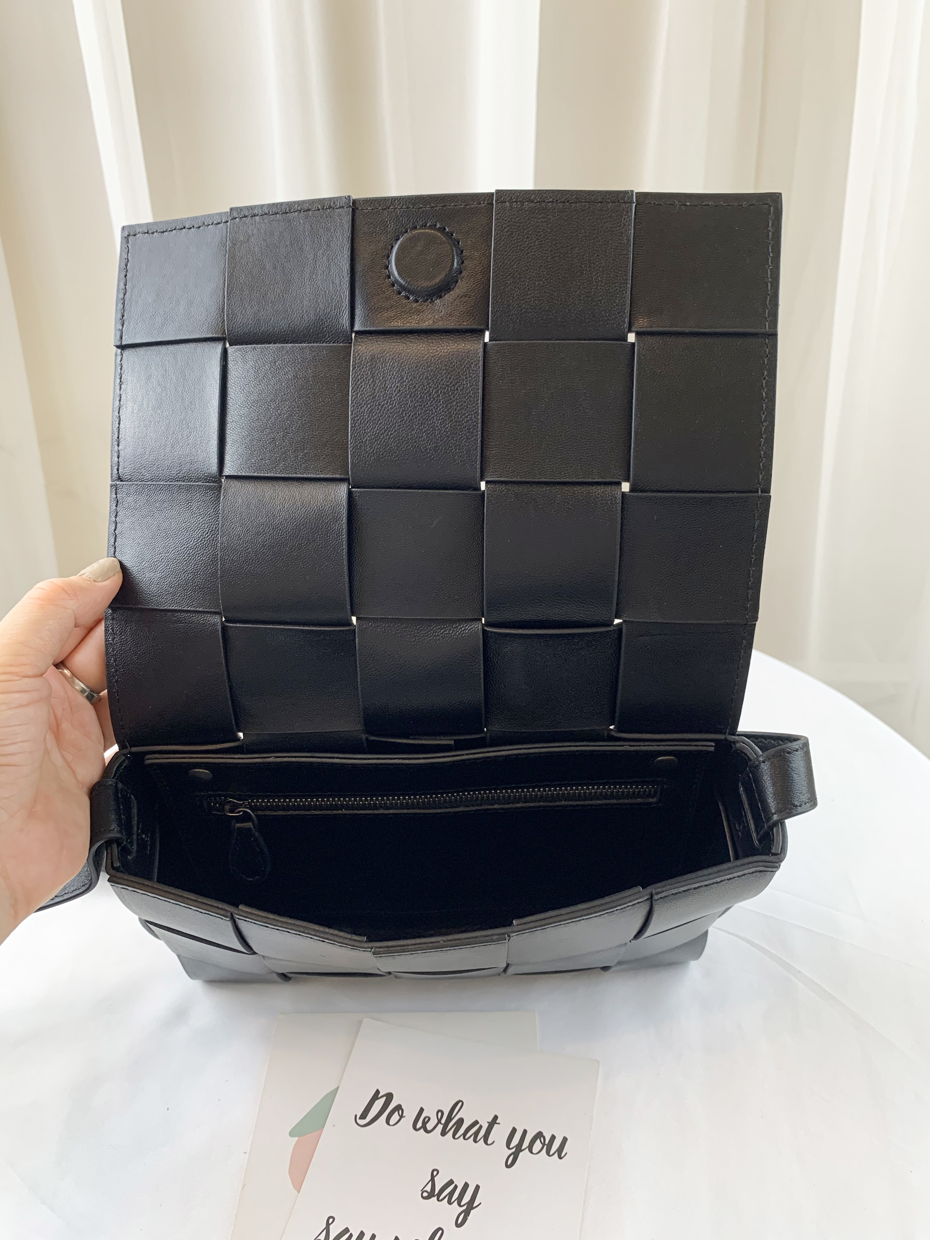 高級黑 寬編織真皮牛皮側背包 #SM-2975