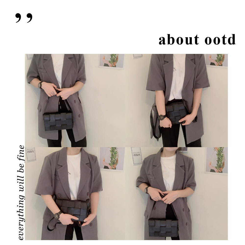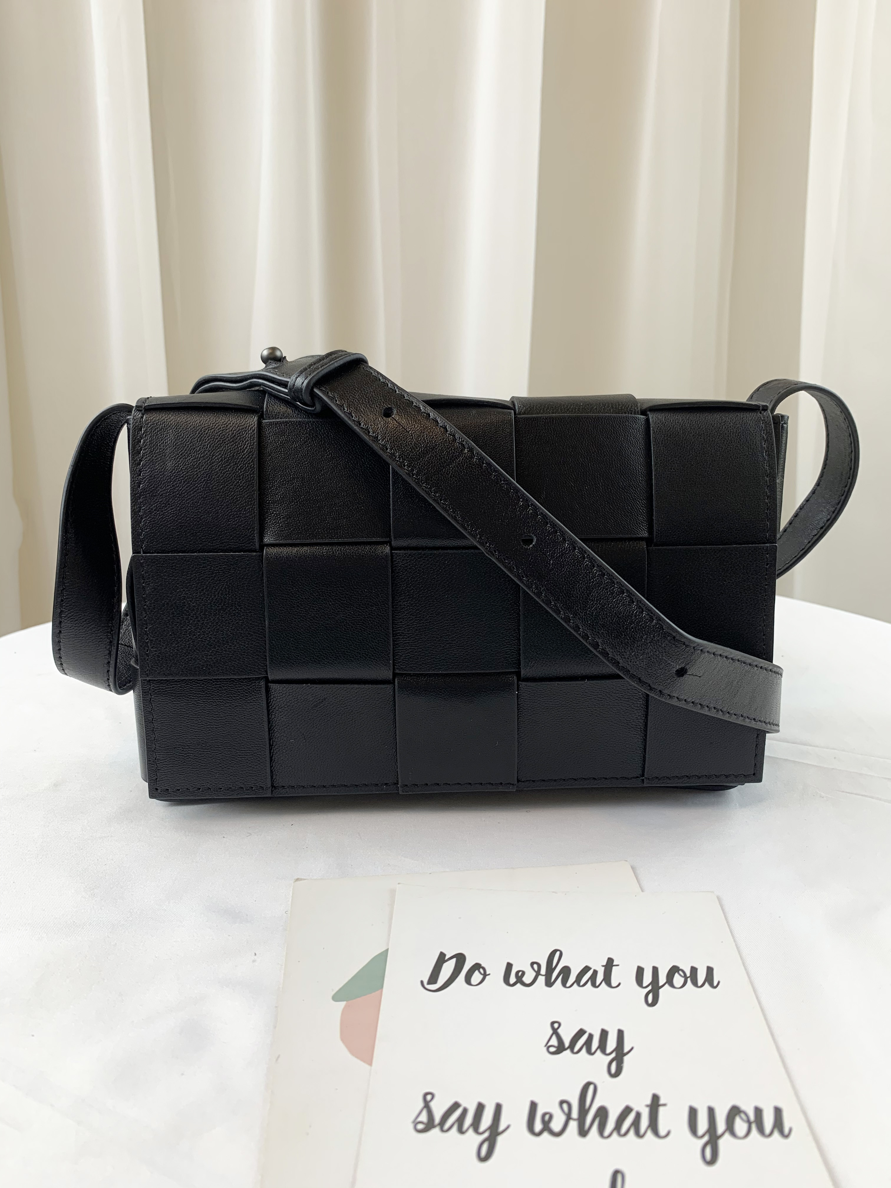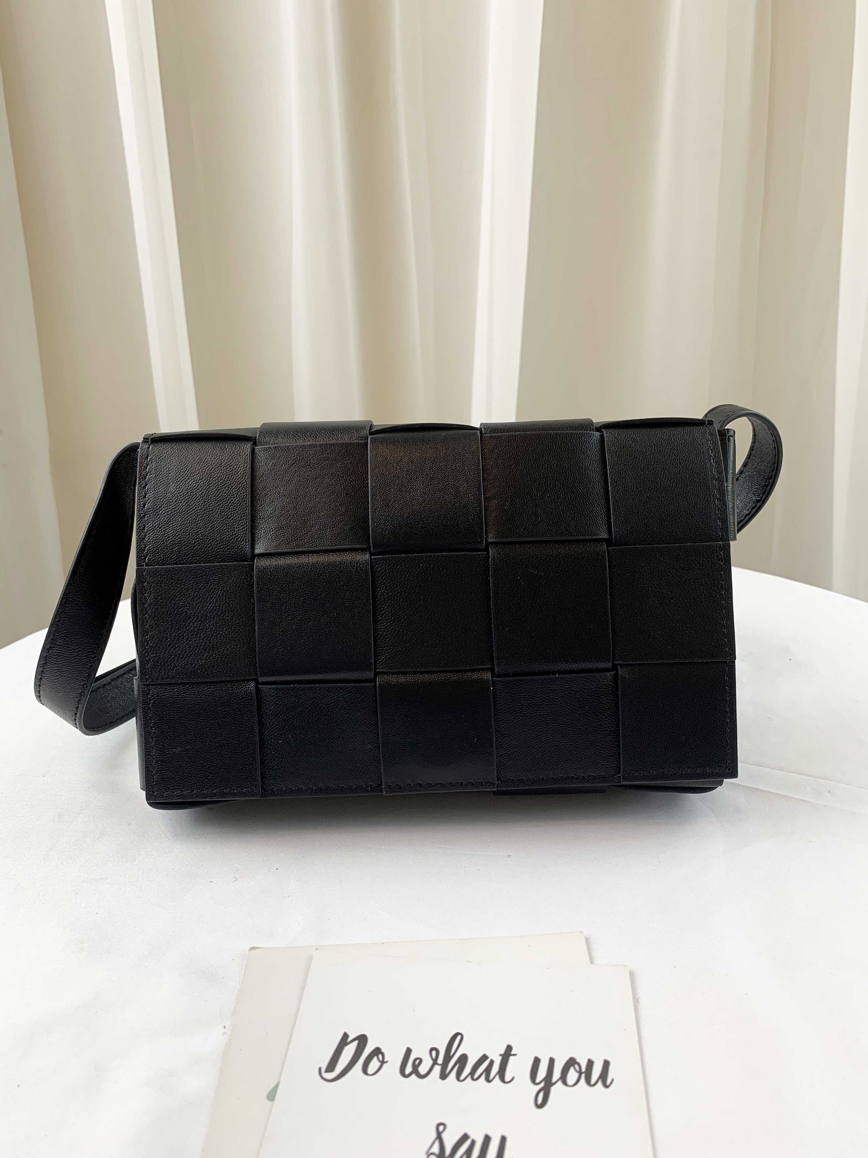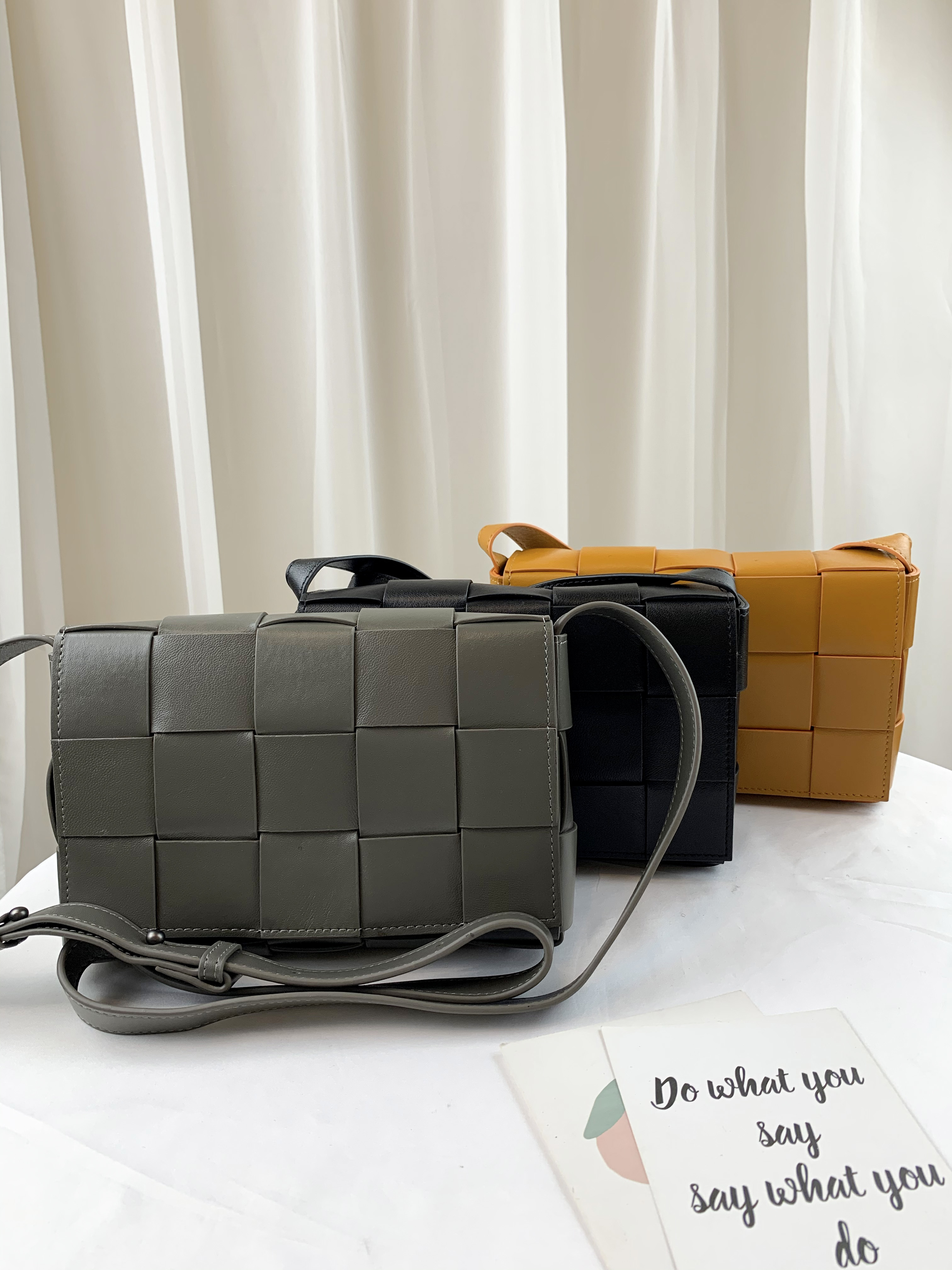 高級黑 寬編織真皮牛皮側背包 #SM-2975
