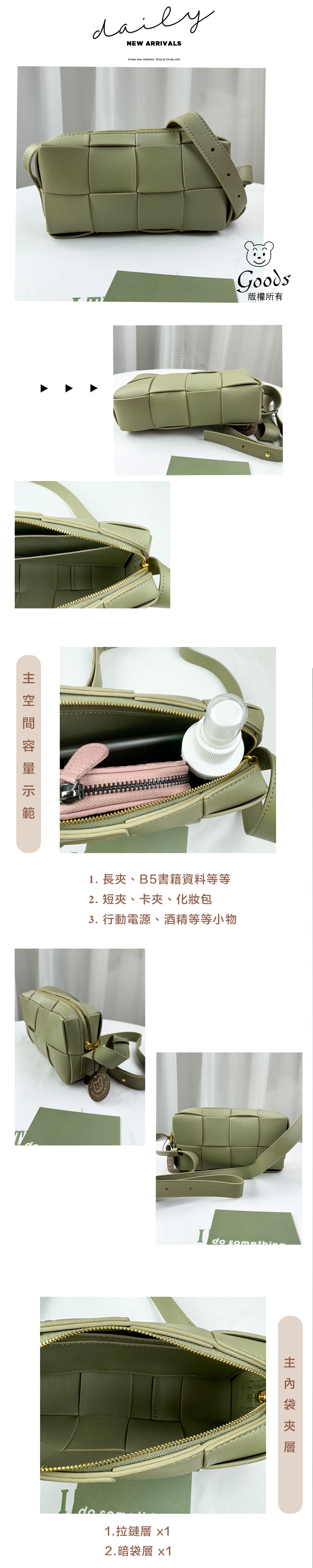 酪梨綠 寬編織真皮牛皮胸包 / 側背包 #SM-8709