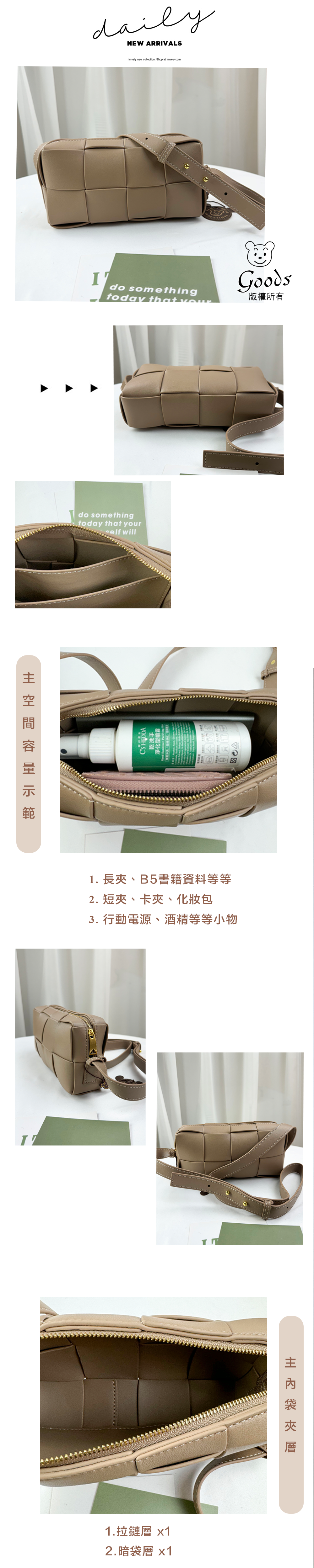 奶茶棕 寬編織真皮牛皮胸包 / 側背包 #SM-8709