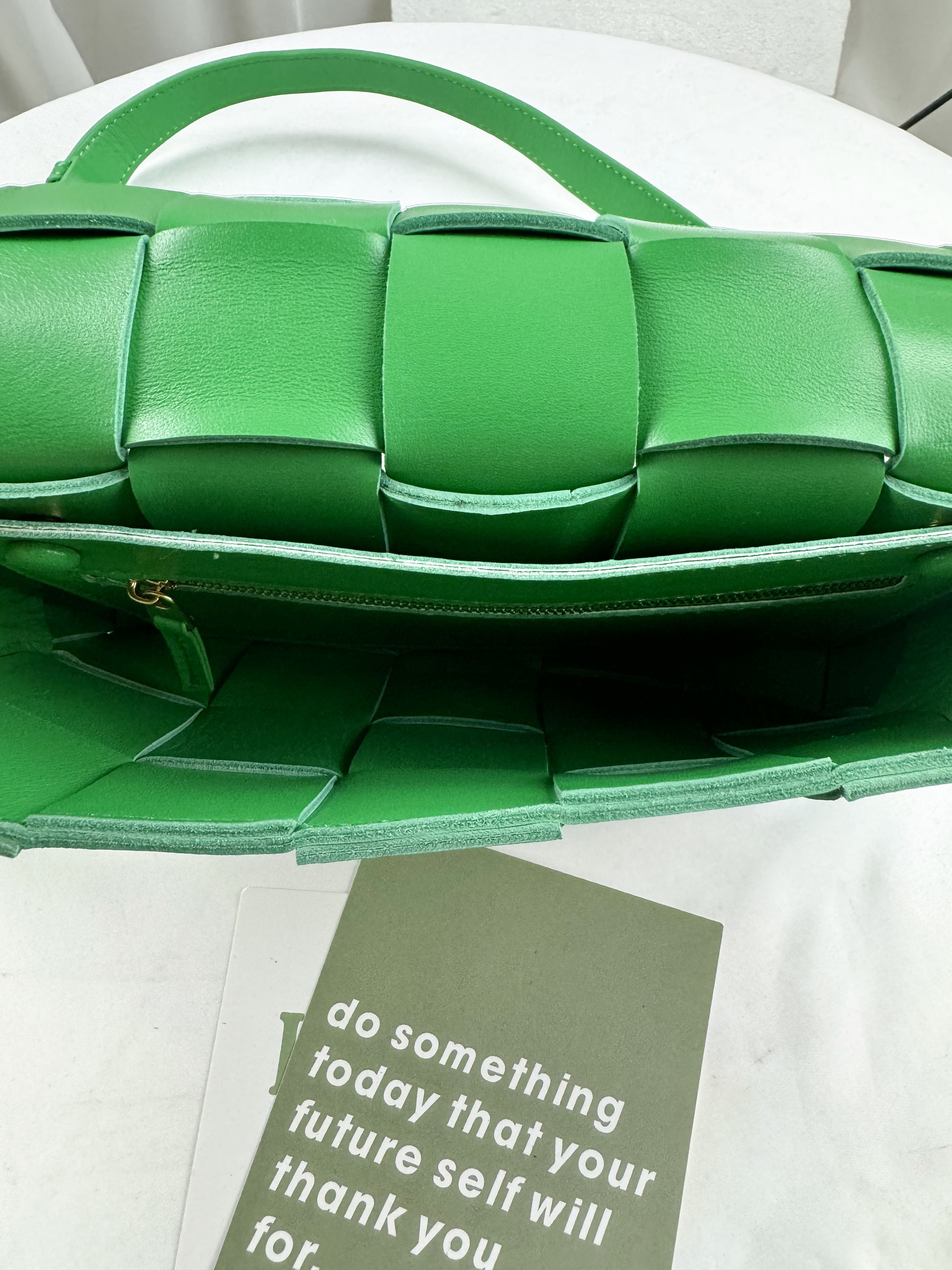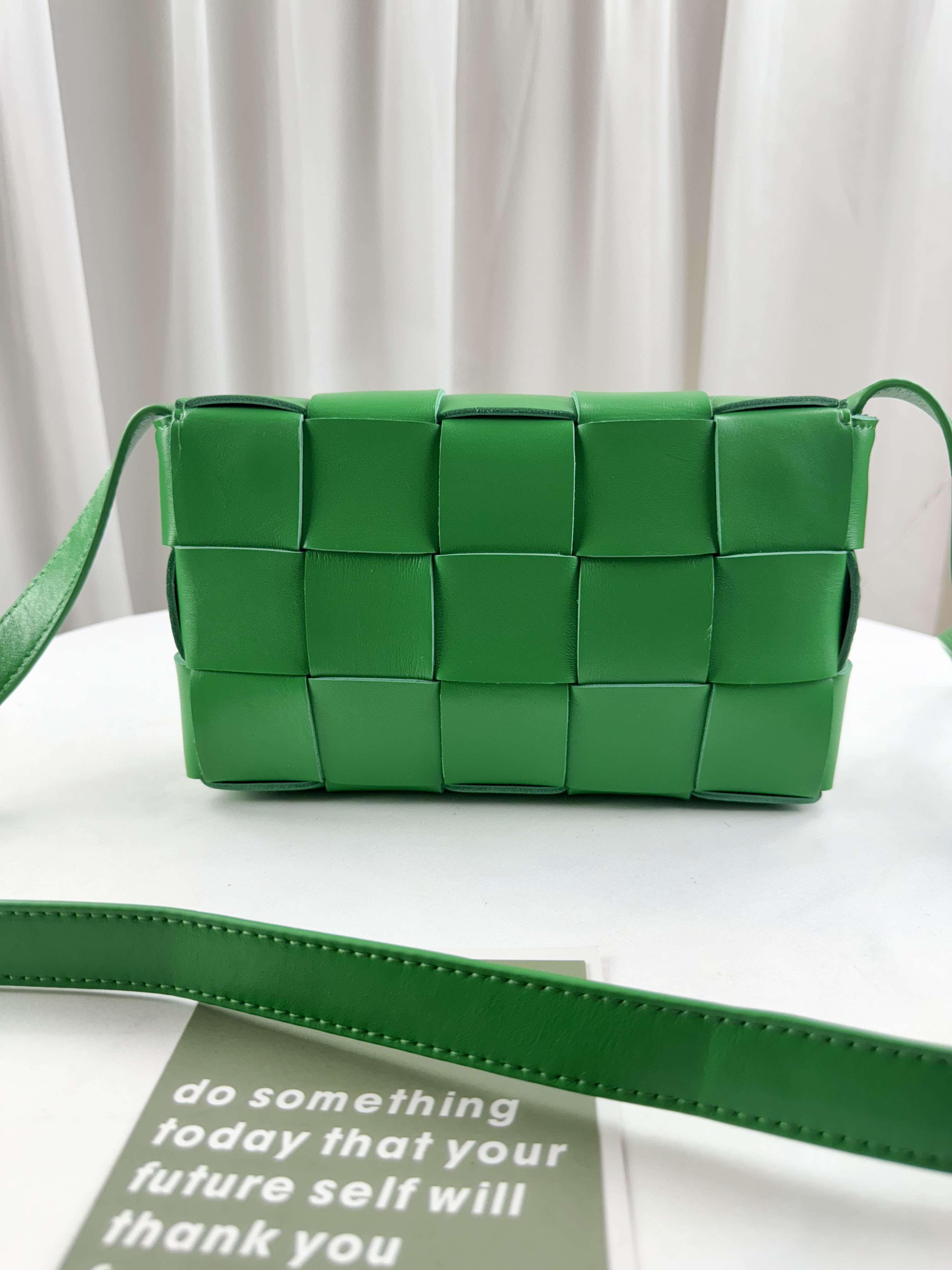 草地綠 寬編織真皮牛皮側背包 #SM-2975