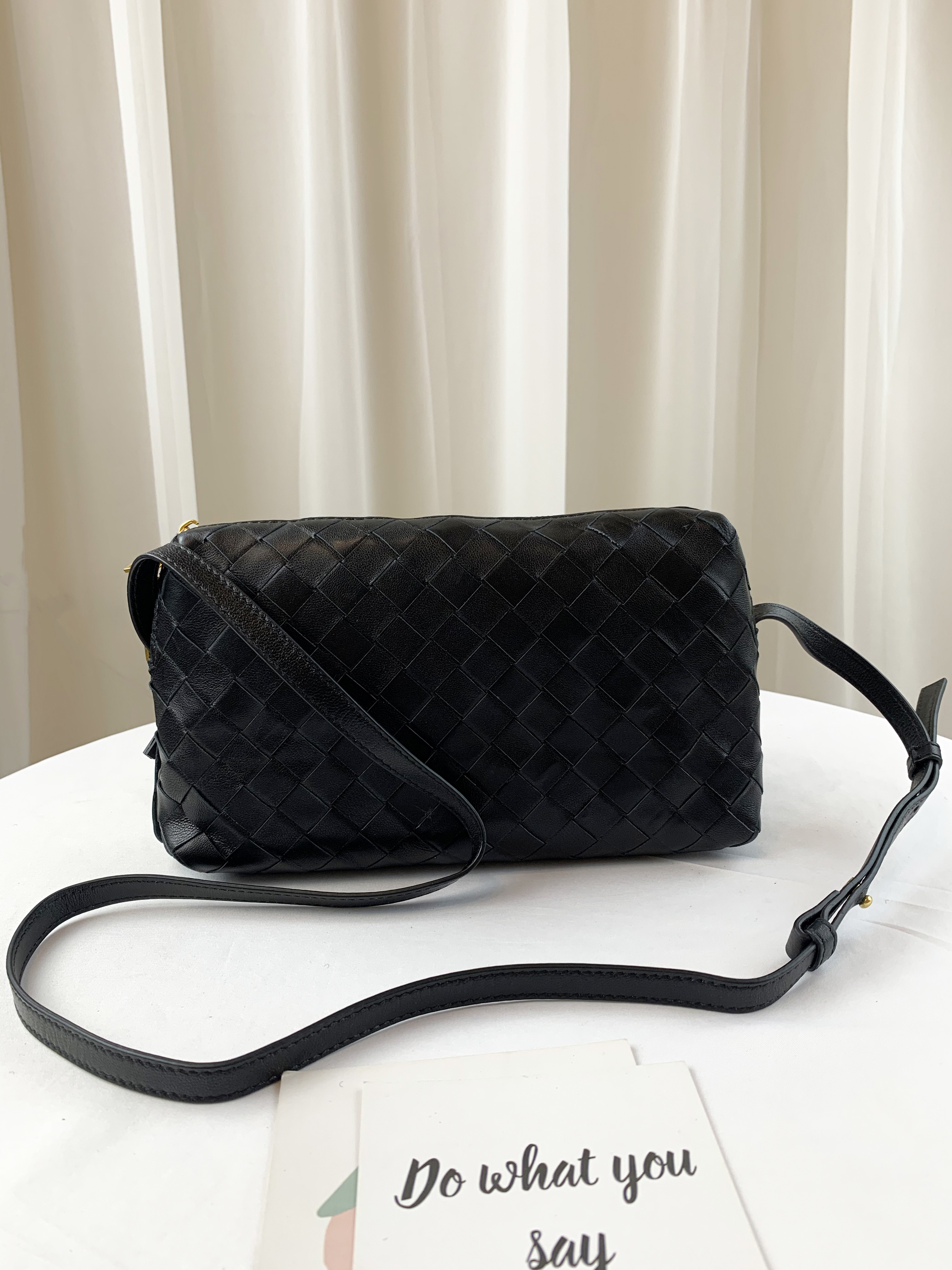 經典黑 編織真皮牛皮側背包 / 手拿包 #SM-2990