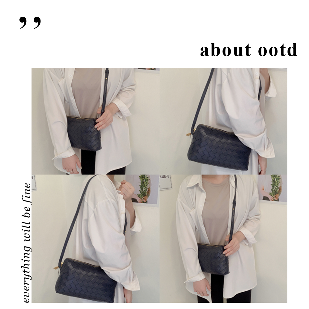 藏青藍 編織真皮牛皮側背包 / 手拿包 #SM-2990