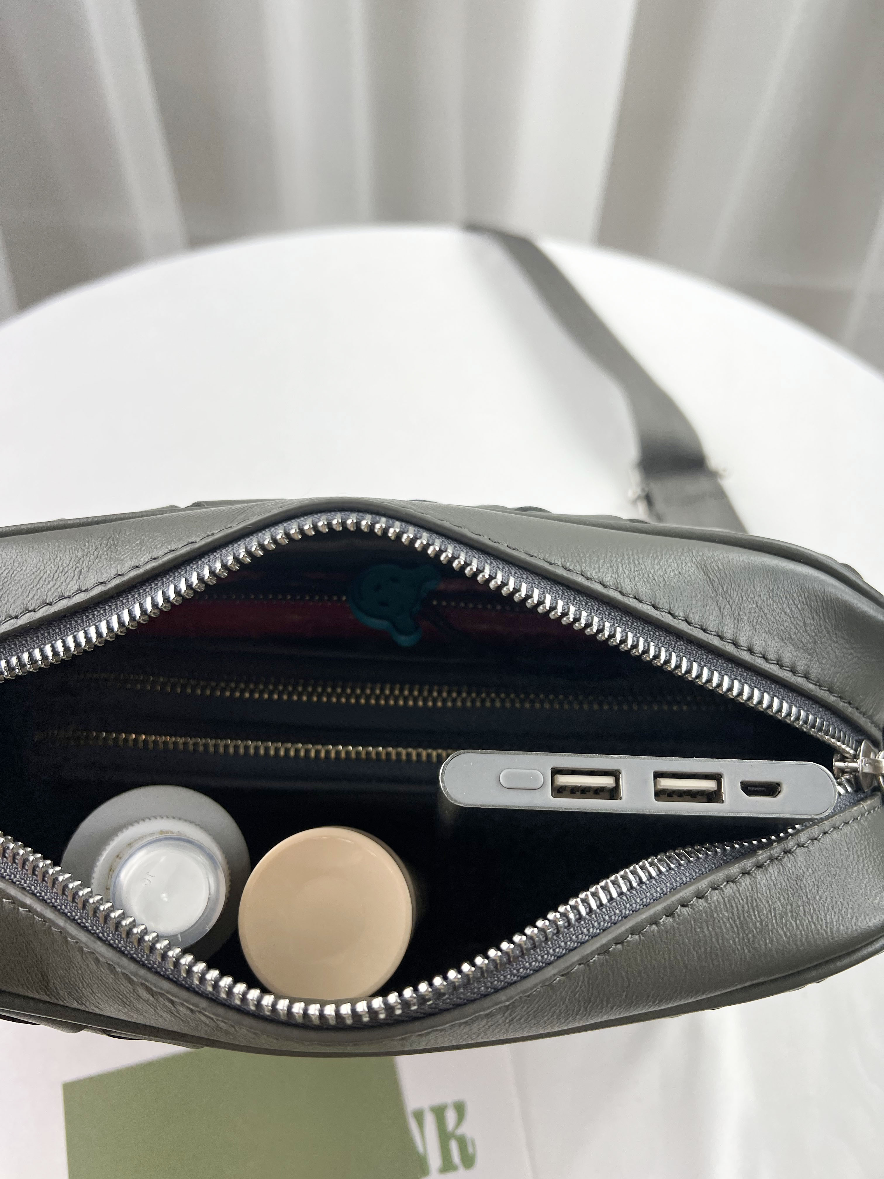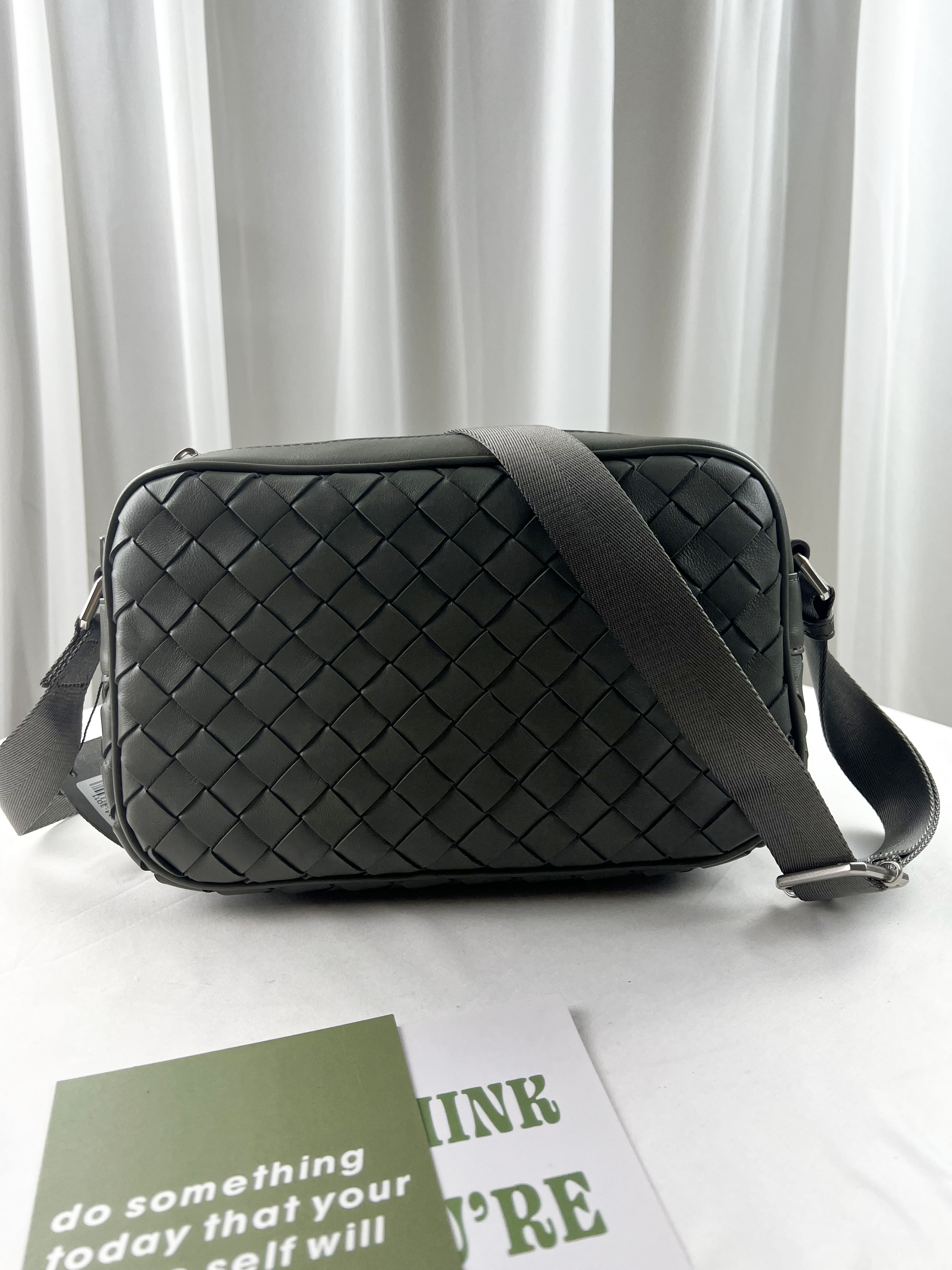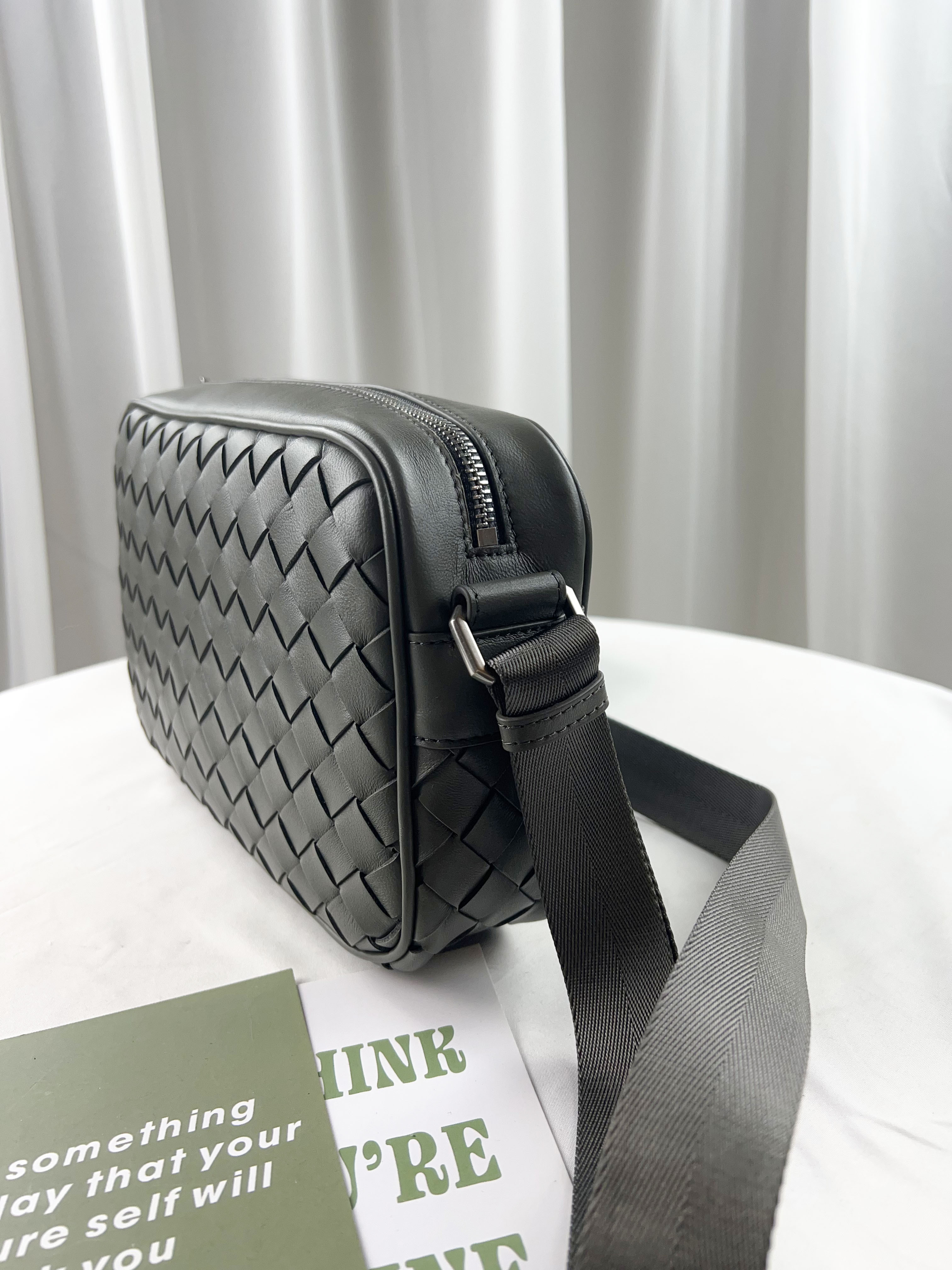 深灰 寬編織真皮牛皮側背包 #SM-3011