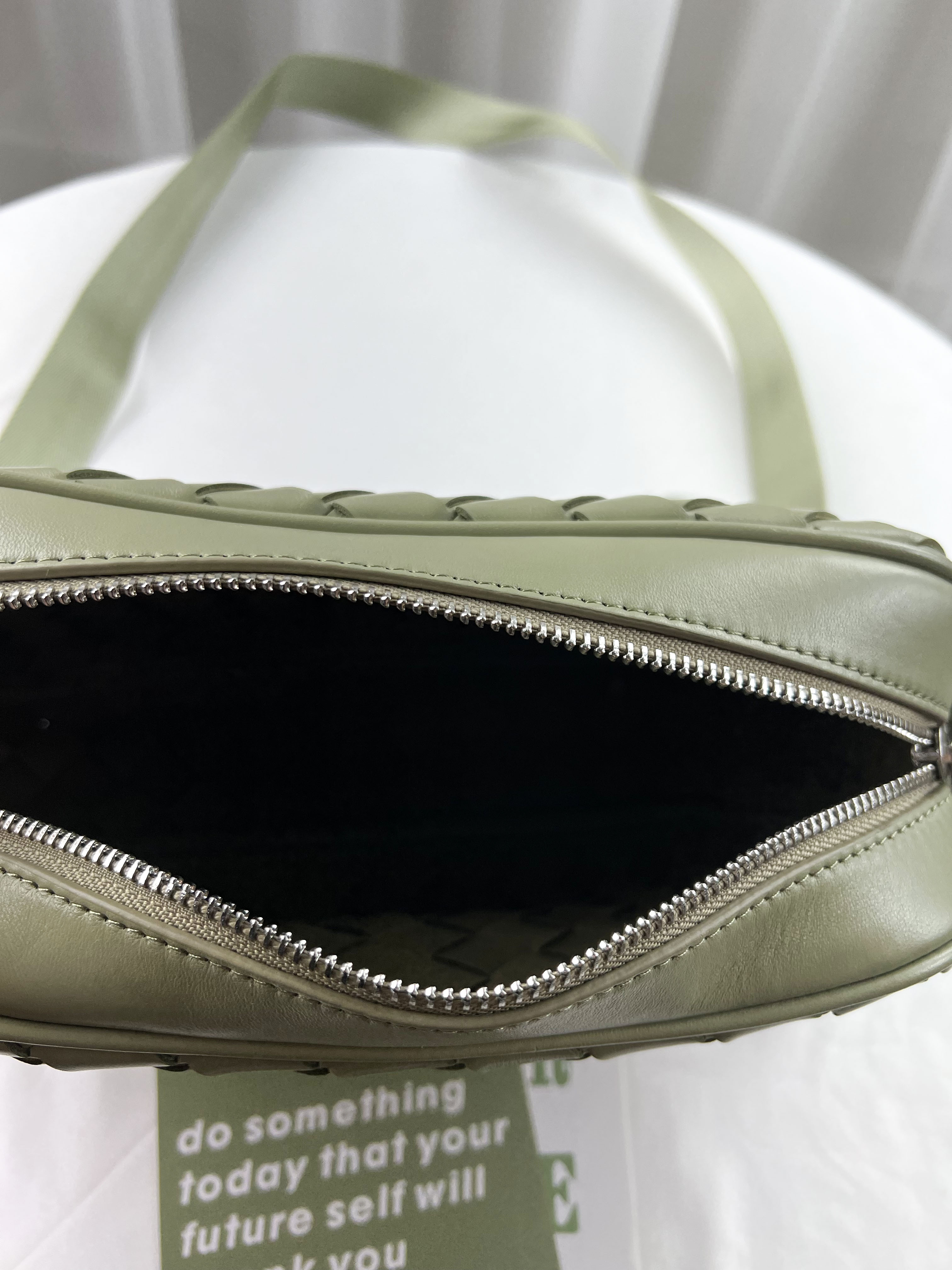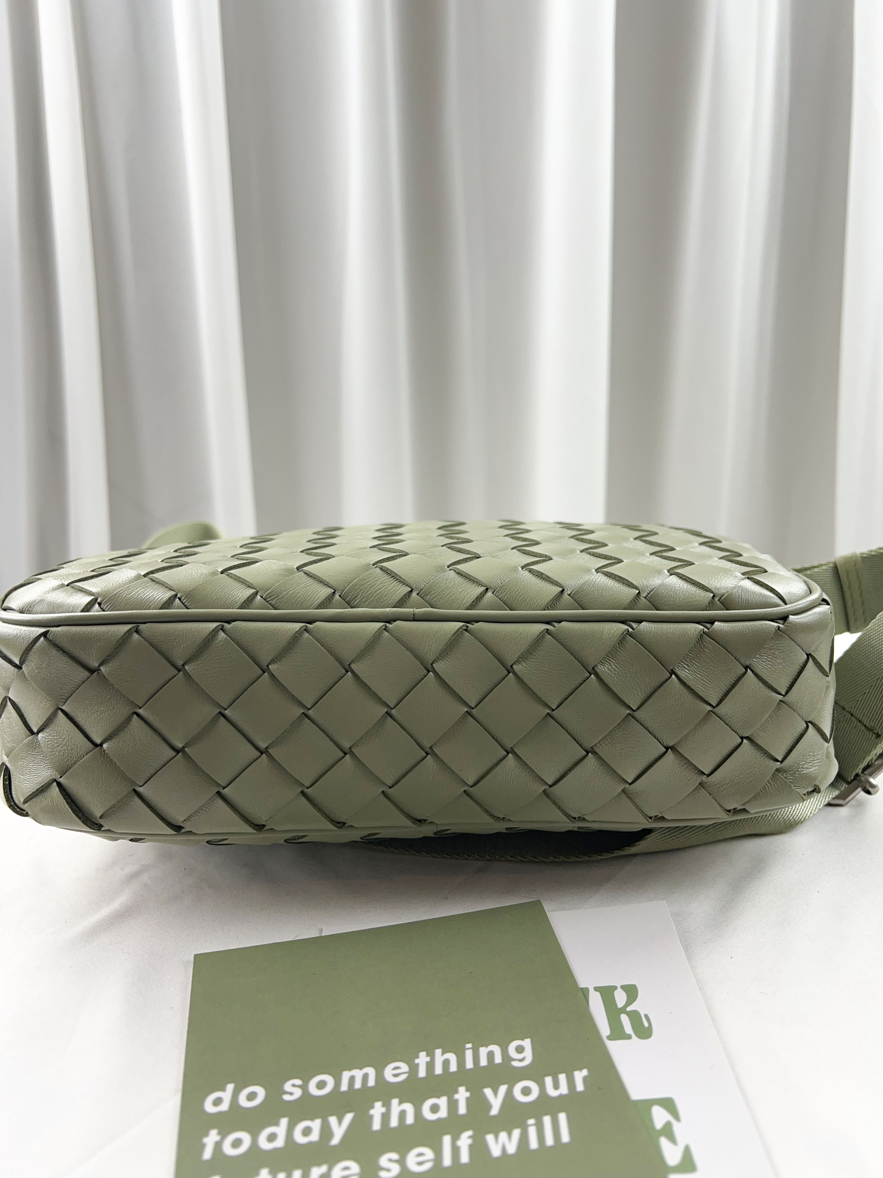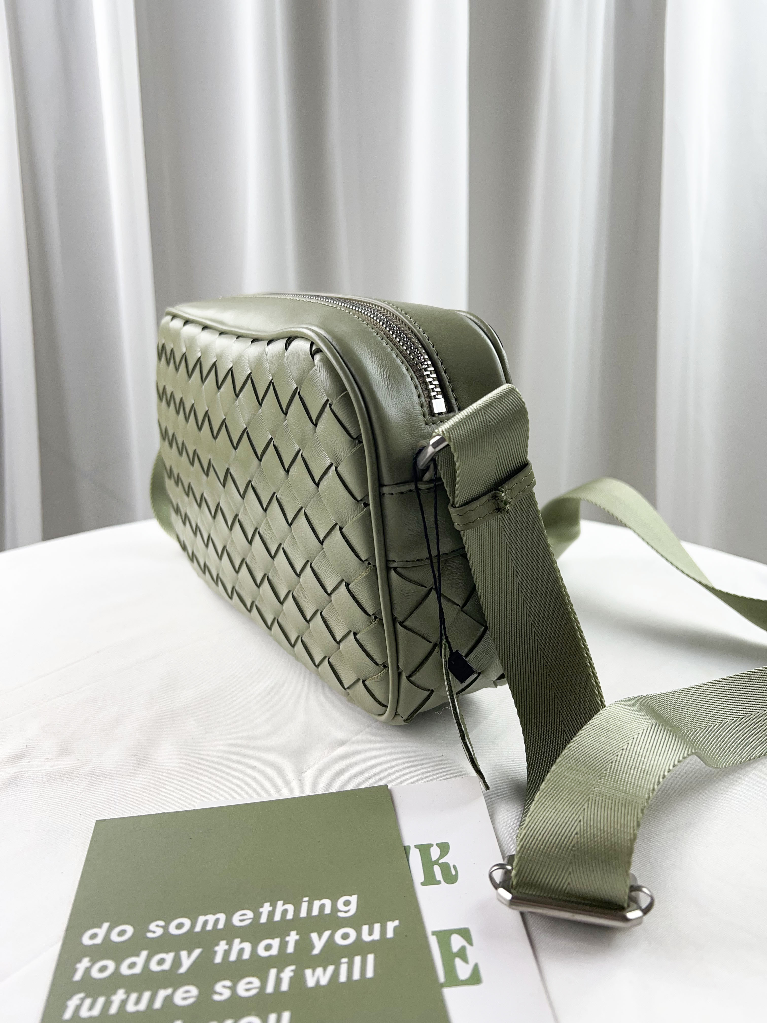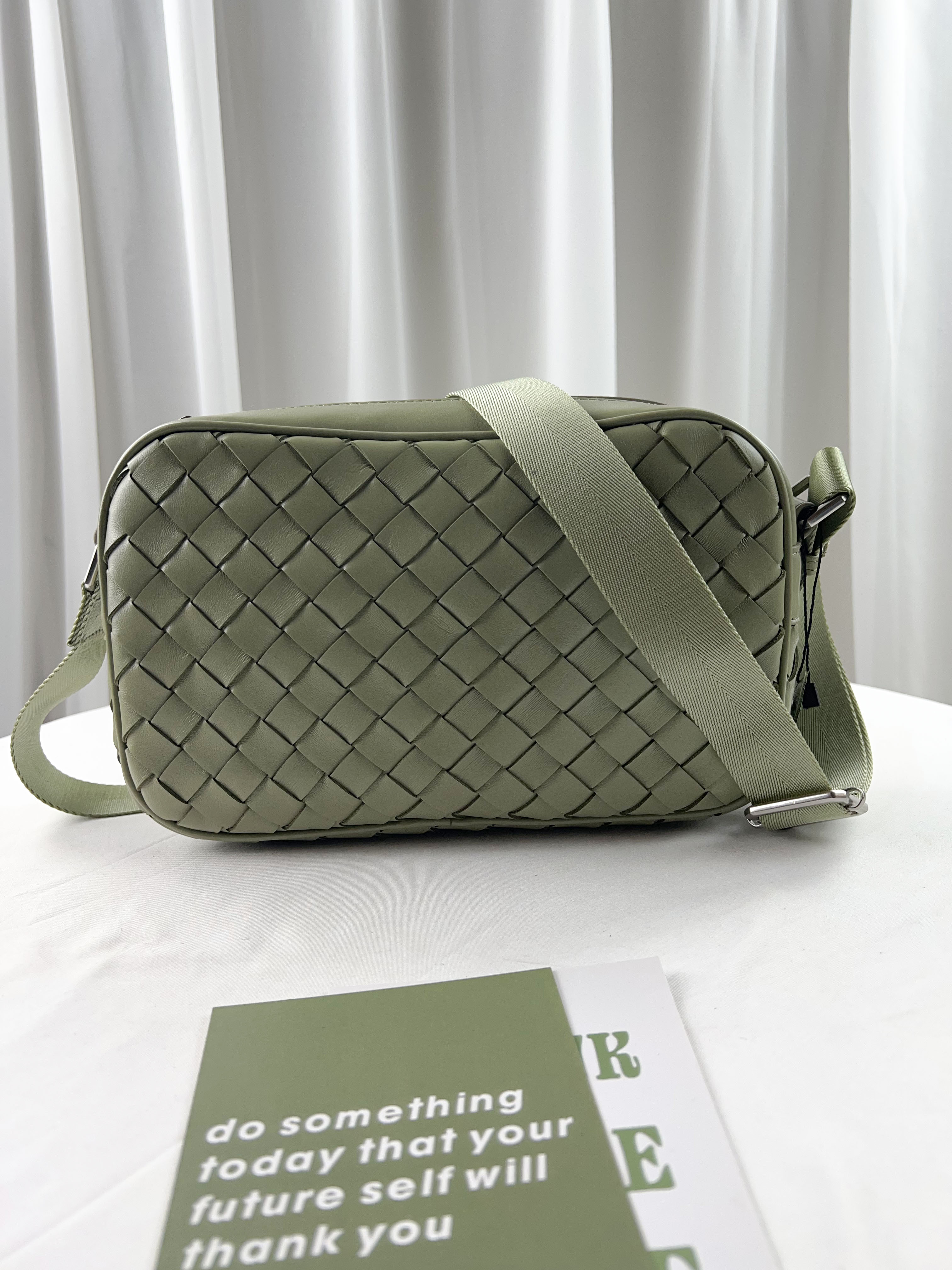 淺綠 寬編織真皮牛皮側背包 #SM-3011