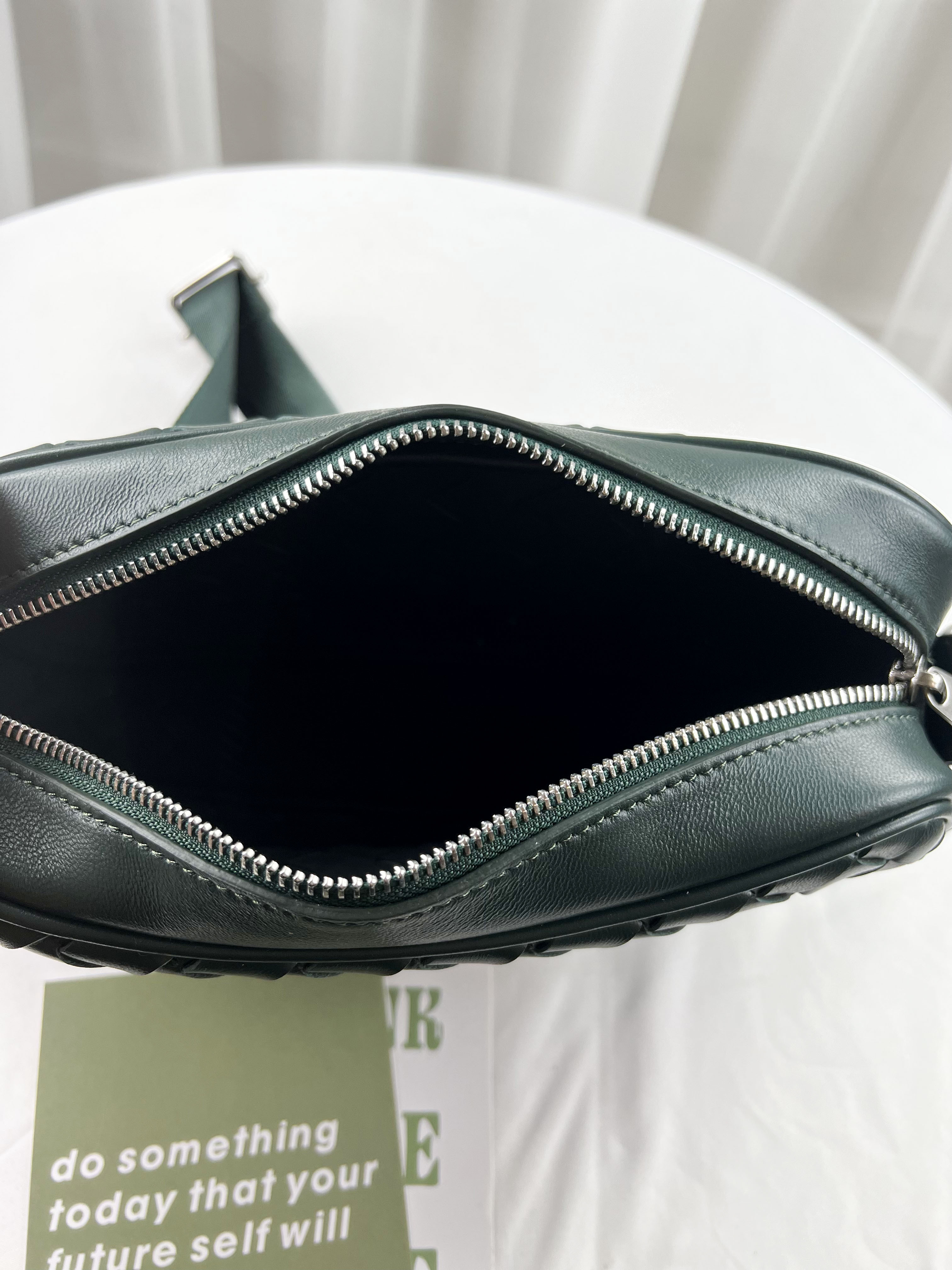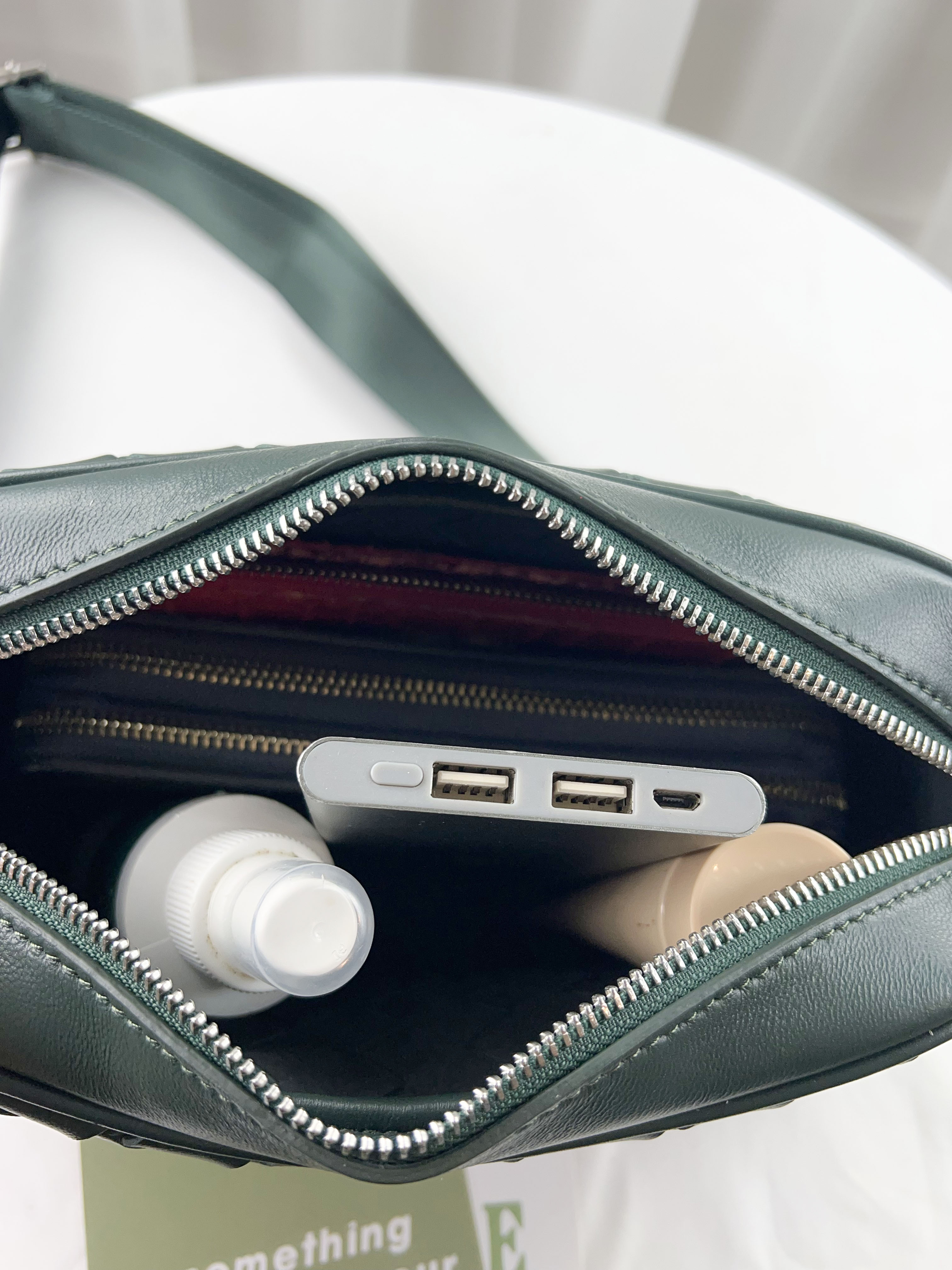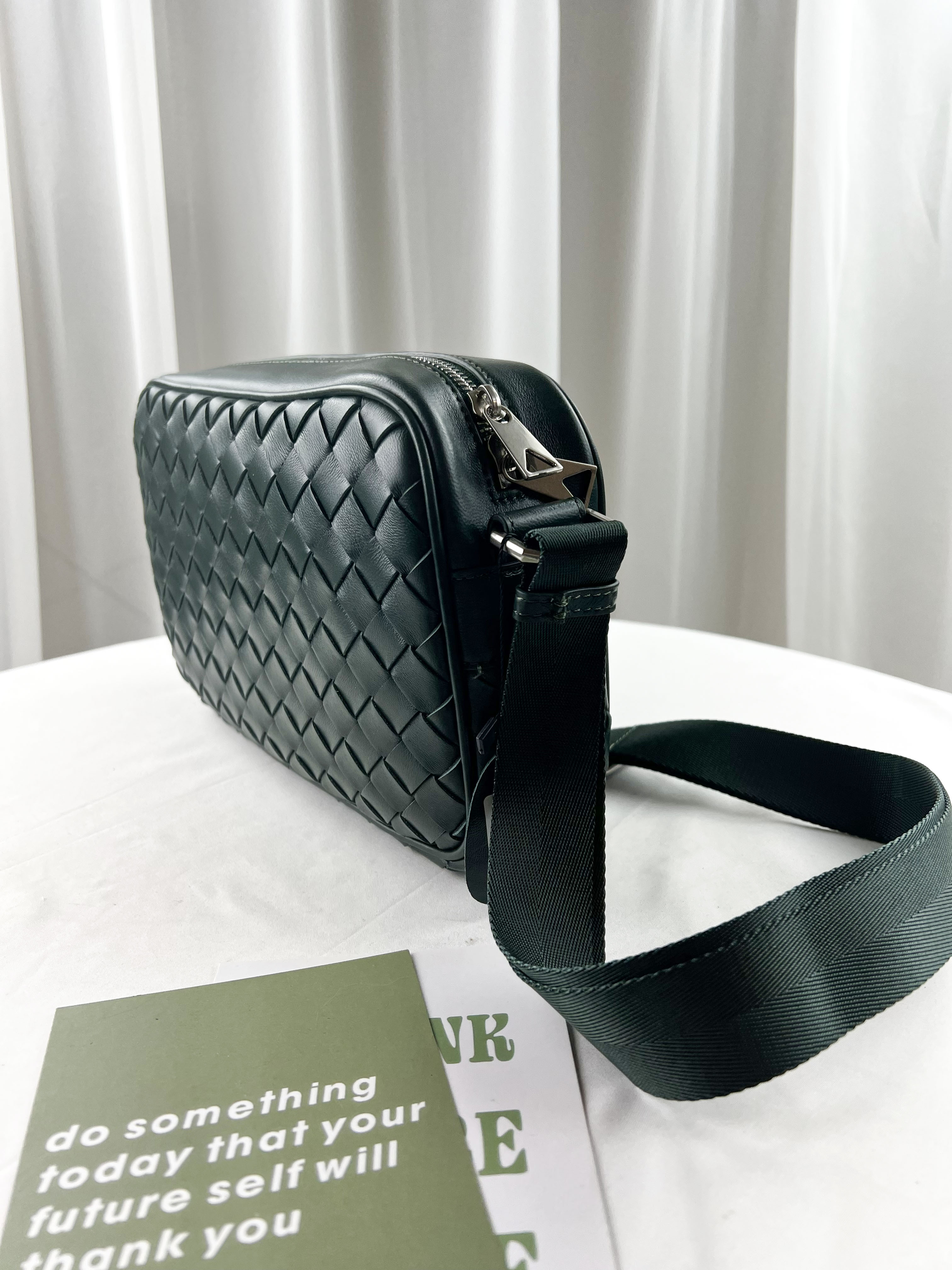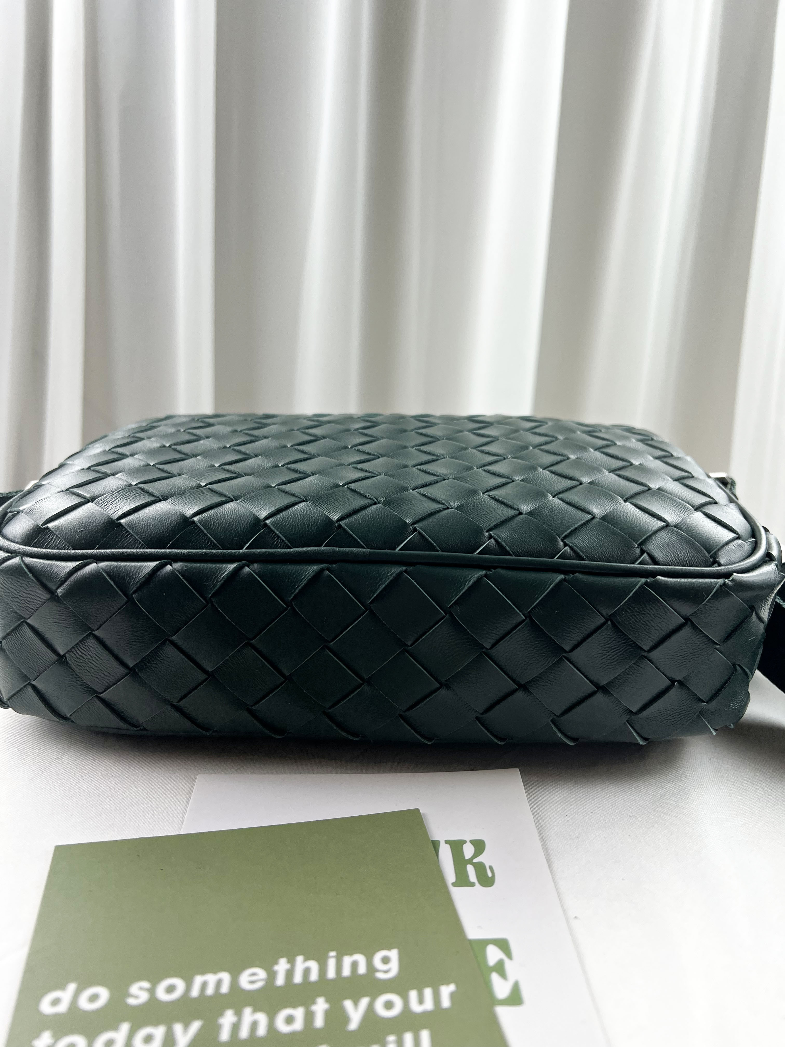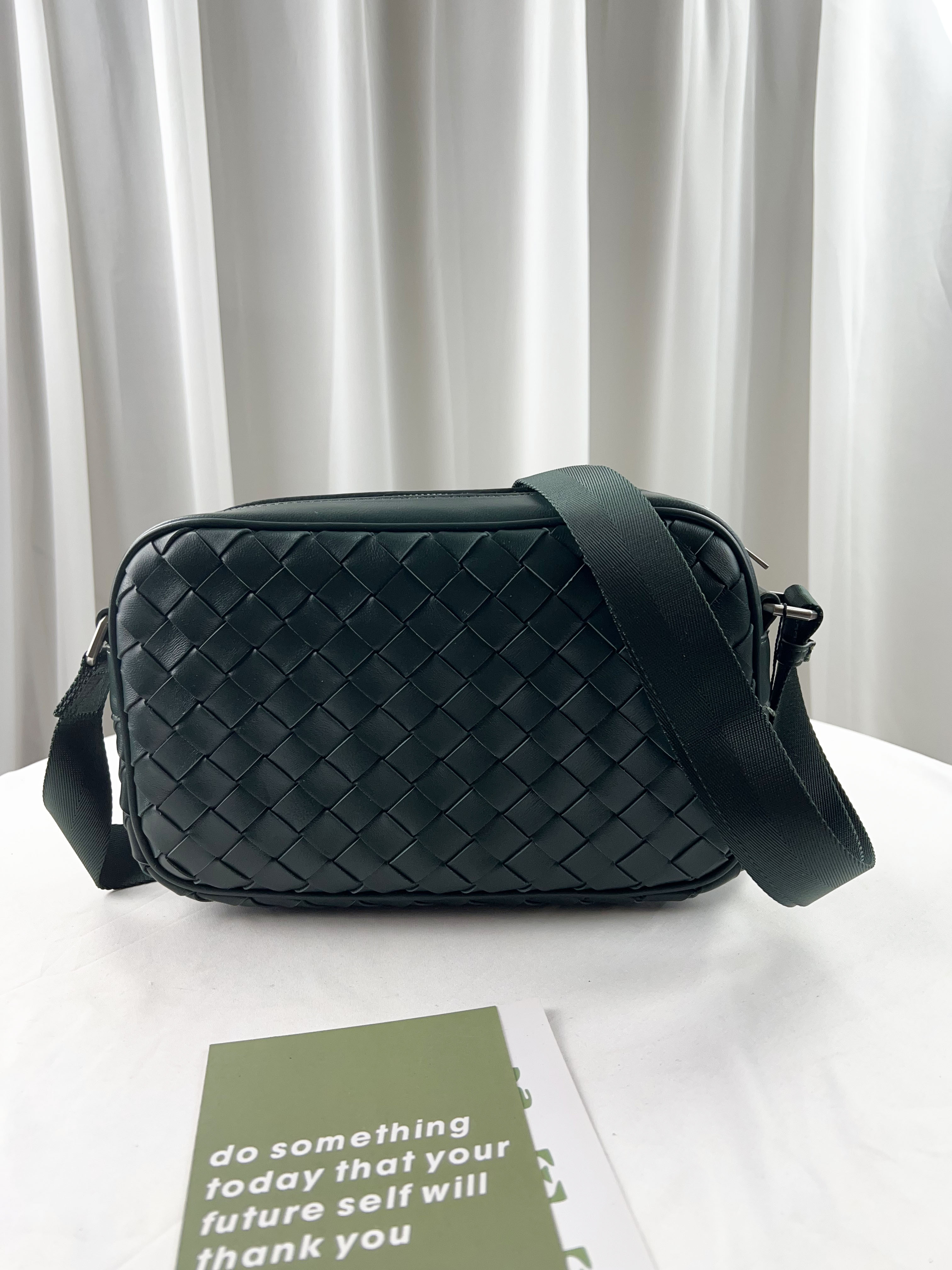 墨綠 寬編織真皮牛皮側背包 #SM-3011