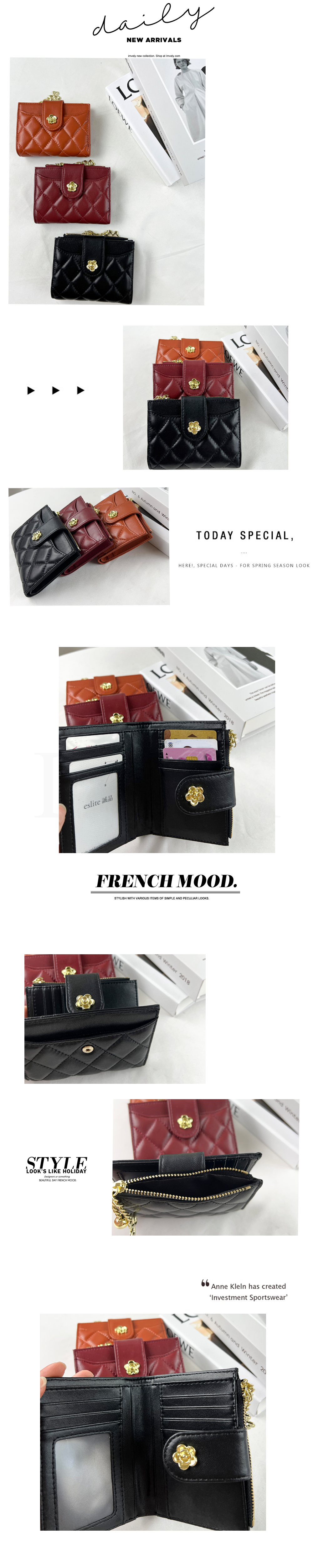 花朵真皮羊皮翻蓋短夾 #SM-6820