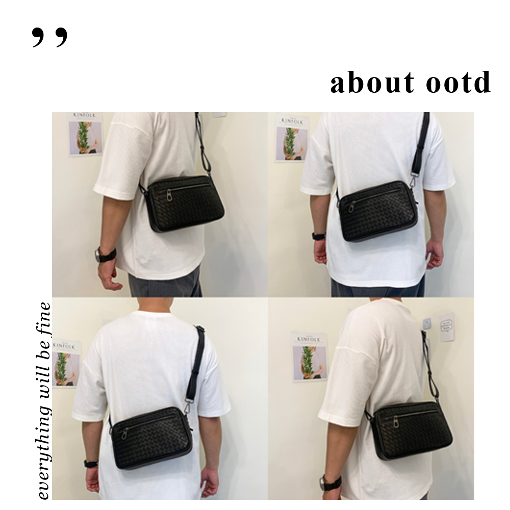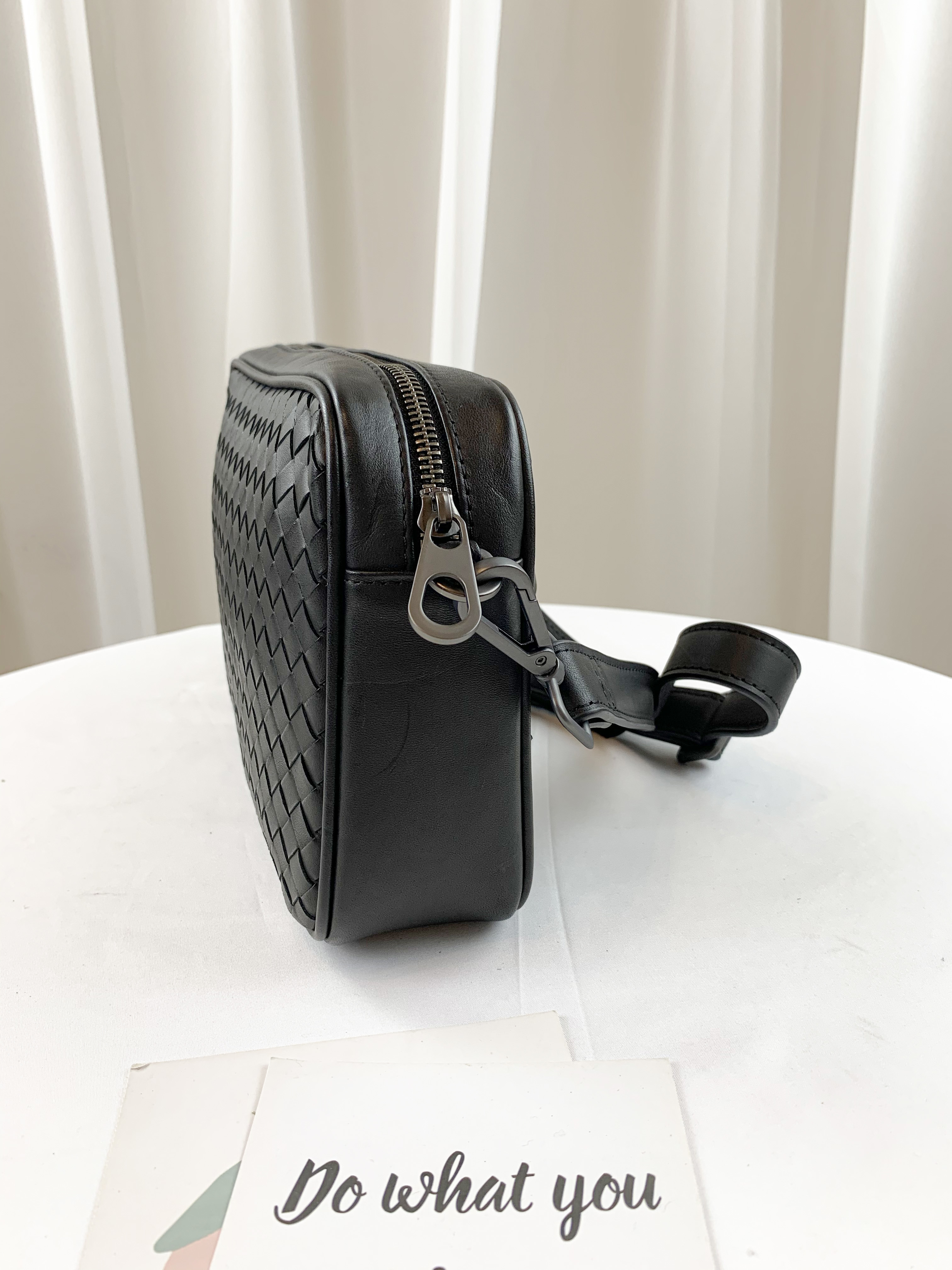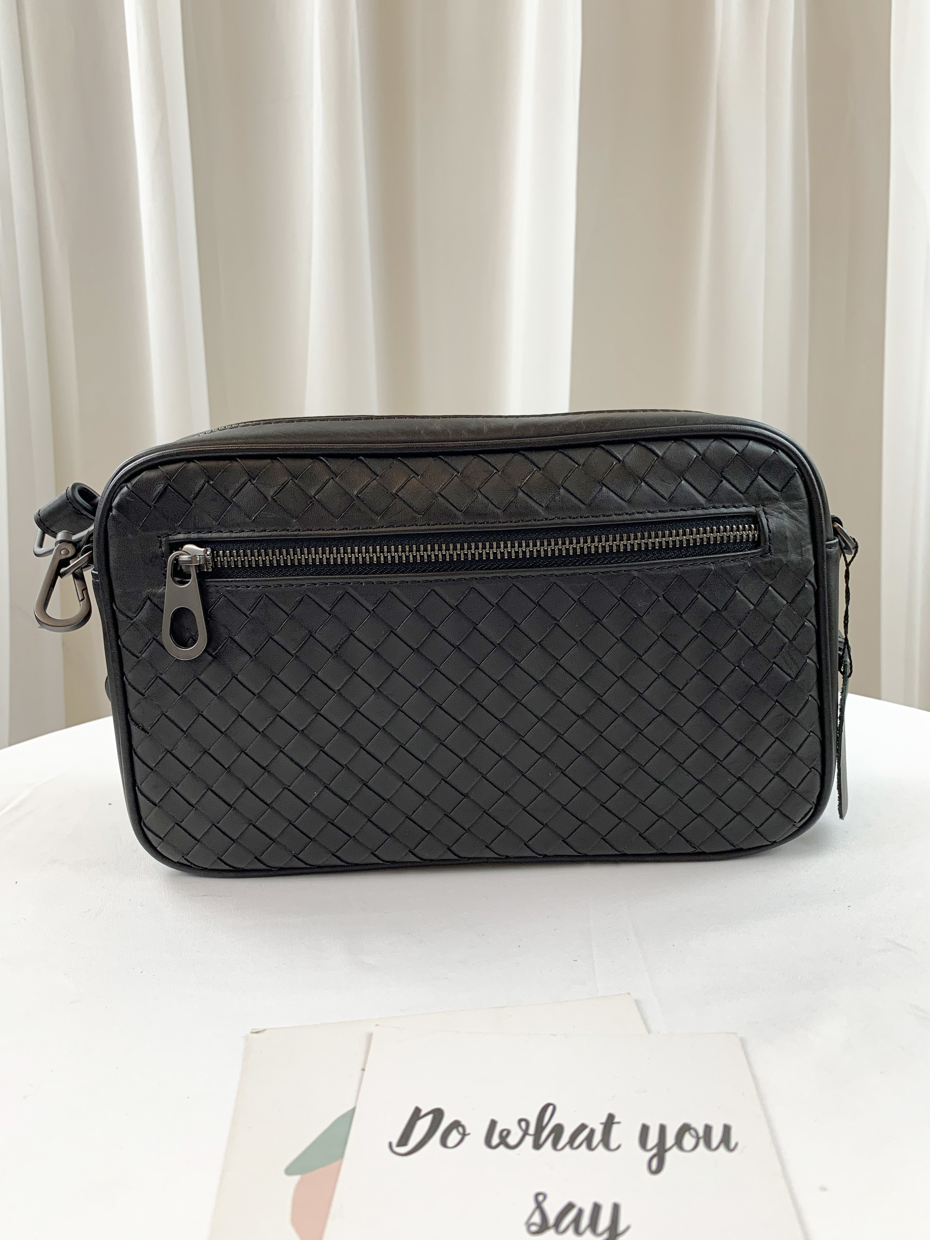 經典黑 編織真皮牛皮側背包 #SM-8061