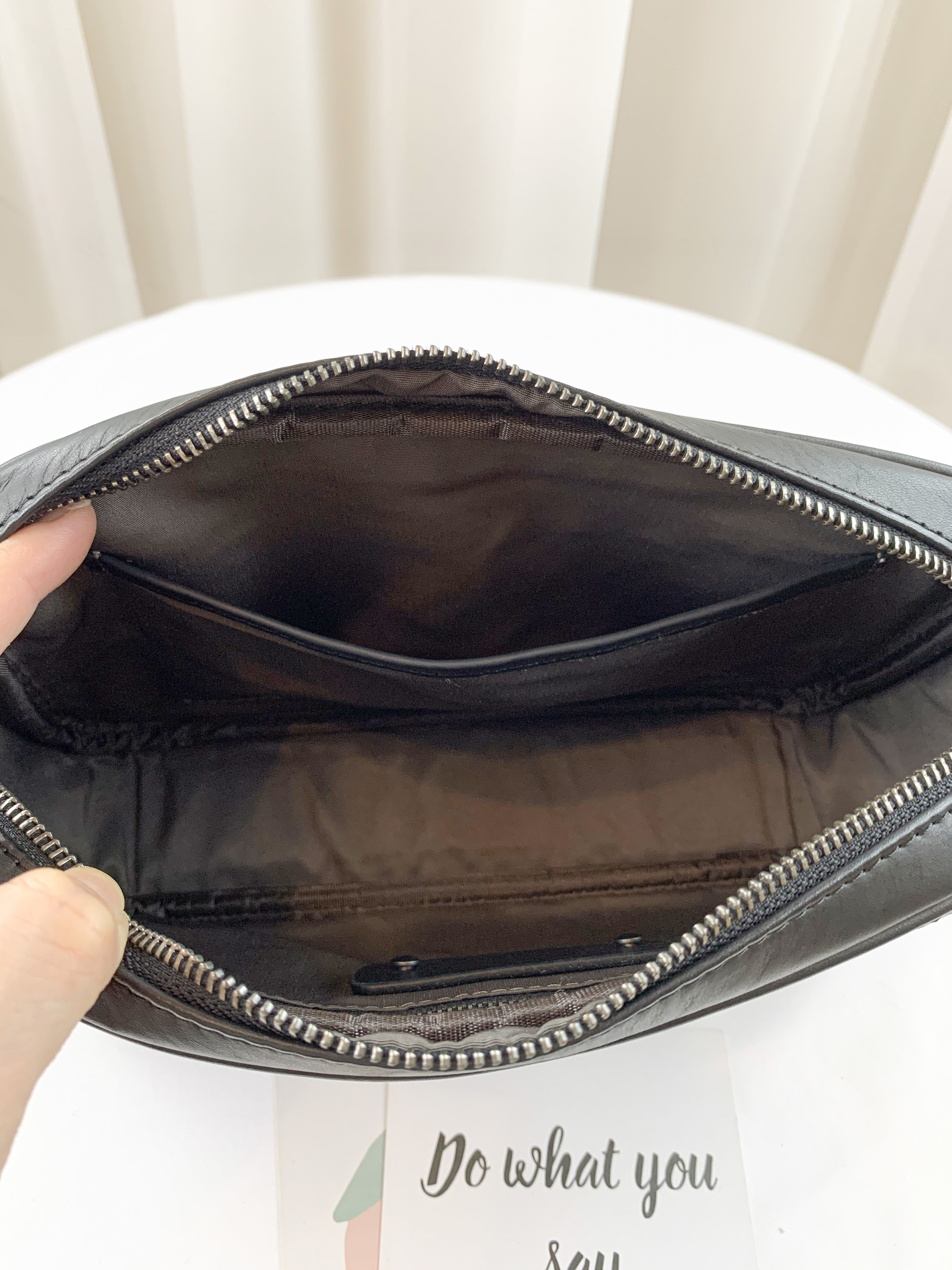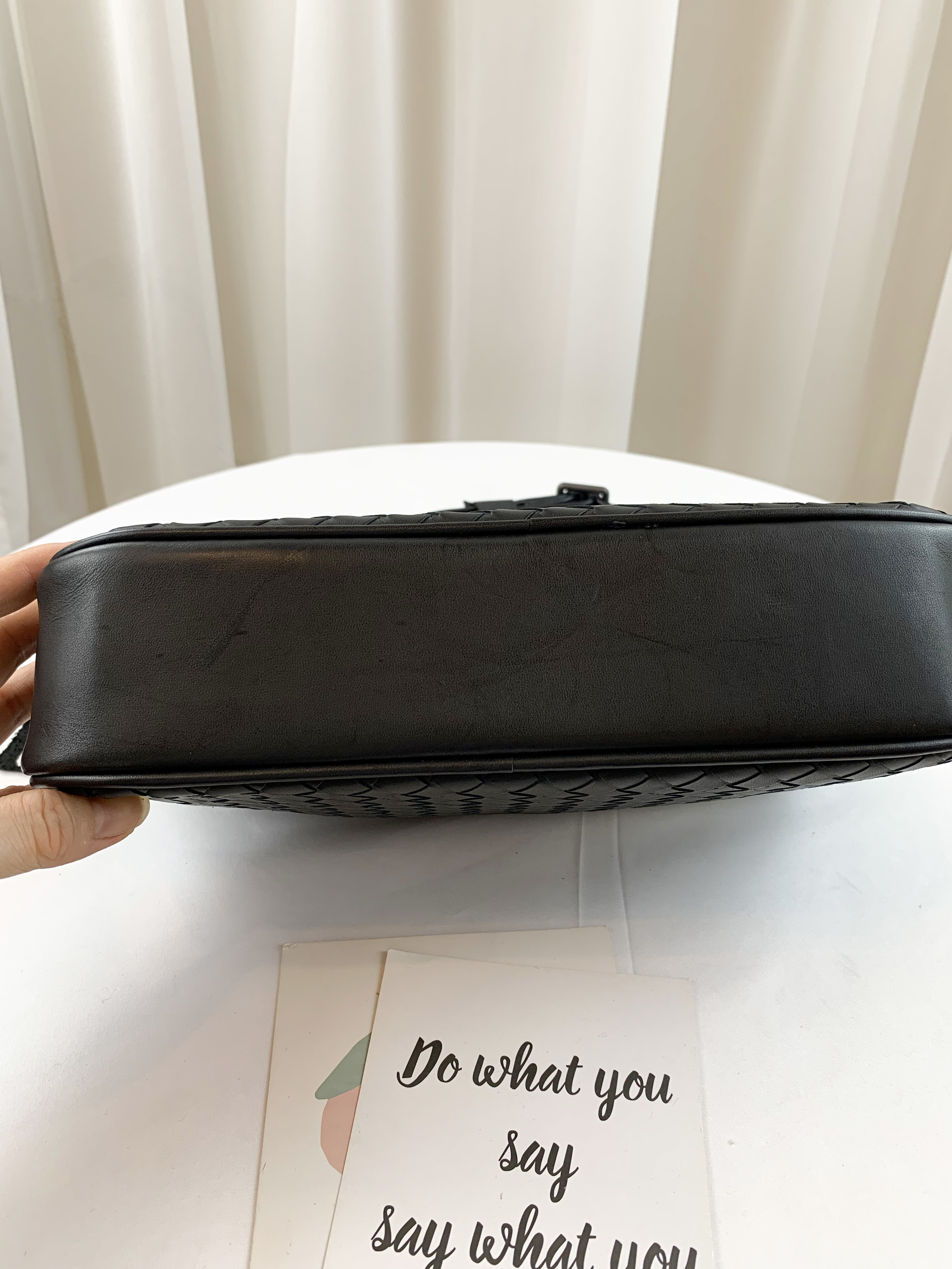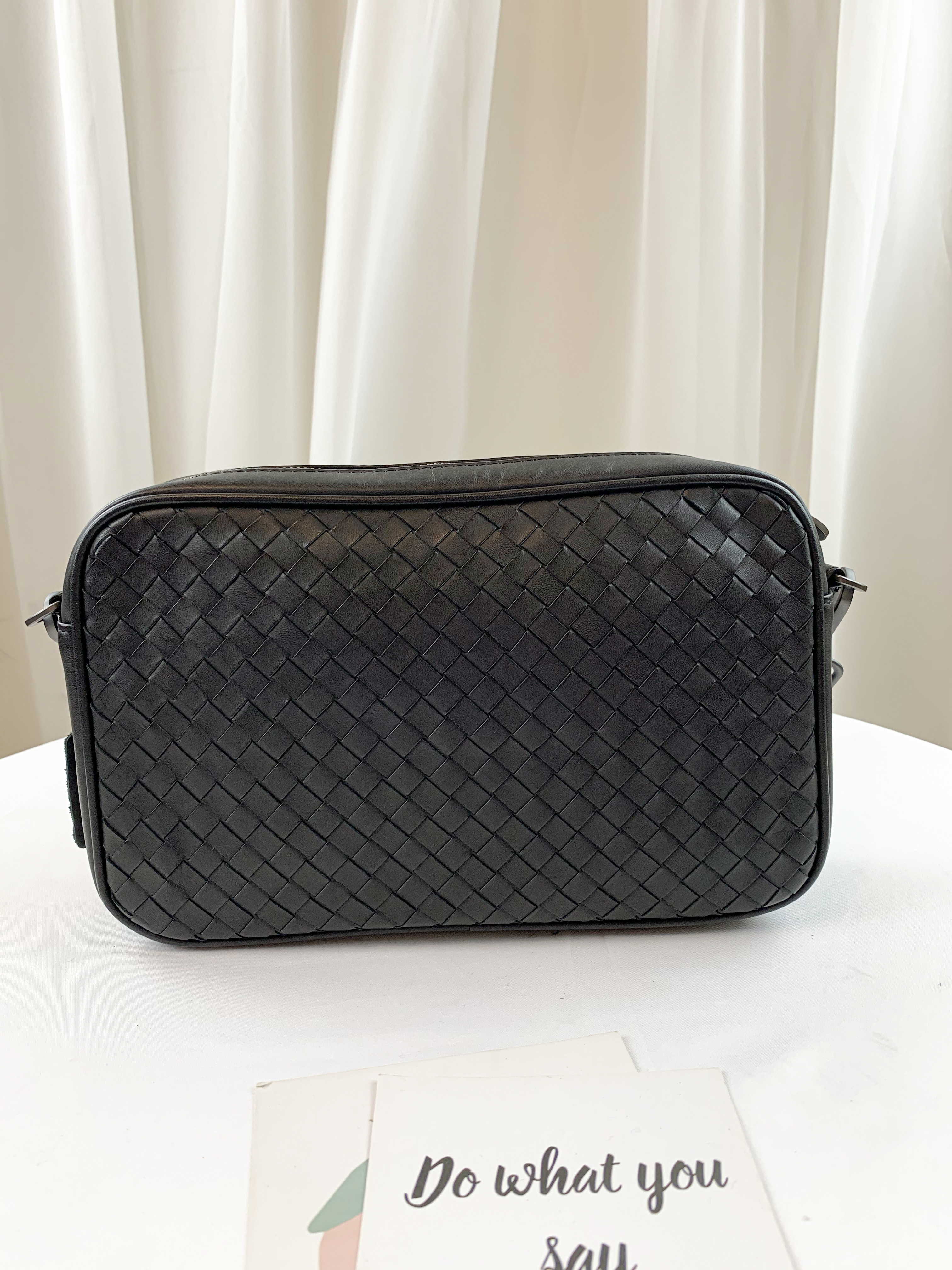 經典黑 編織真皮牛皮側背包 #SM-8061