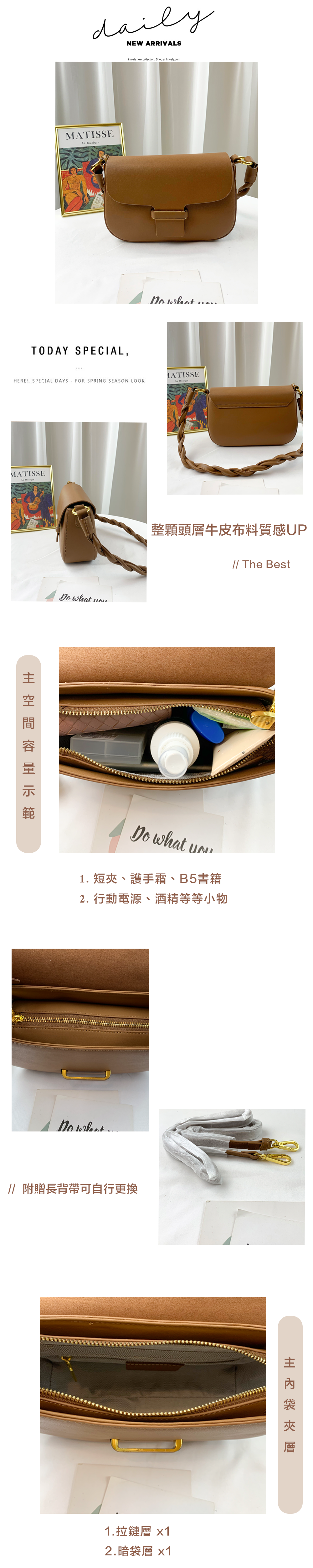 焦糖棕 真皮牛皮側背包 #SM-8505