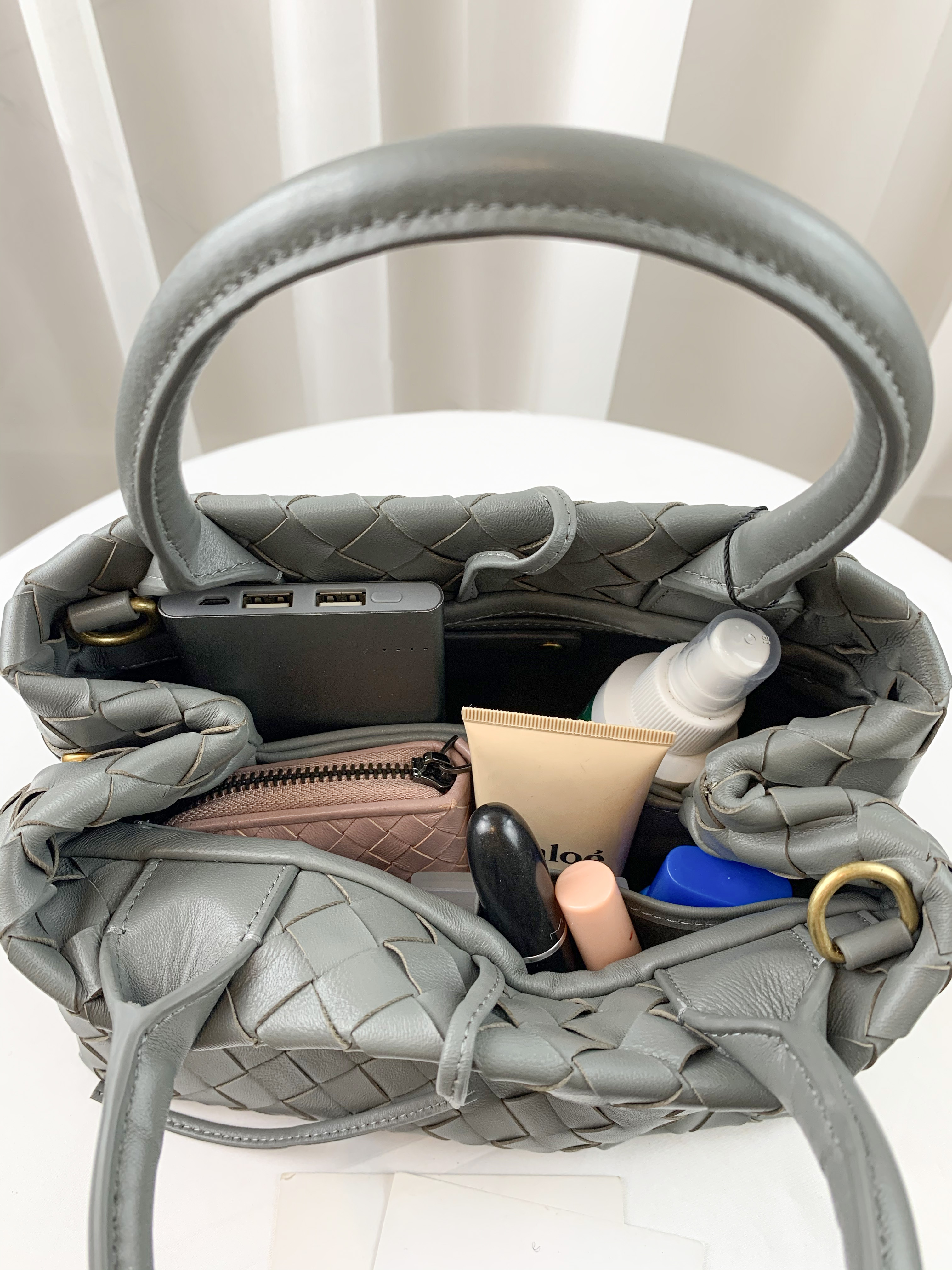 大象灰 編織真皮牛皮手提包 / 側背包 #SM-8686