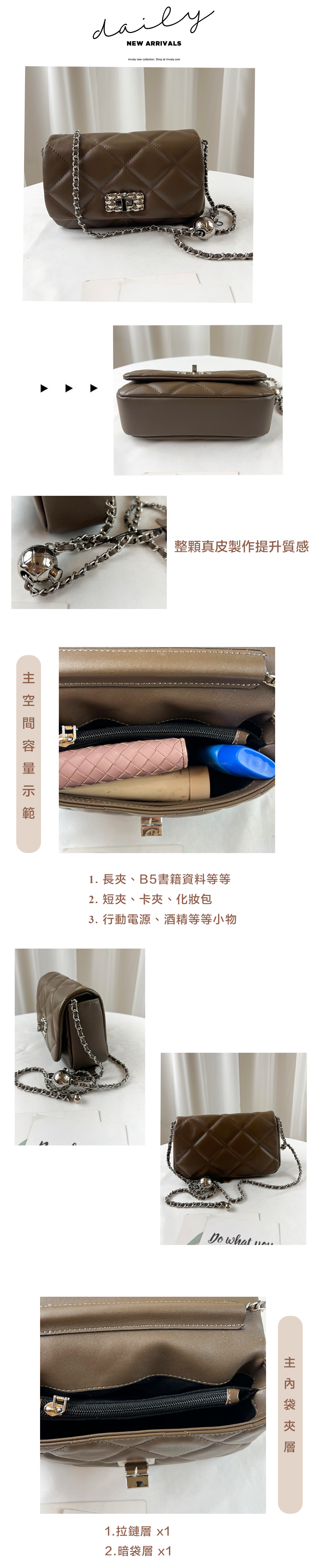 焦糖深棕 菱格銀扣真皮牛皮鏈帶肩背包 / 側背包 #SM-89-6251