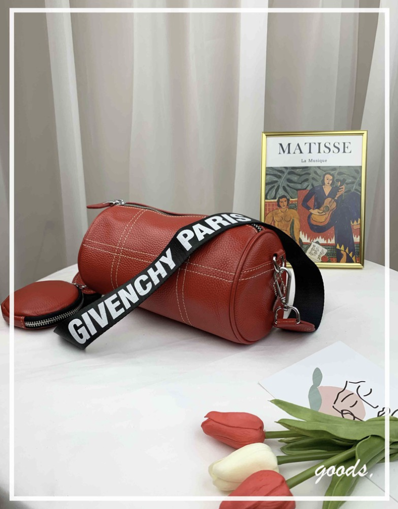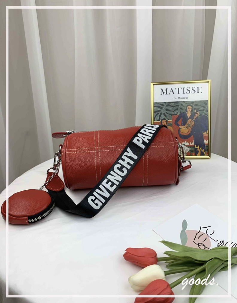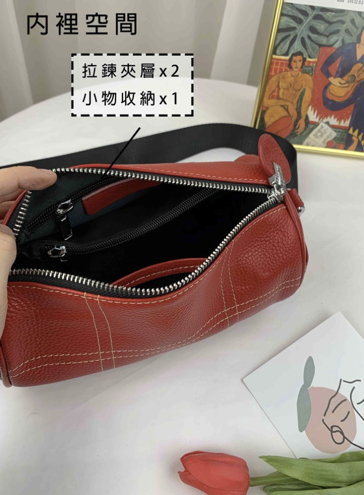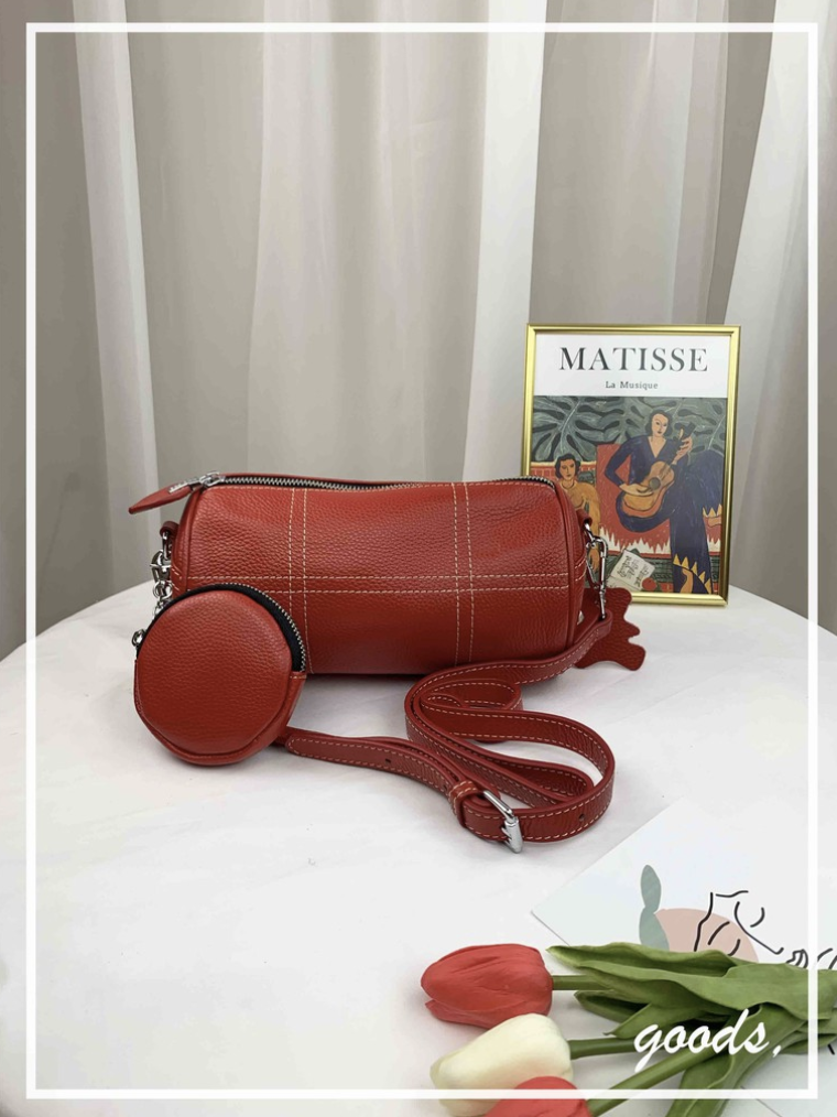 亮紅色 真皮牛皮迷你圓筒包 / 側背包 #SM-9009