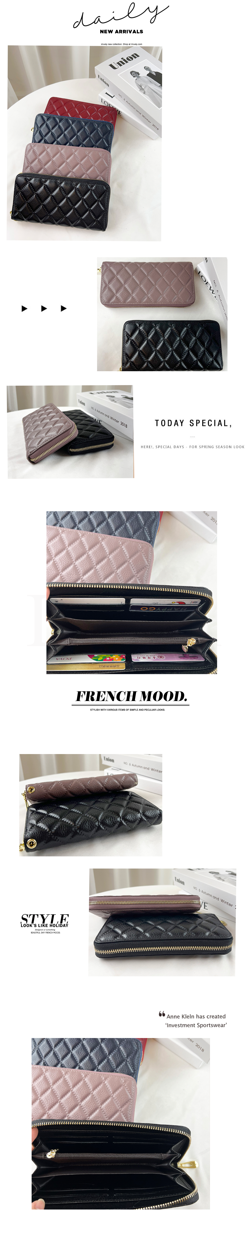 菱格紋真皮羊皮拉鍊長夾 #SM-932