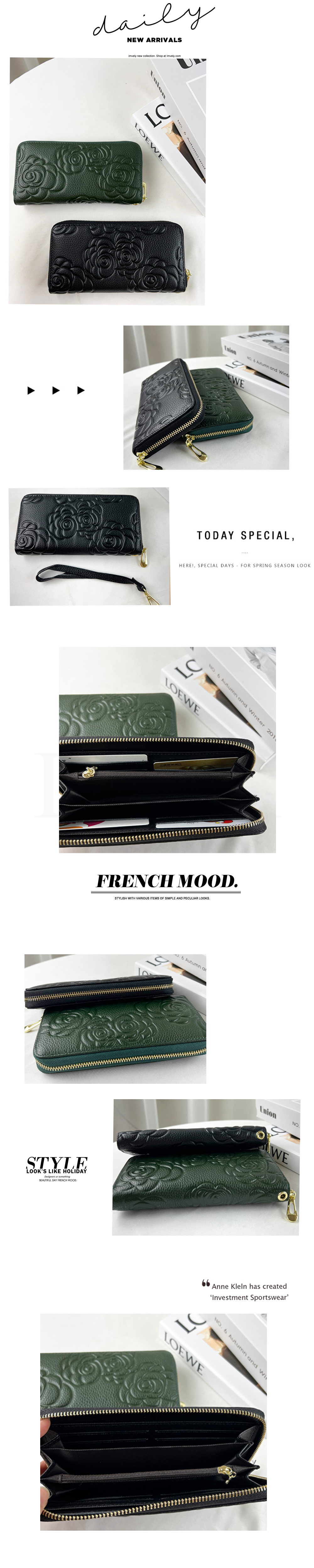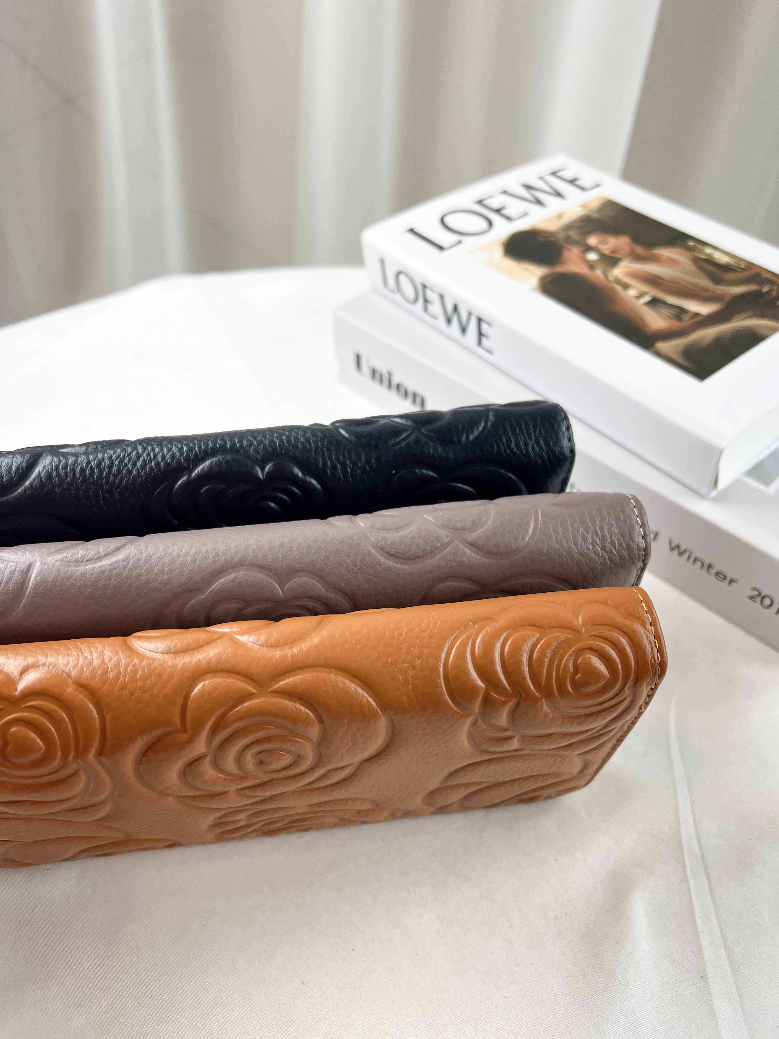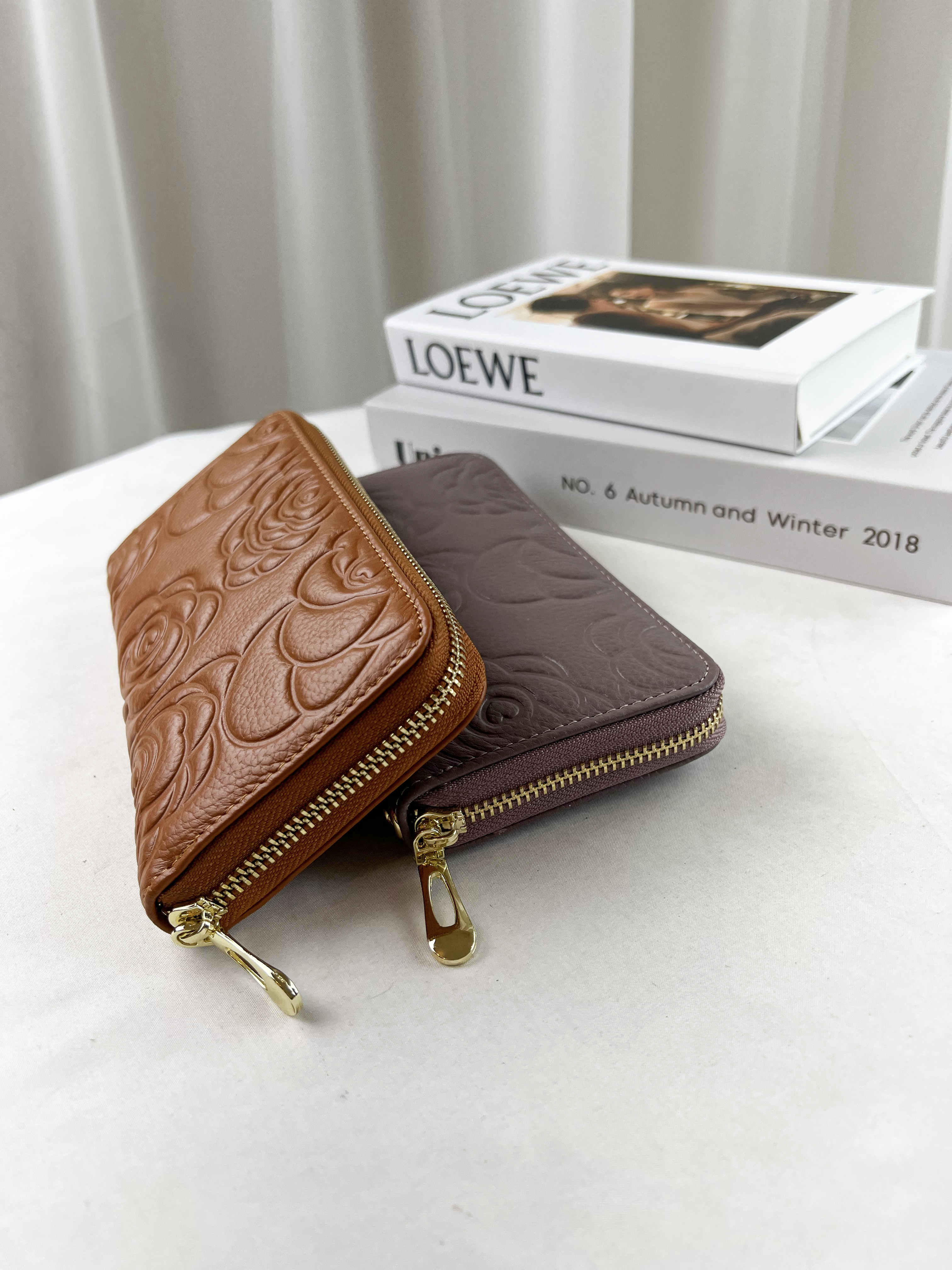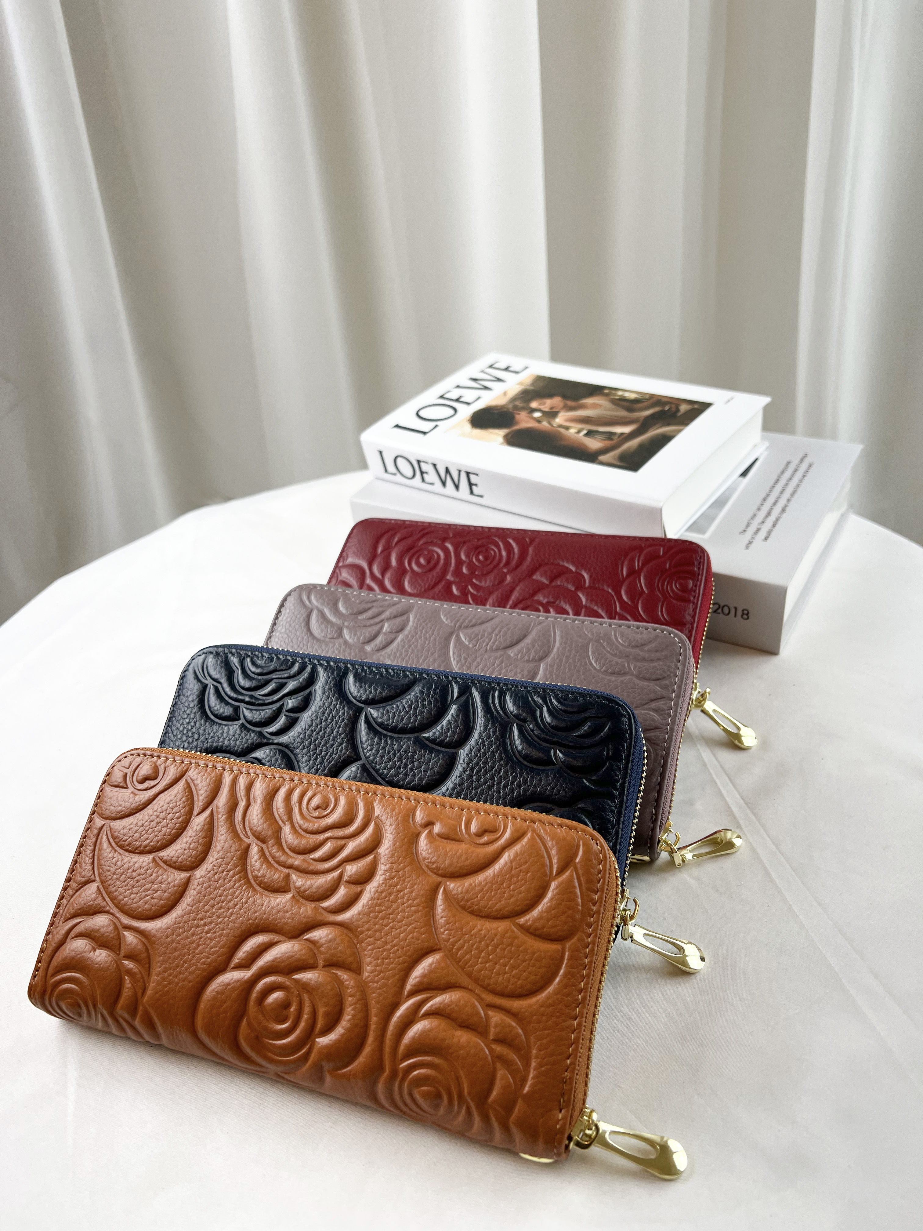 花朵真皮牛皮拉鍊長夾 #SM-937
