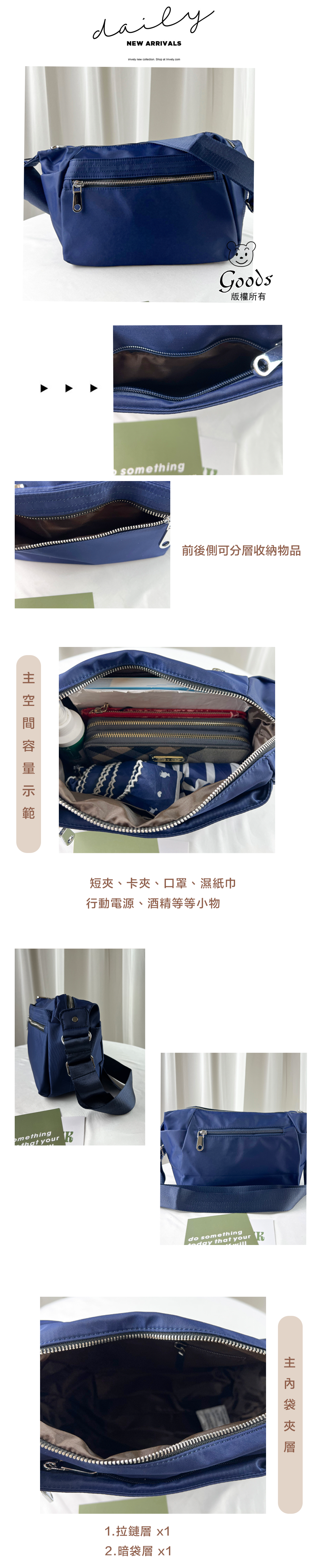 深藍 素面尼龍防潑水側背包 #SM-1030