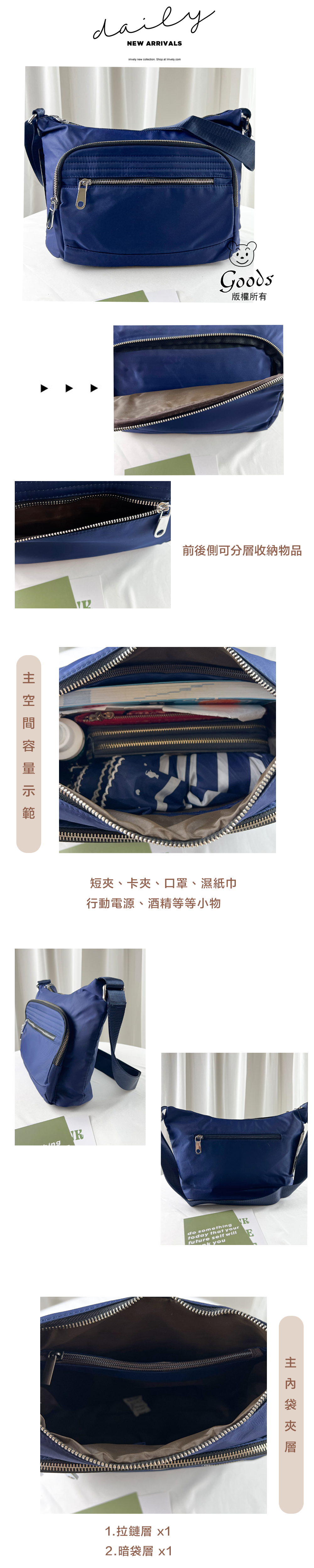 ●  規格:主空間x1 | 內裡拉鍊x1 | 內裡暗袋x1  | 前側拉鍊x2  | 後側拉鍊x1