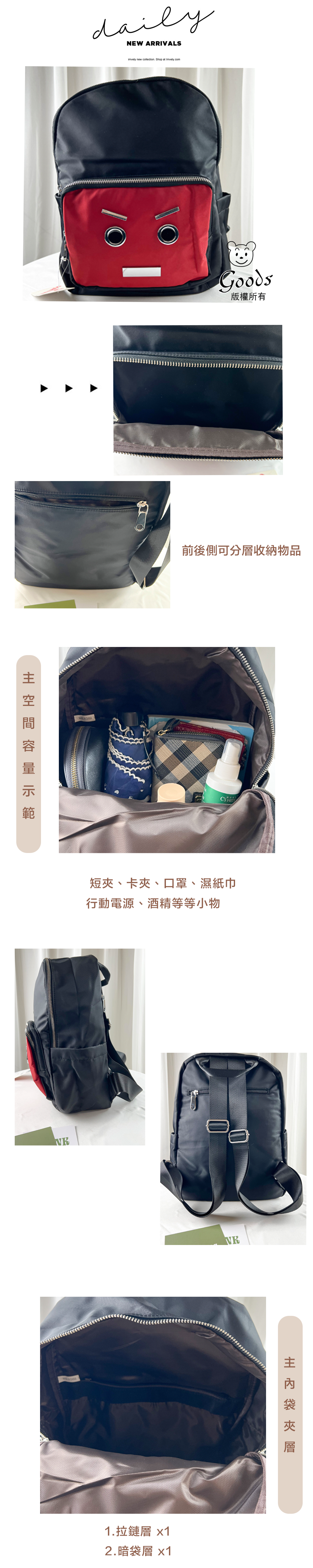 ●  規格:主空間x1 | 內裡拉鍊x1 | 內裡暗袋x1  | 前側拉鍊x1 | 後側拉鍊x1  |  左右插袋各1