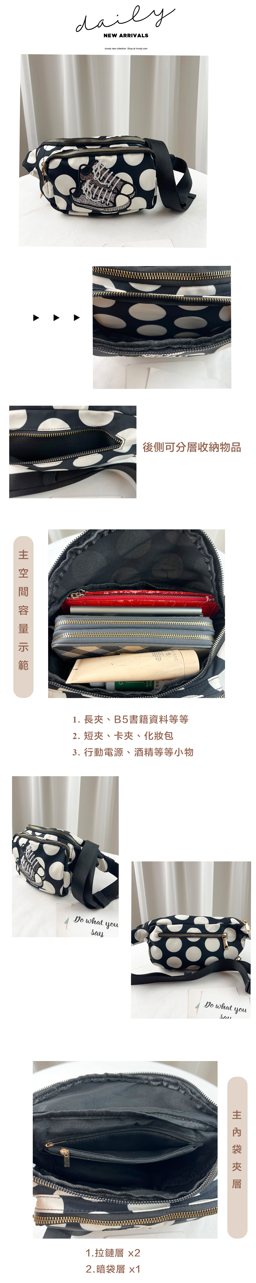全部商品 / 復古黑點 美腿防潑水腰包 / 側背包 #SM-882